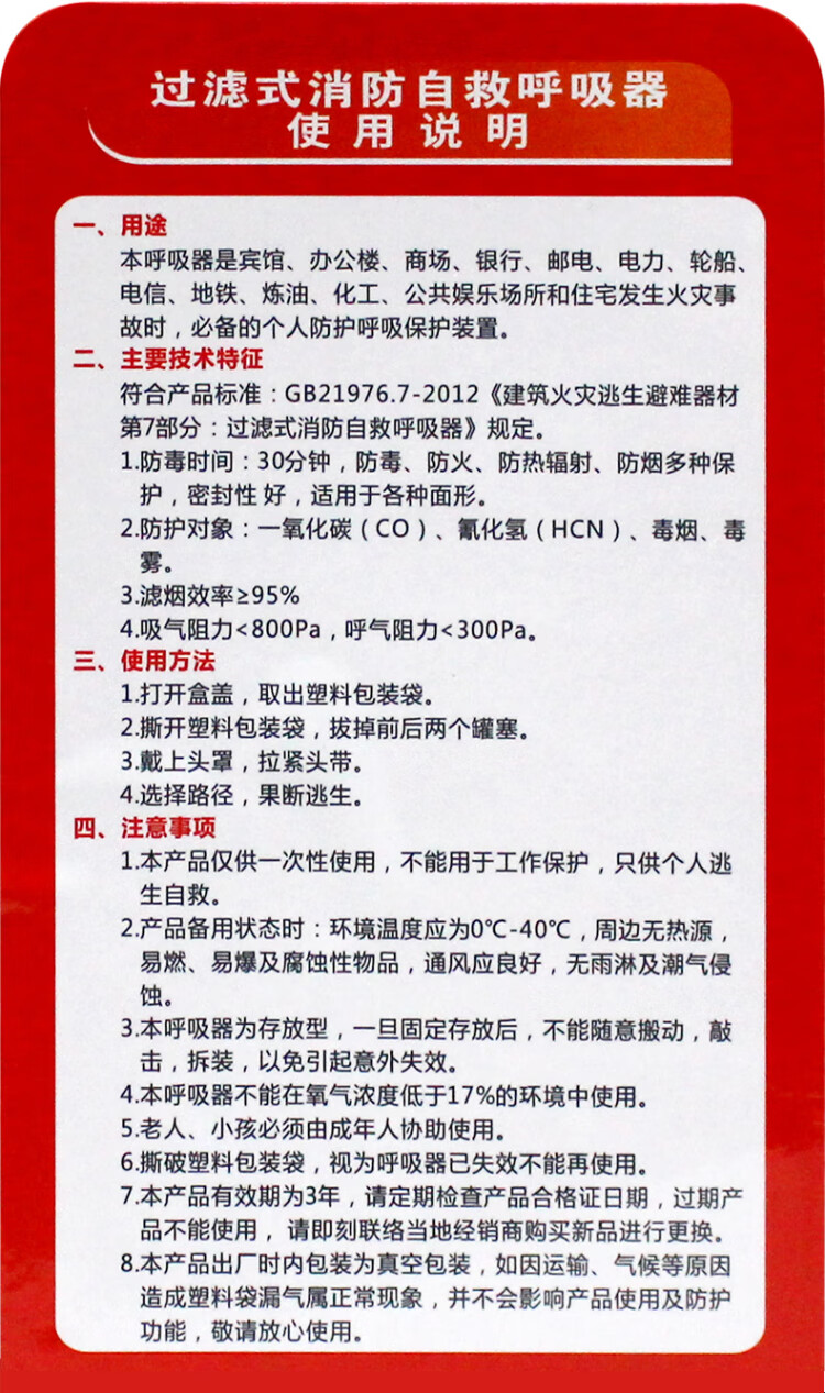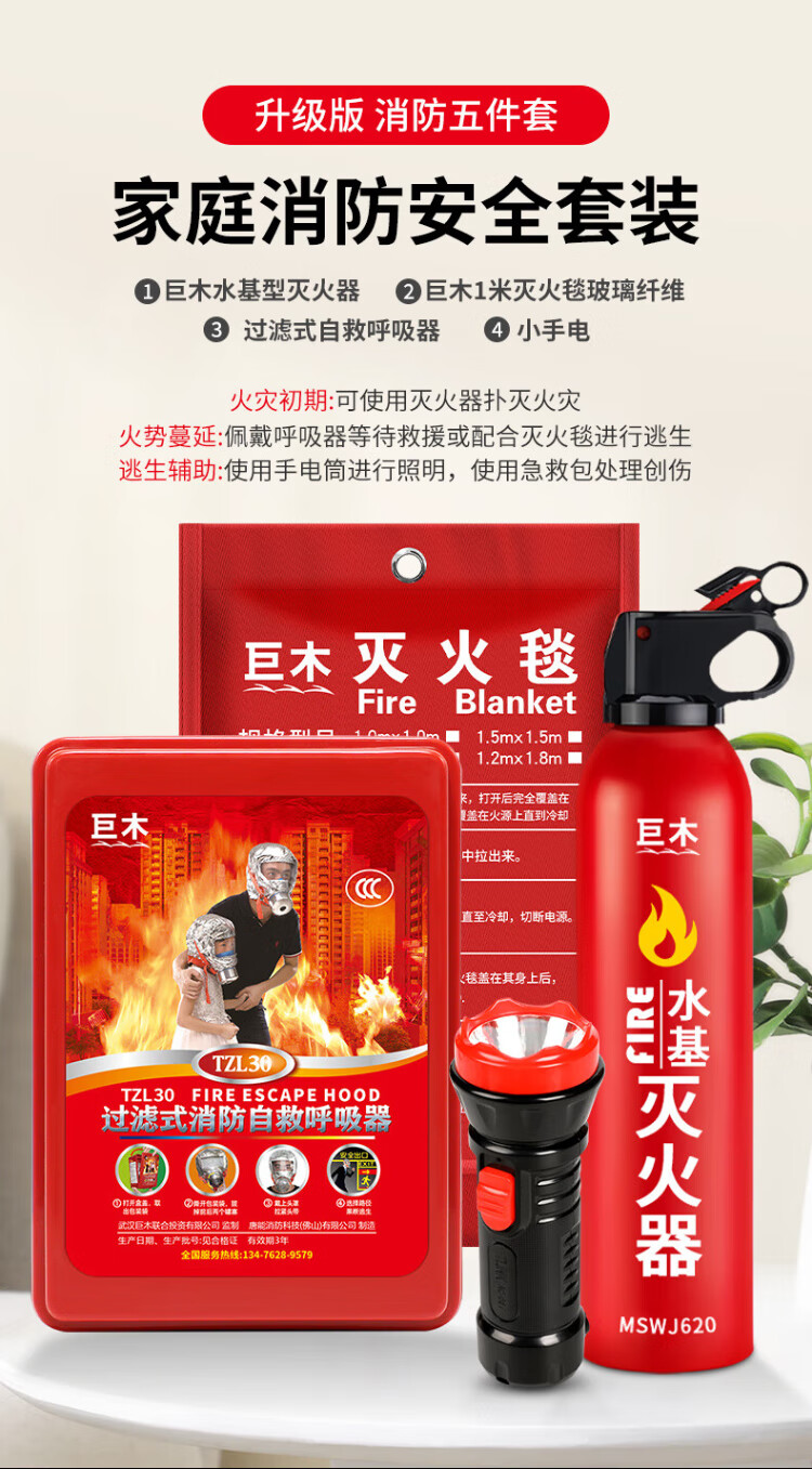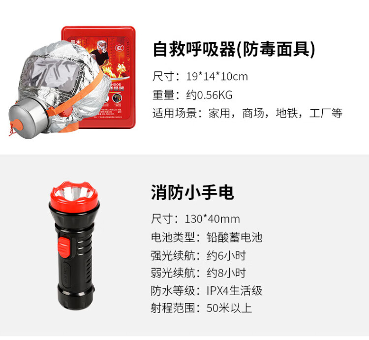 Giant wood fire emergency rescue kit set household gas mask fire extinguisher fire blanket first aid kit flashlight fire escape