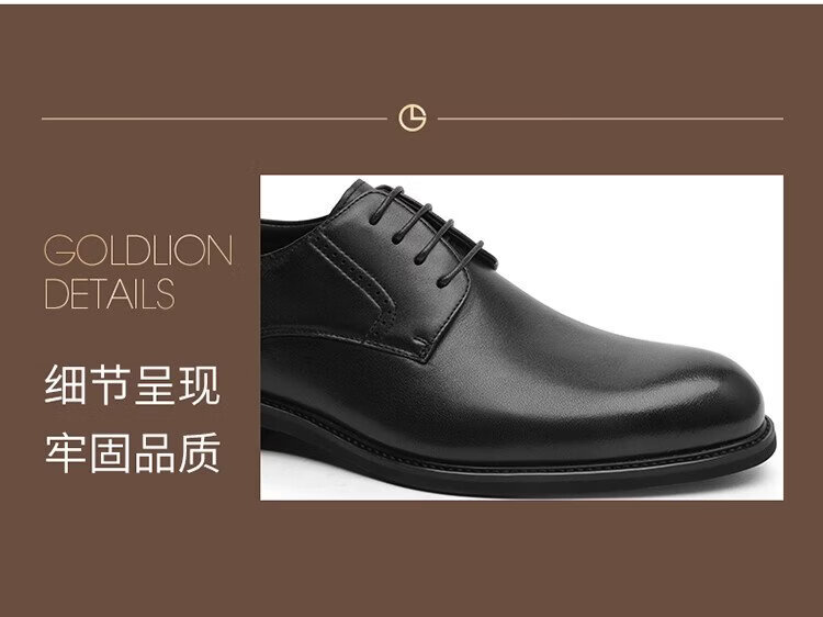 Goldlion Men's Shoes Formal Business Casual Shoes Comfortable Lightweight Breathable Fashion Leather Shoes 58083057101A Black Size 42
