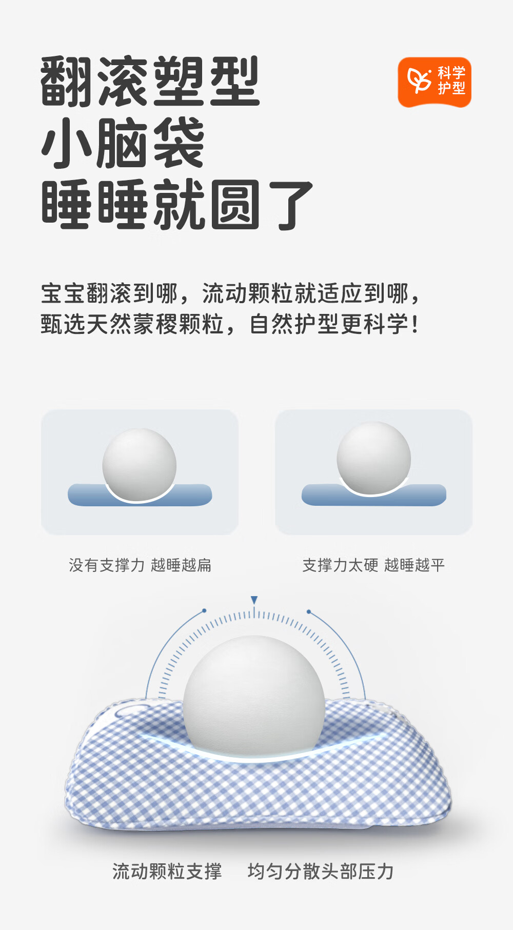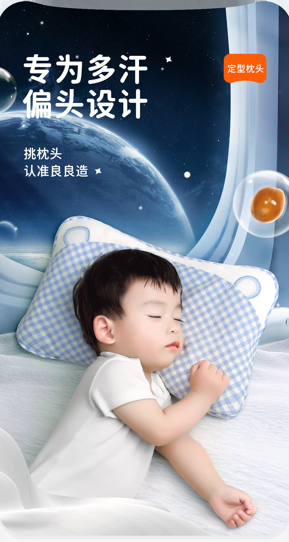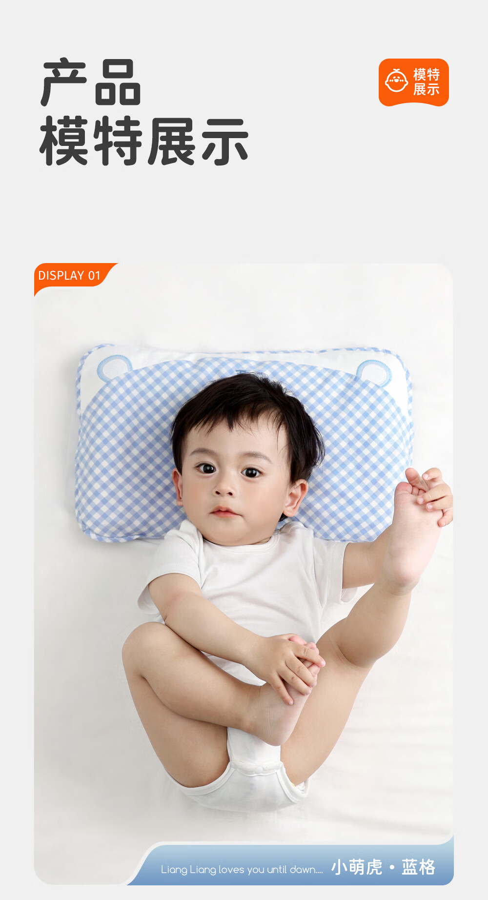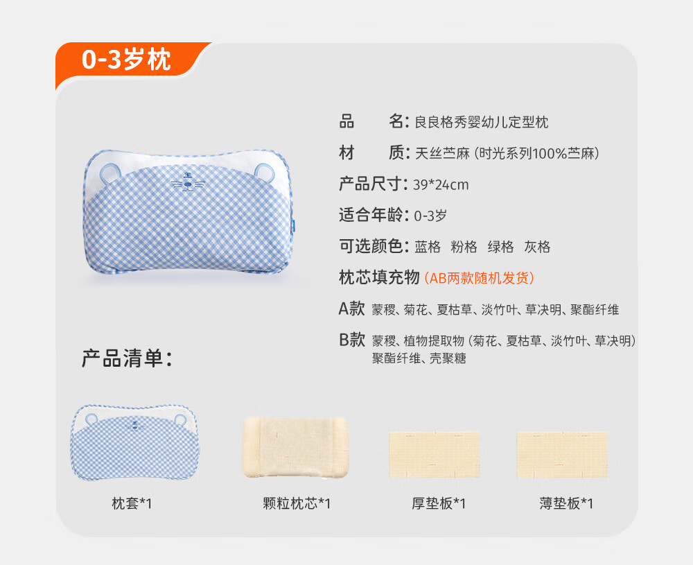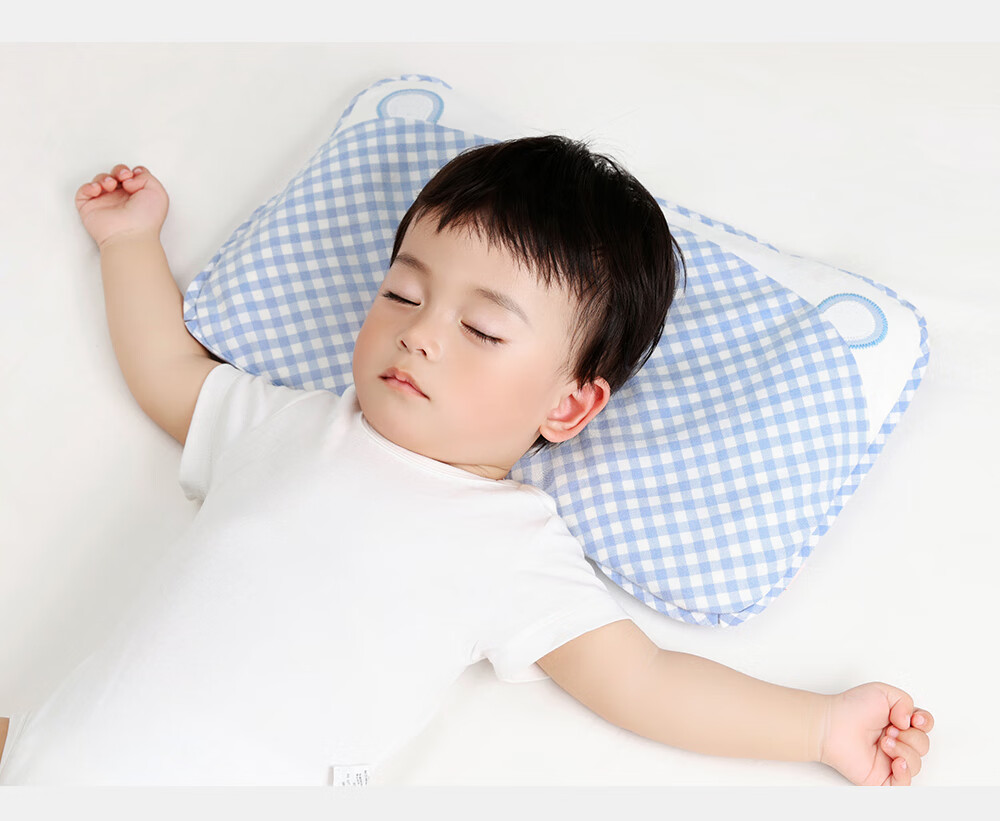 Liangliang baby pillow baby 0-1-3 years old shaped pillow newborn child protective pillow blue grid version 1.0 (single pillowcase)