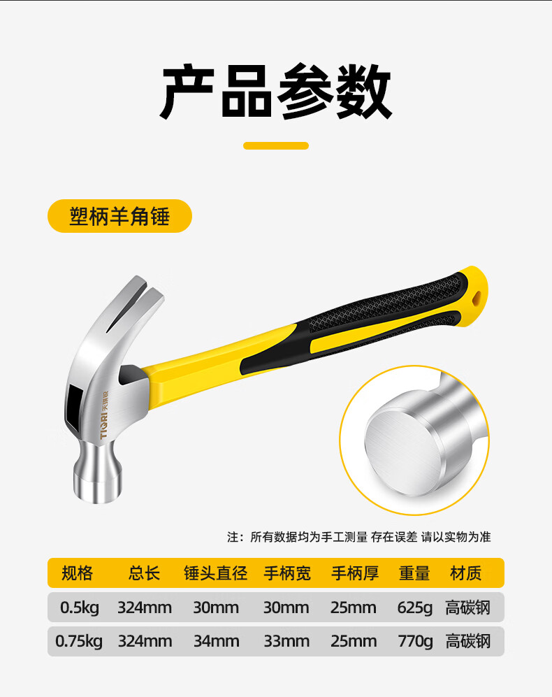 Tianqirui claw hammer iron hammer nail hammer iron hammer 16oz 0.5KG hammer iron hammer woodworking decoration percussion tool