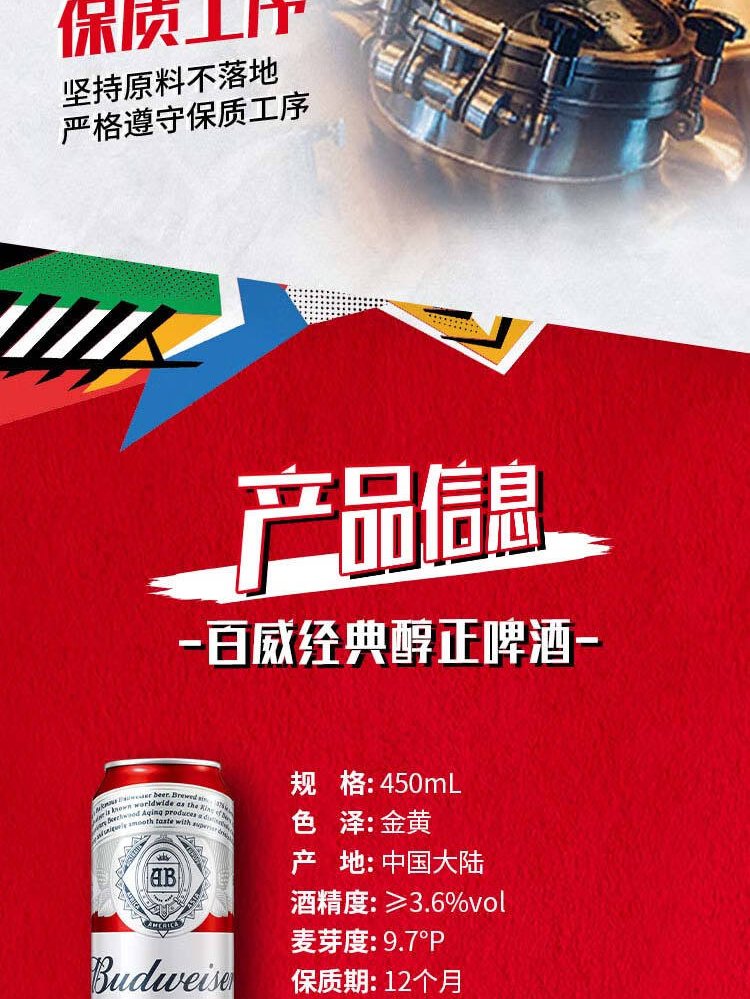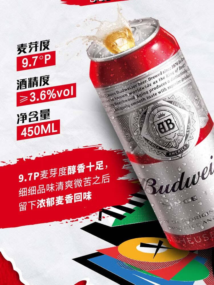 Budweiser Beer TOP Light Lager 450ml*18 cans in full box, new and old packaging shipped alternately