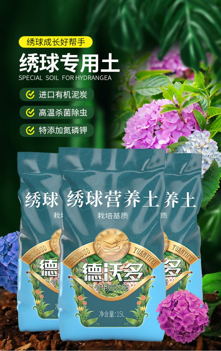 Devodo hydrangea special plant nutrient soil 15L + fertilizer gardening potted planting flower soil organic matrix rice husk soil