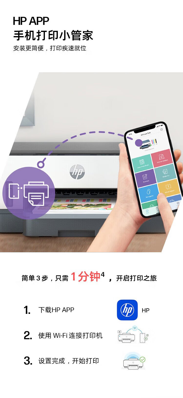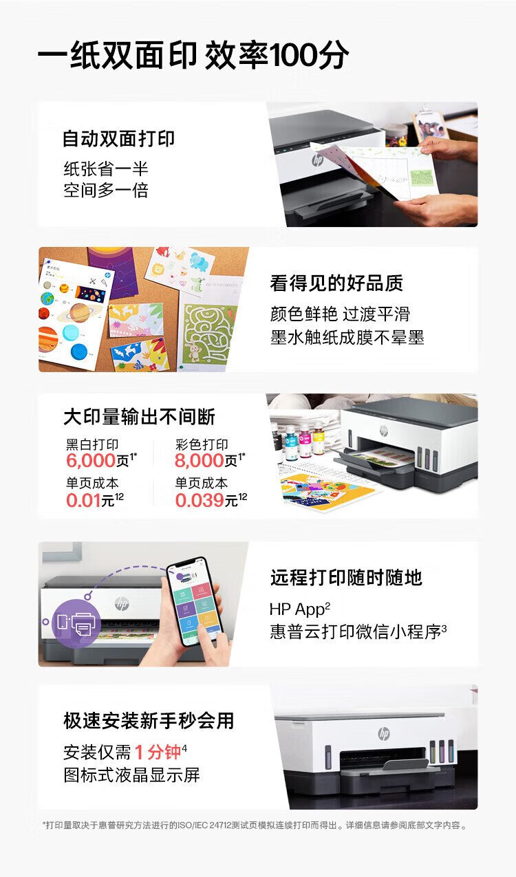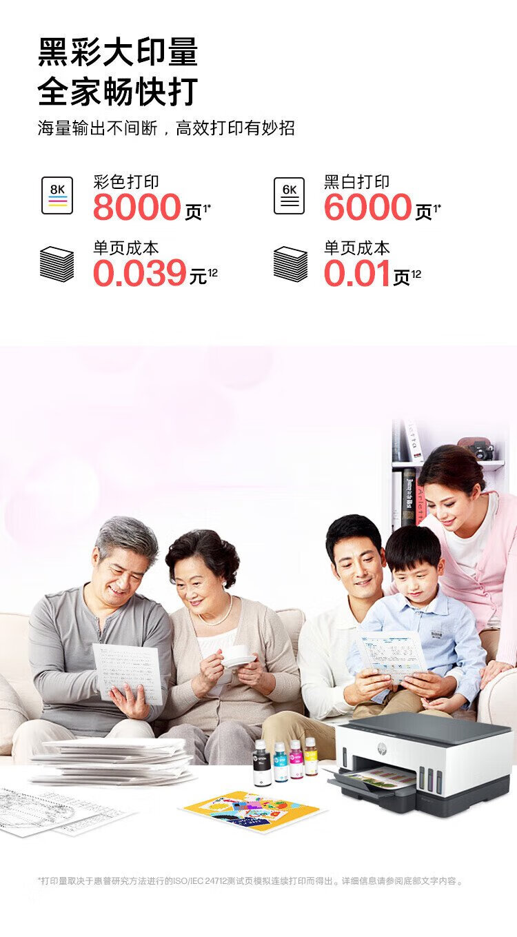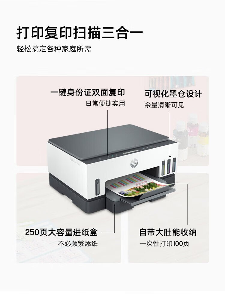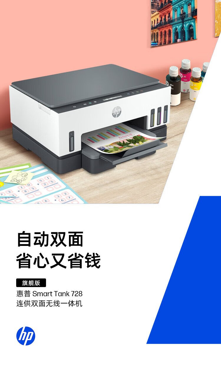 HP 728 continuous wireless printer all-in-one automatic double-sided three-in-one color printer for home printing, copying and scanning costs 1 cent per page