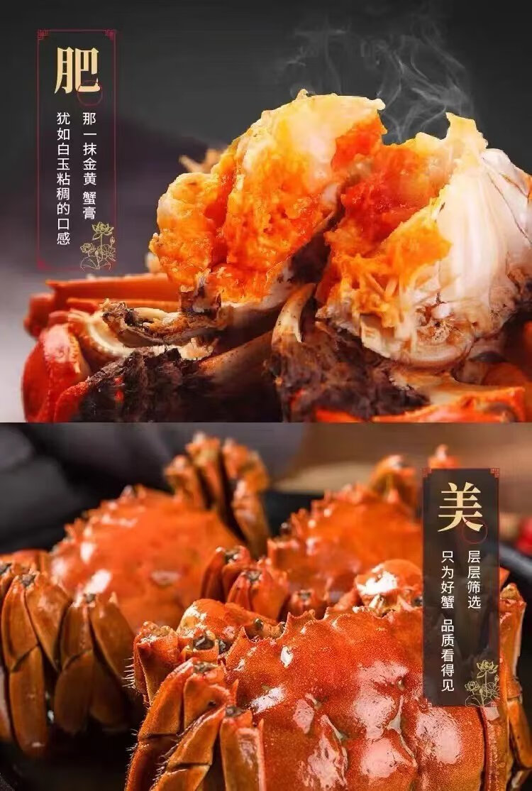 Live crabs Lake fresh Yangcheng hairy crabs whole female 2.5-2.8 pairs 8 pieces with rope feet removed fresh goods fresh seafood extra large crab gift box straight from the source