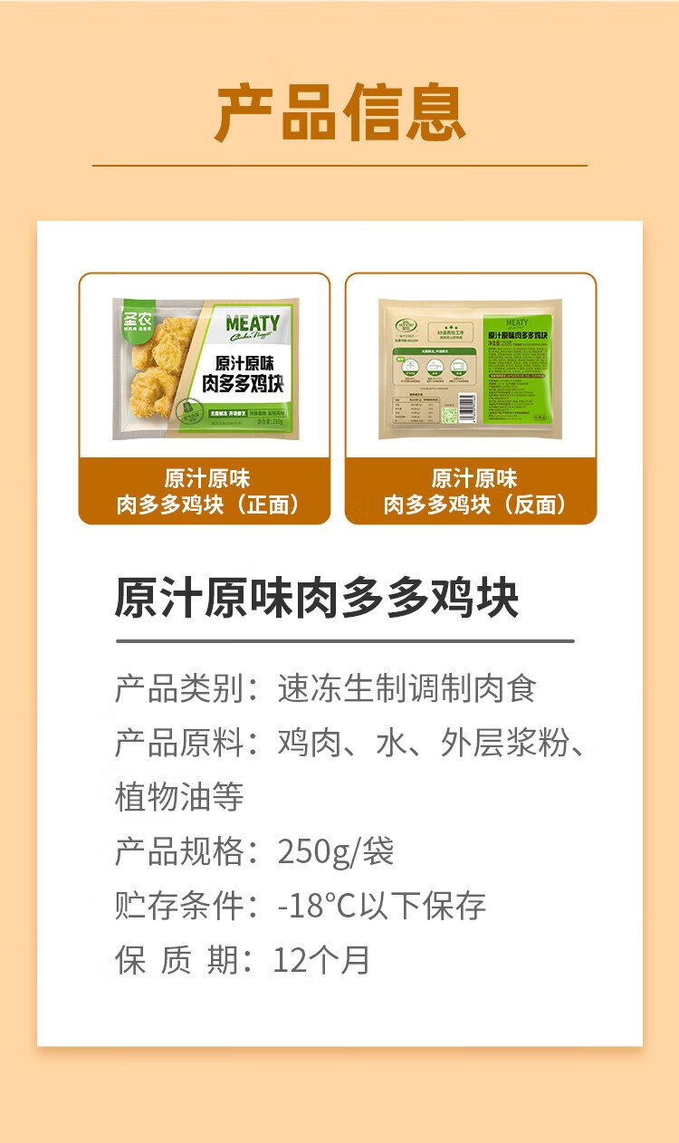 Sheng Nong Meat Duoduo Chicken Nuggets 250g*3 bags of frozen original fried chicken nuggets, breaded fried chicken, air fryer ingredients