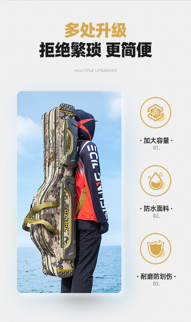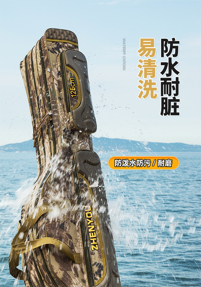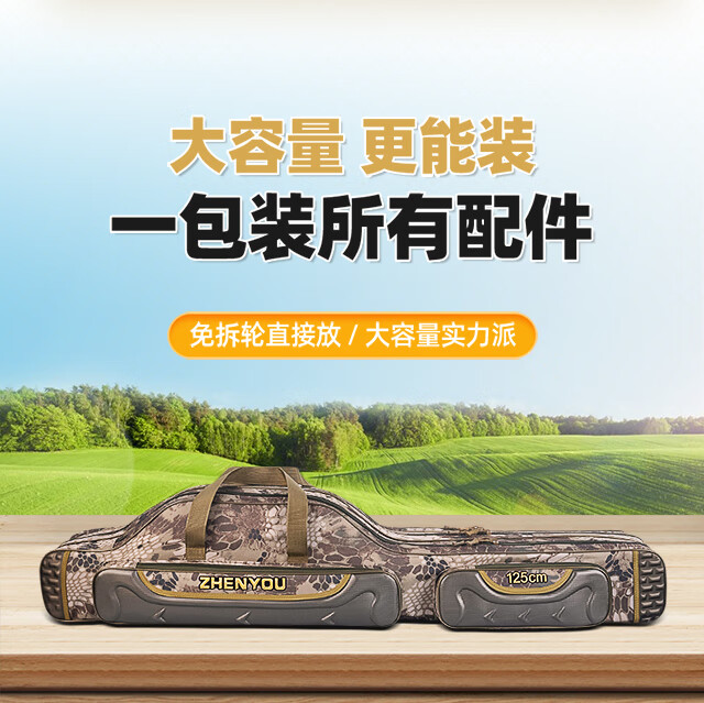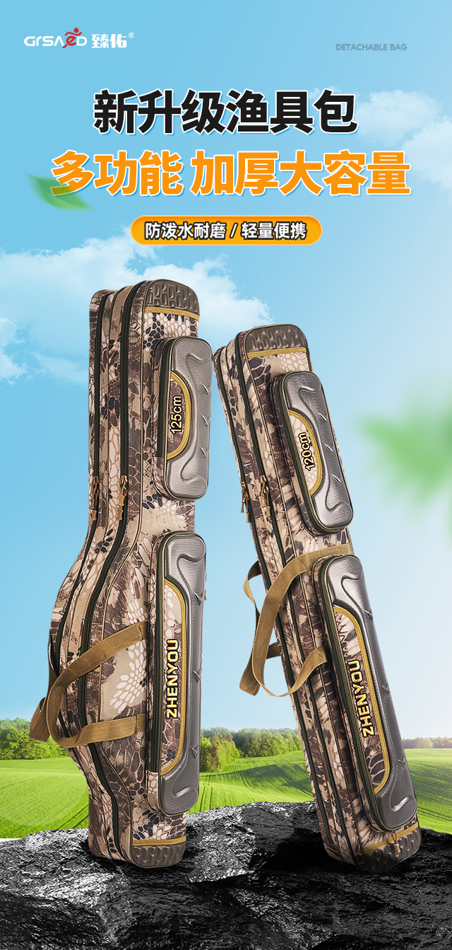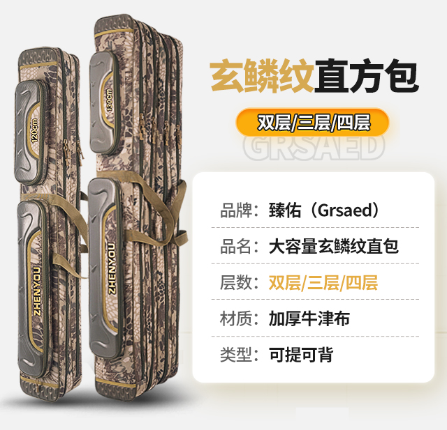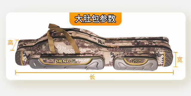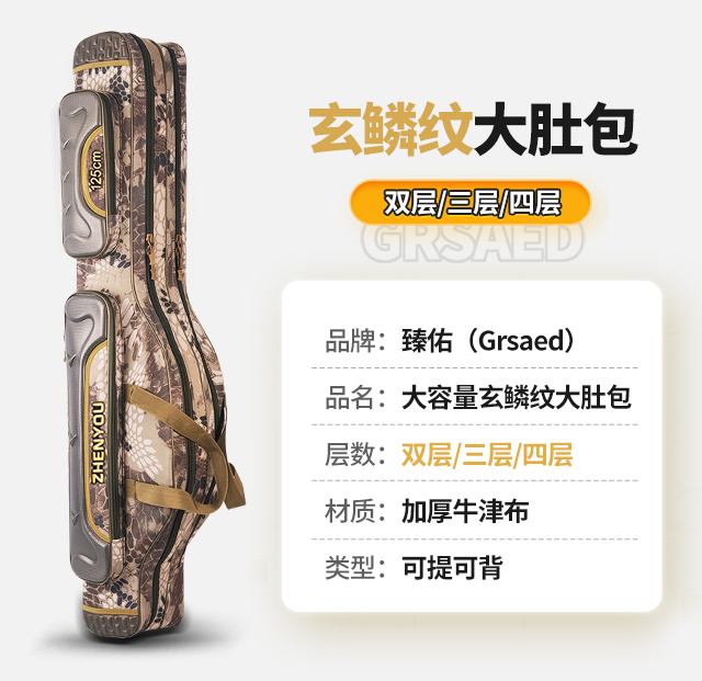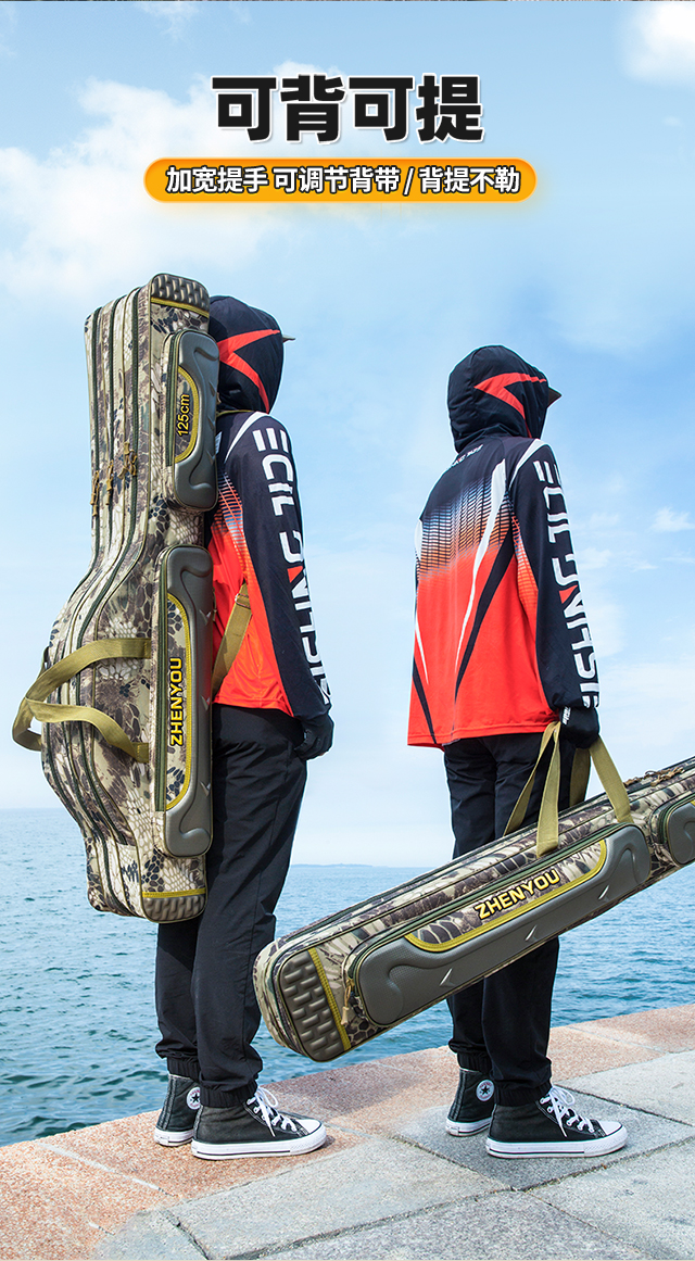 Zhenyou (Grsaed) fishing rod bag, thickened fishing gear bag, double-layer big belly bag, 1.30 meter rod bag, multi-functional storage bag, hand rod bag, table fishing rod bag, waterproof lure bag, sea rod fishing bag, black scale