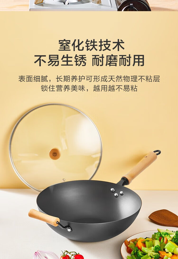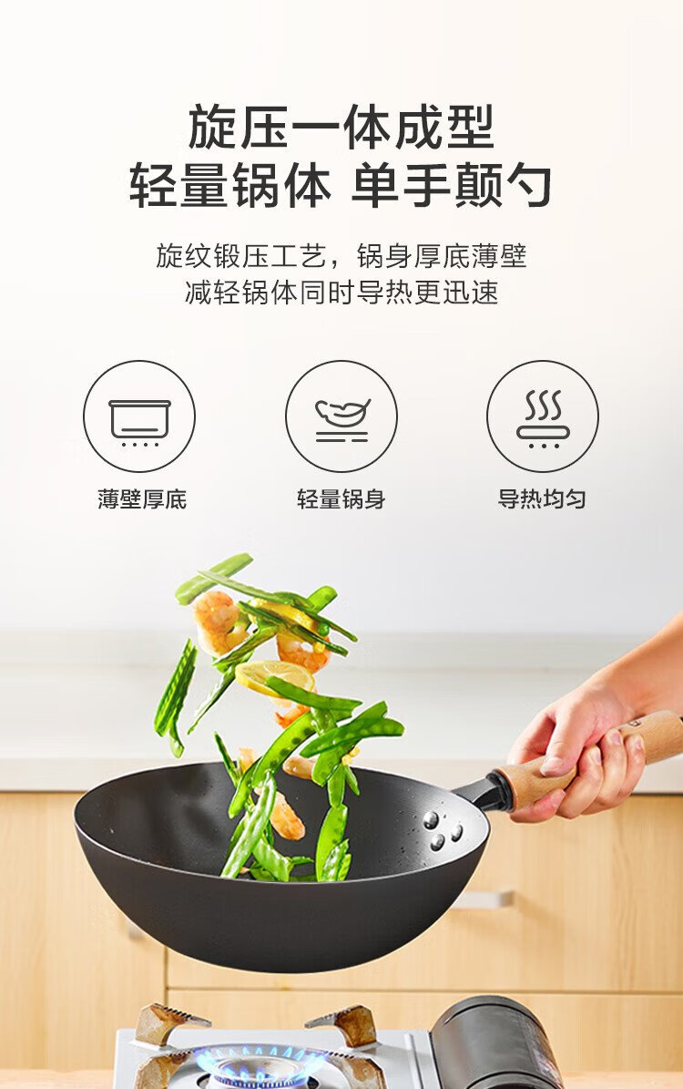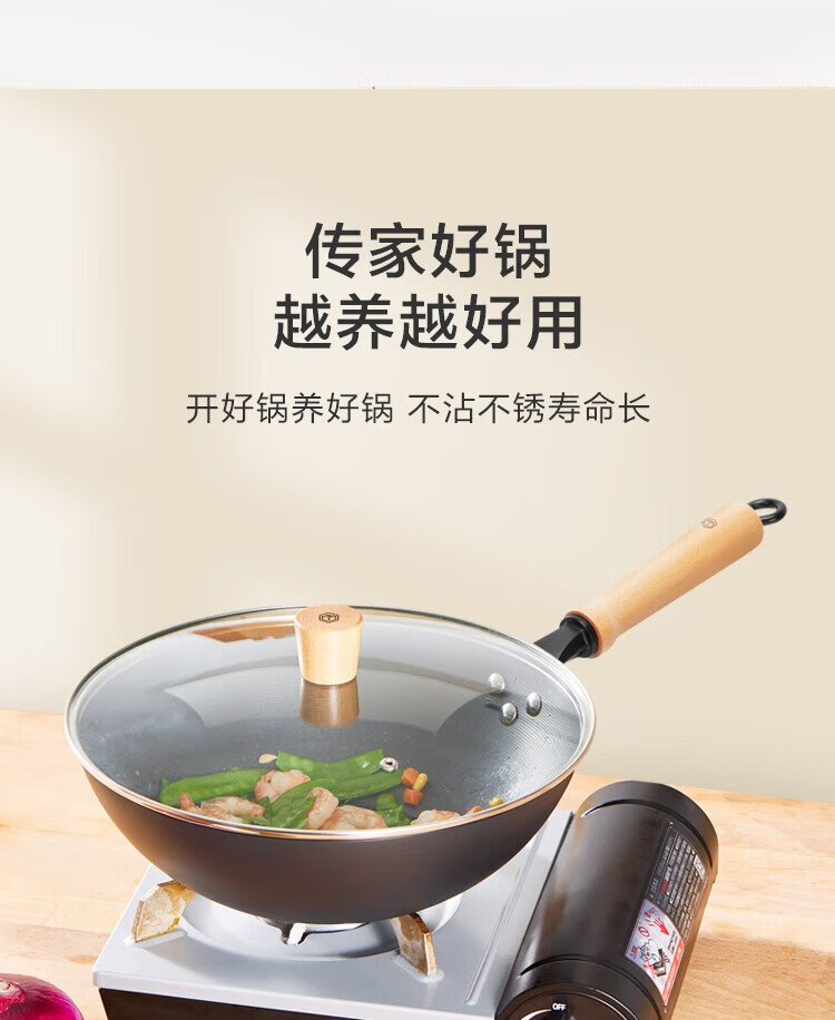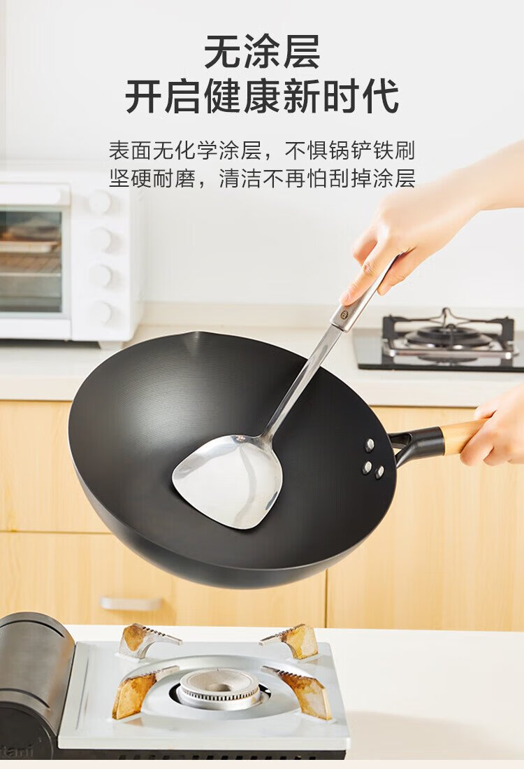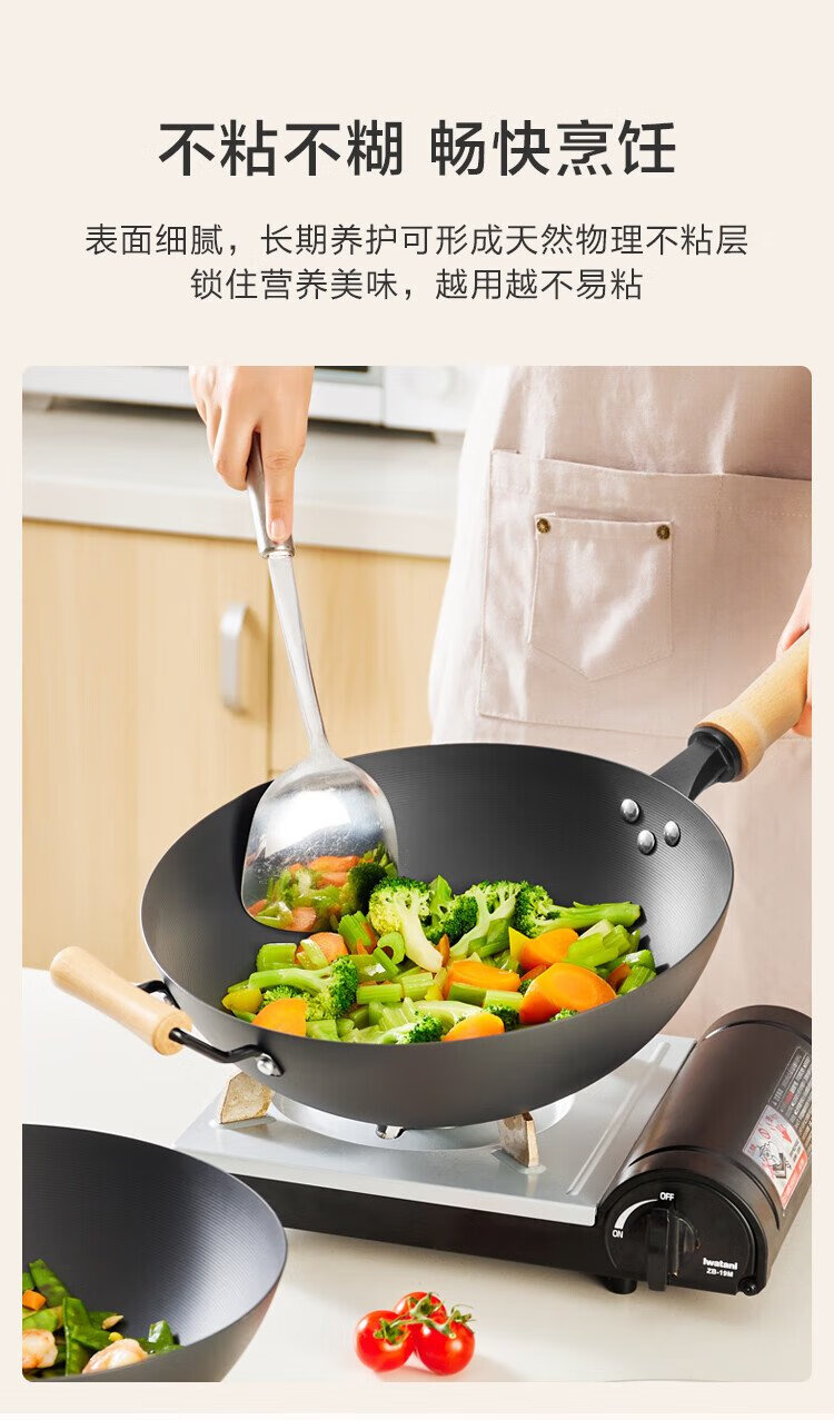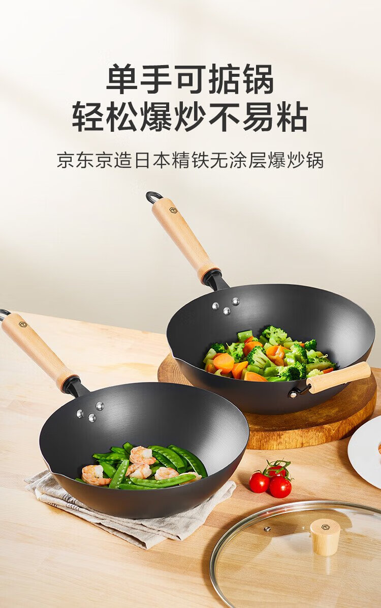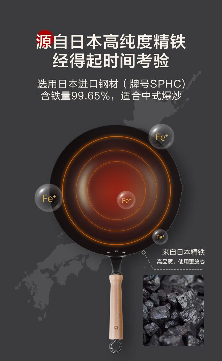 Made in Tokyo, wok, iron pan, induction cooker, gas stove, flat bottom, healthy uncoated, imported pole iron 32cm