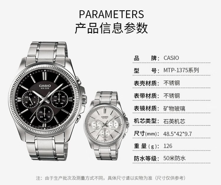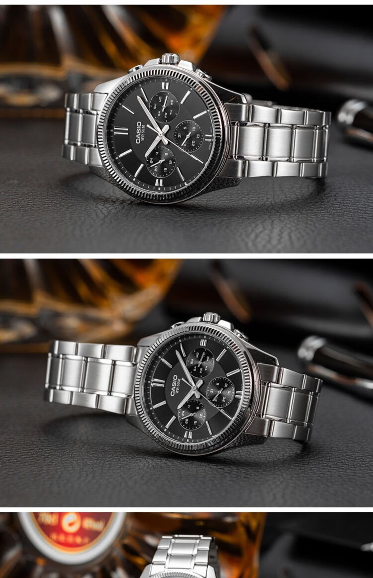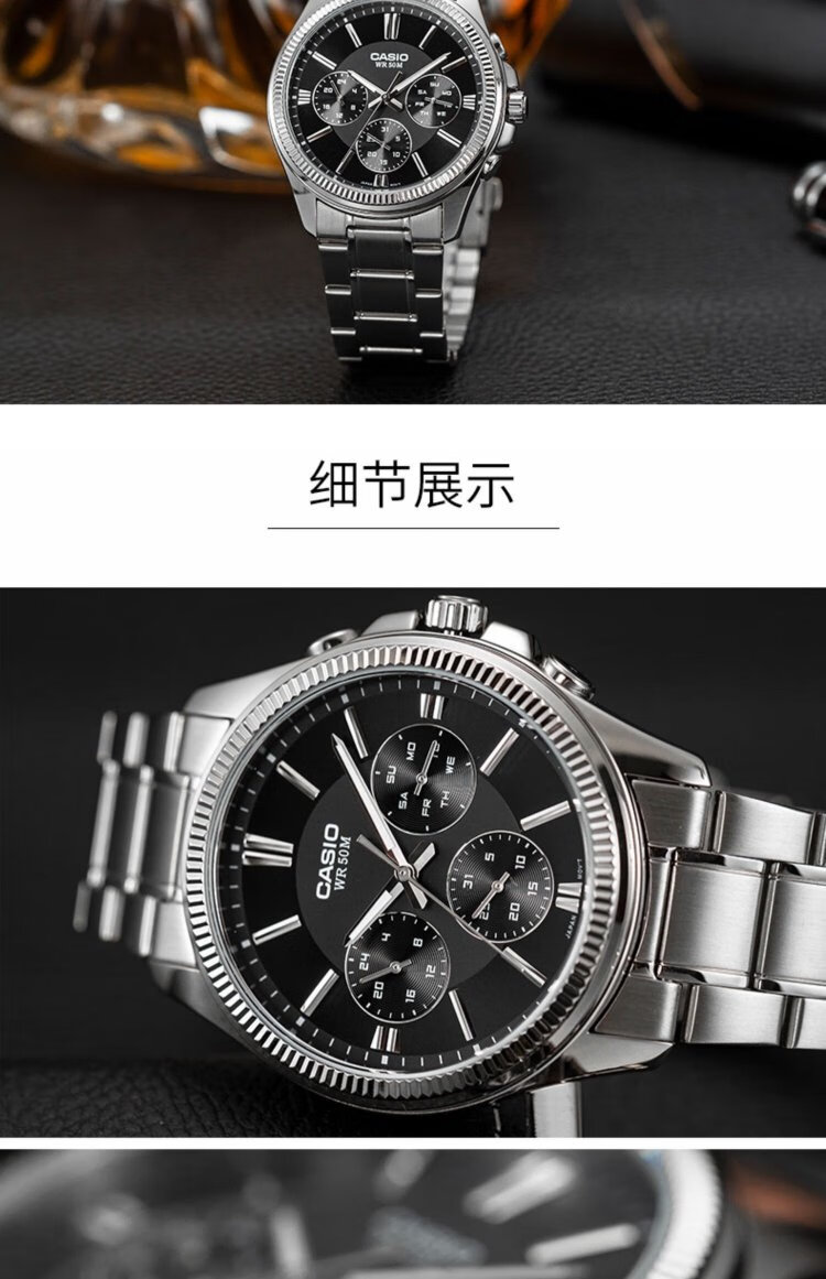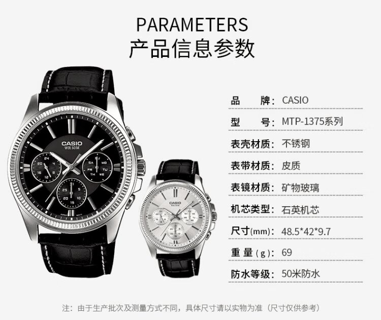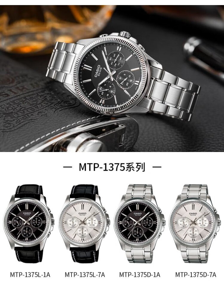 Casio (CASIO) business casual belt men's watch waterproof quartz three-eye trendy watch MTP-1375D-7AVDF
