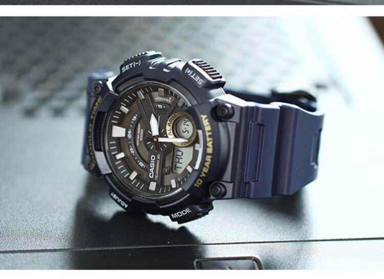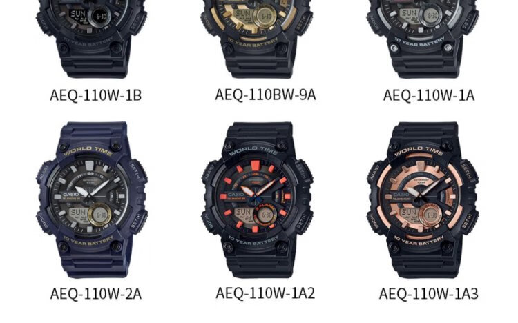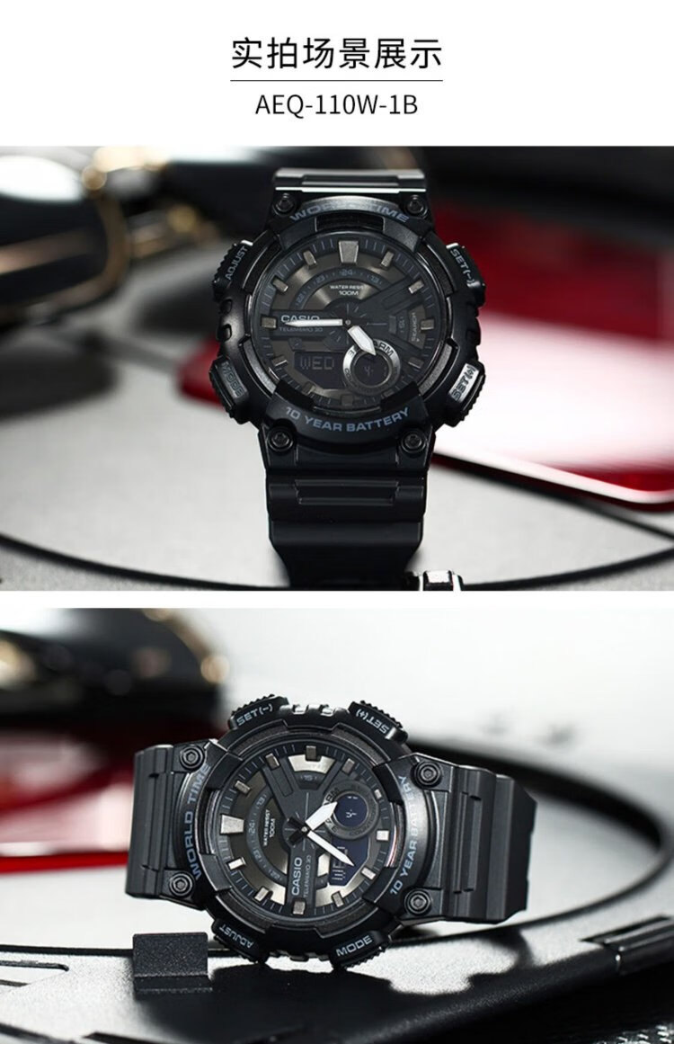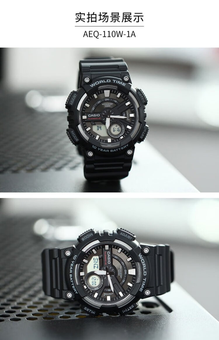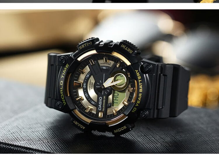 CASIO Volkswagen Pointer Series Fashionable Waterproof Digital Dual Display World Time Sports Men's Watch AEQ-110W-1AVDF