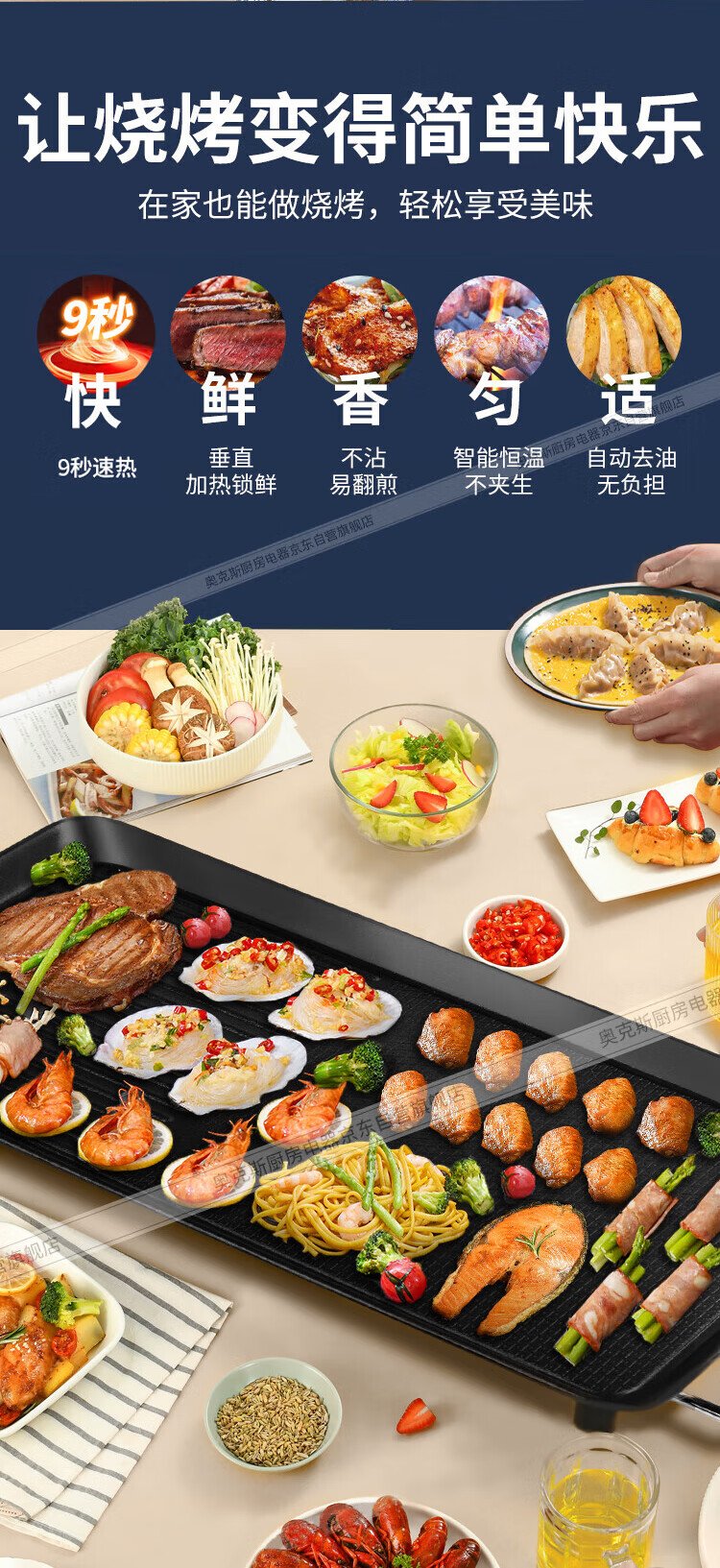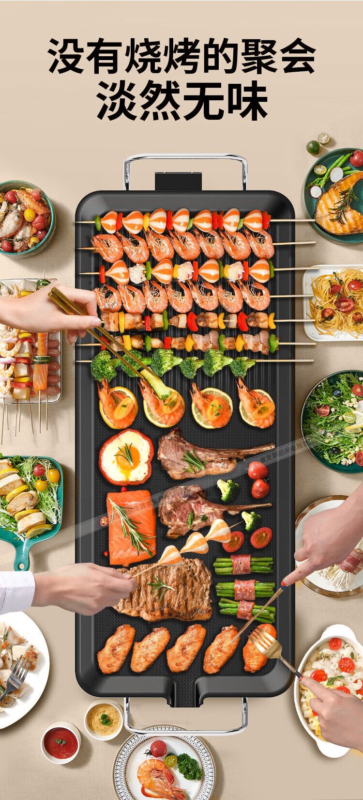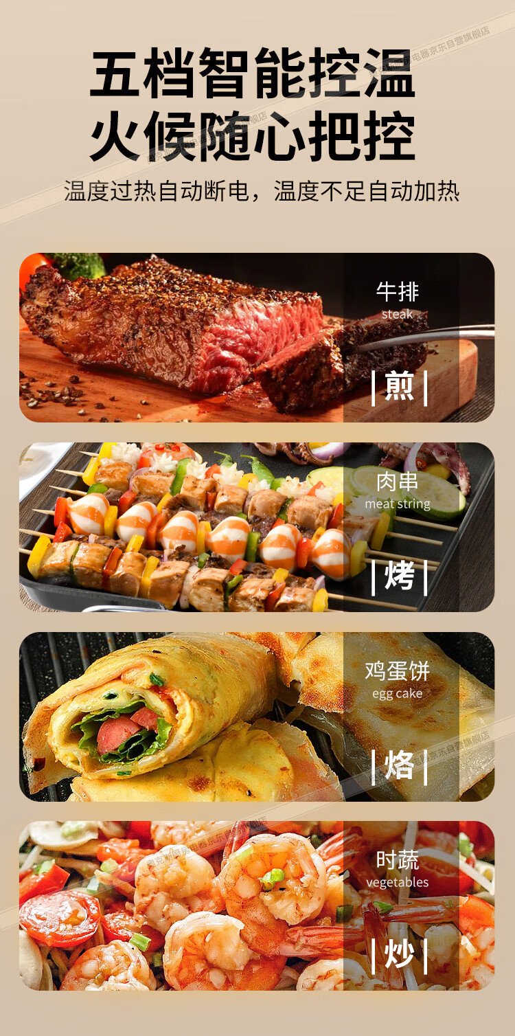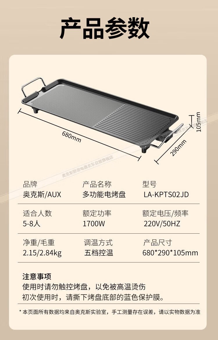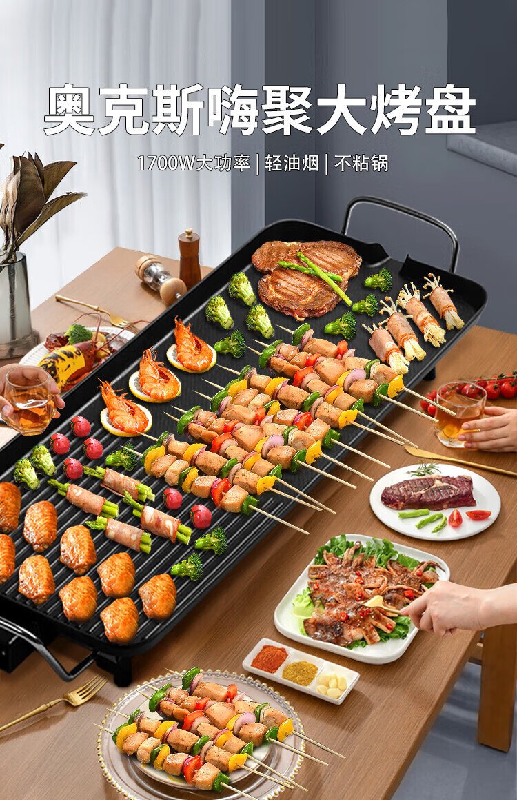 AUX electric grill household electric griddle skewers machine non-stick barbecue pot Korean style frying pan electric grill plus size LA-KPTS02JD