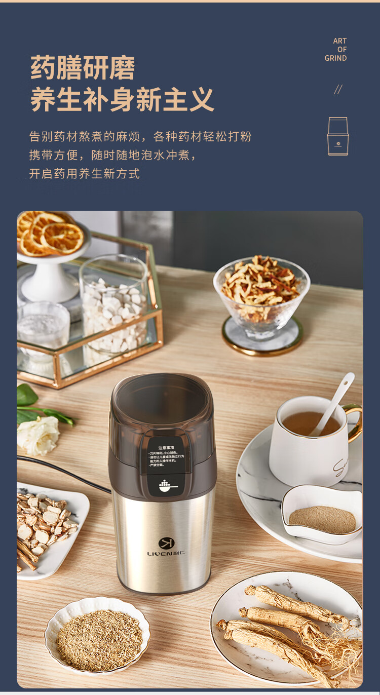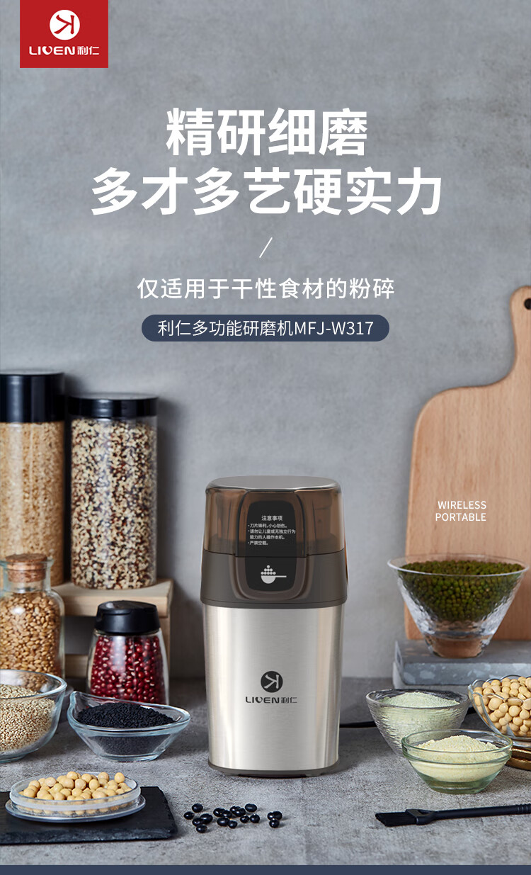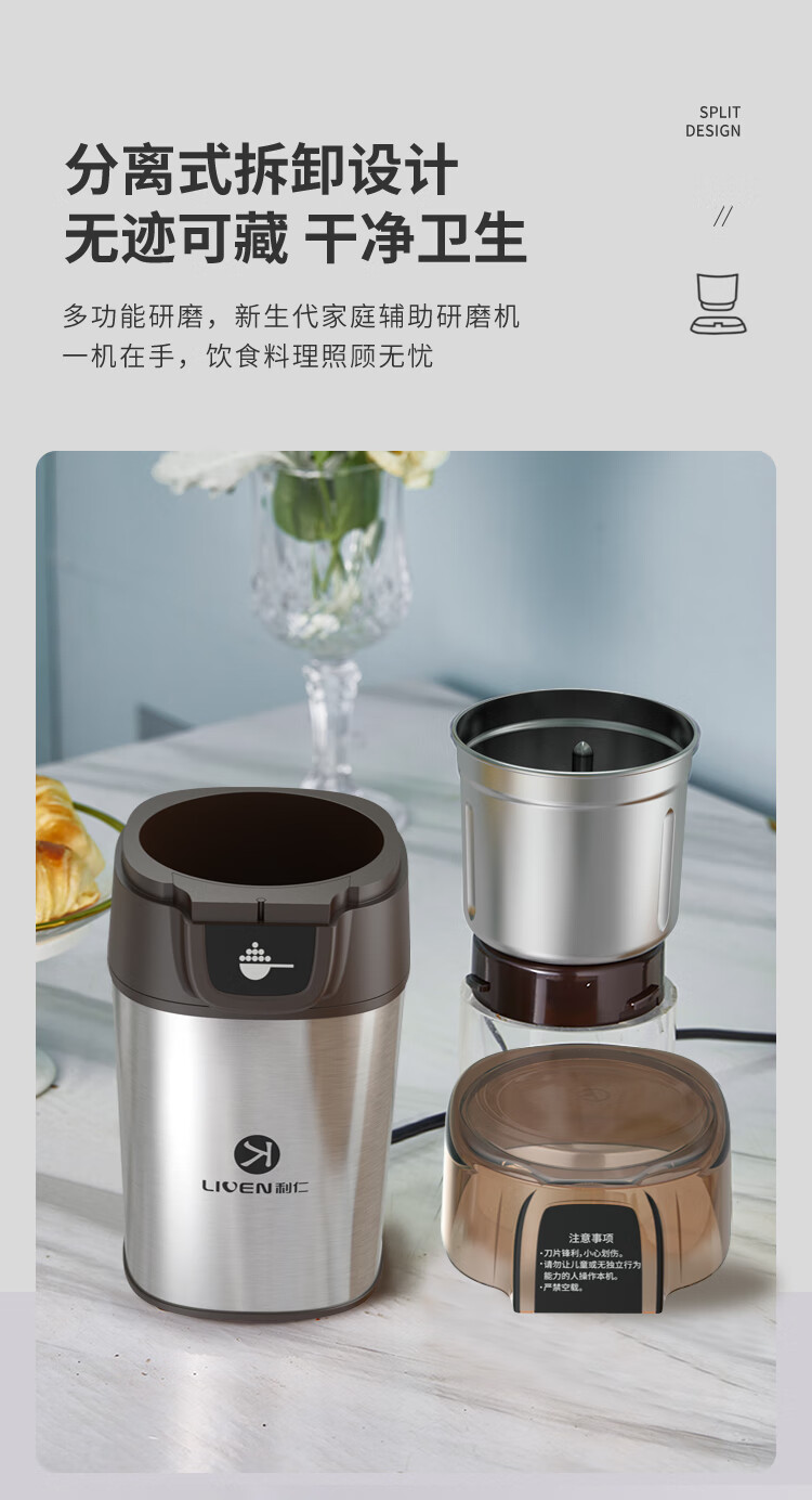 Liven grinder, bean grinder, electric coffee bean grinder, food supplement machine, household small crusher, ultra-fine grain grinding machine, split removable and washable food processor MFJ-W317