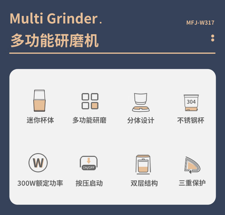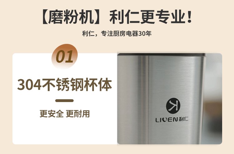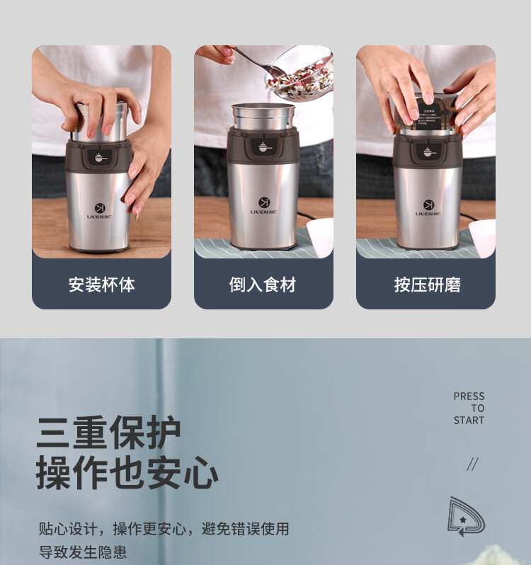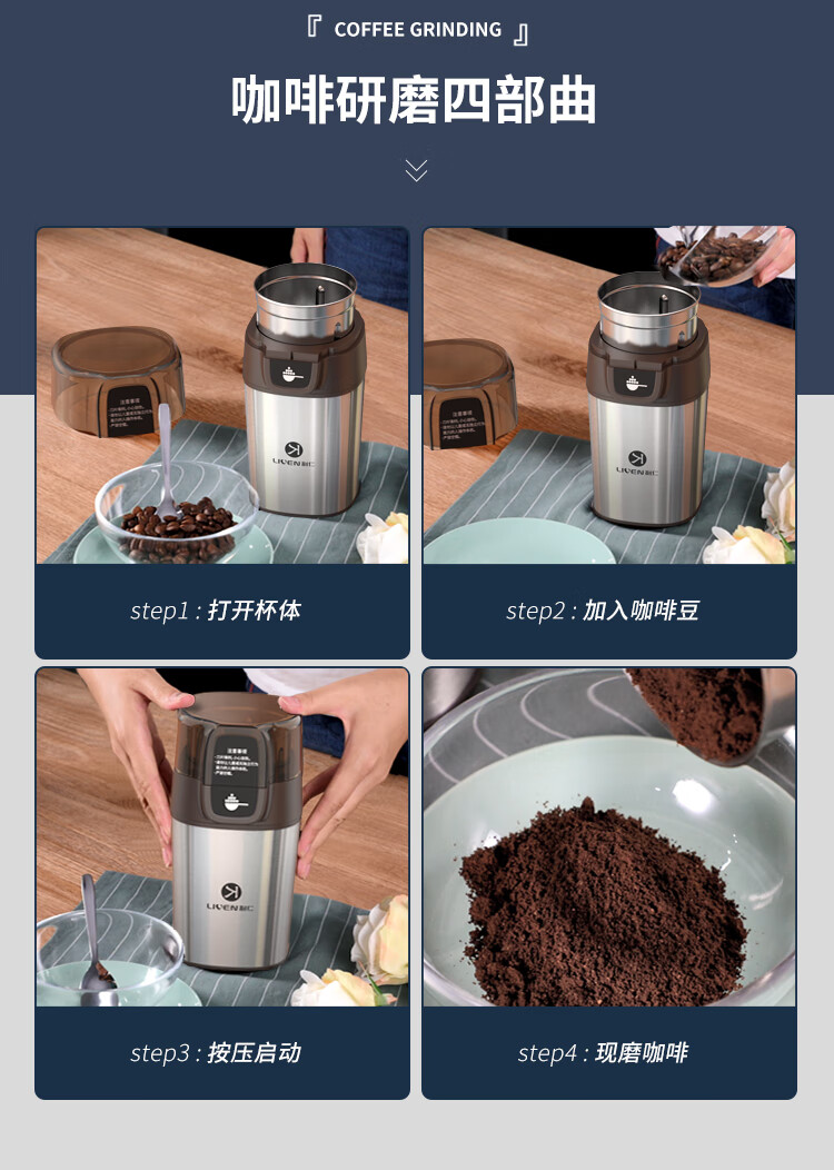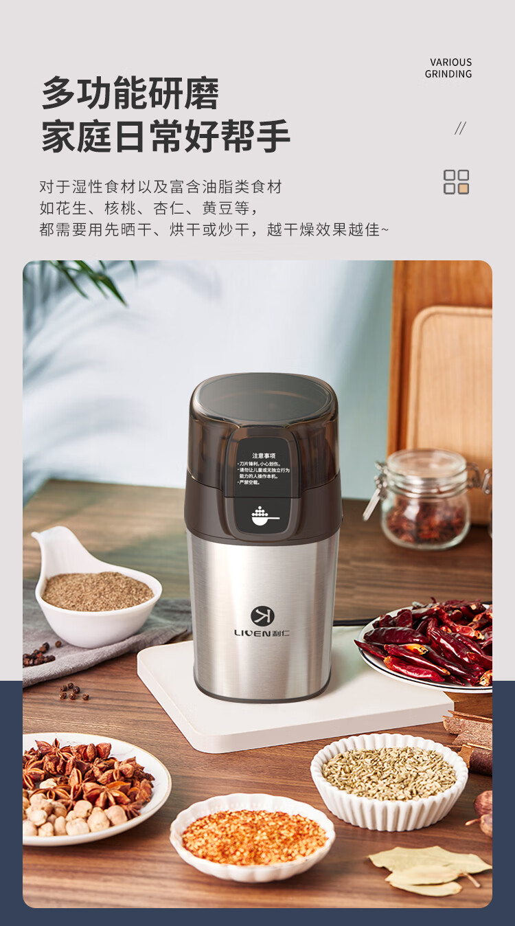 Liven grinder, bean grinder, electric coffee bean grinder, food supplement machine, household small crusher, ultra-fine grain grinding machine, split removable and washable food processor MFJ-W317