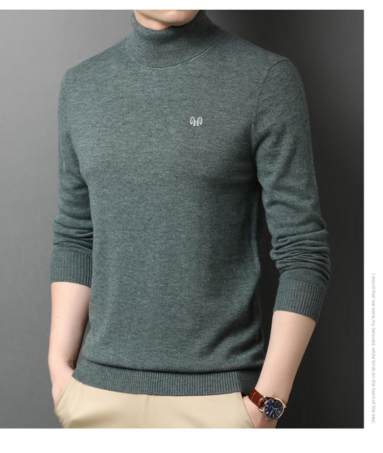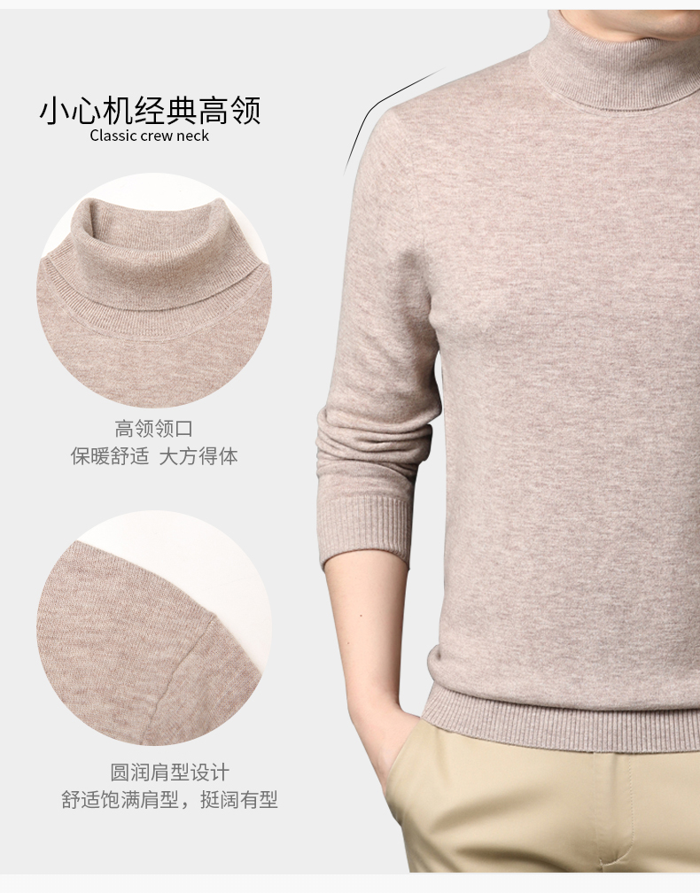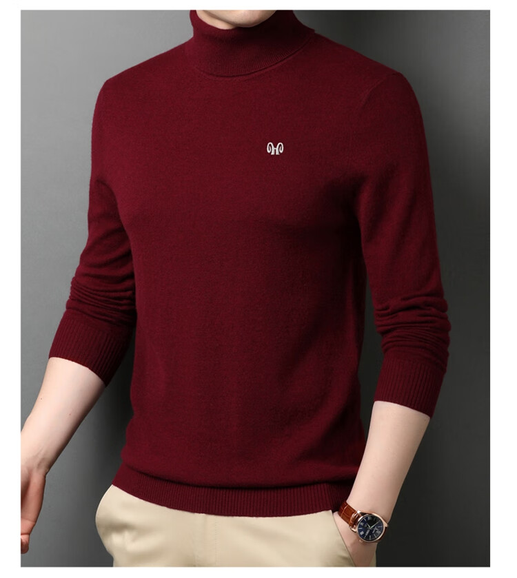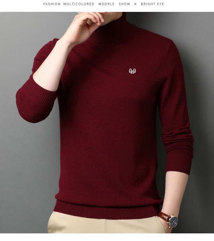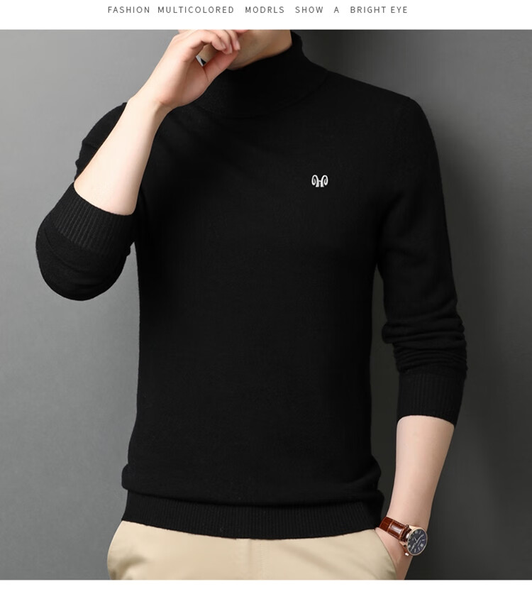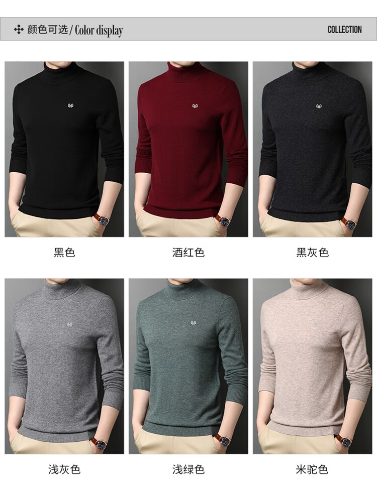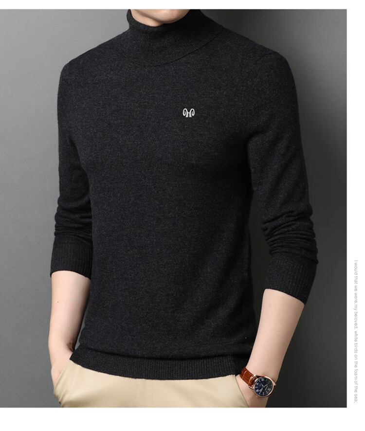 Hengyuanxiang wool sweater men's 100% pure wool autumn and winter young and middle-aged men's turtleneck sweater solid color casual bottoming sweater
