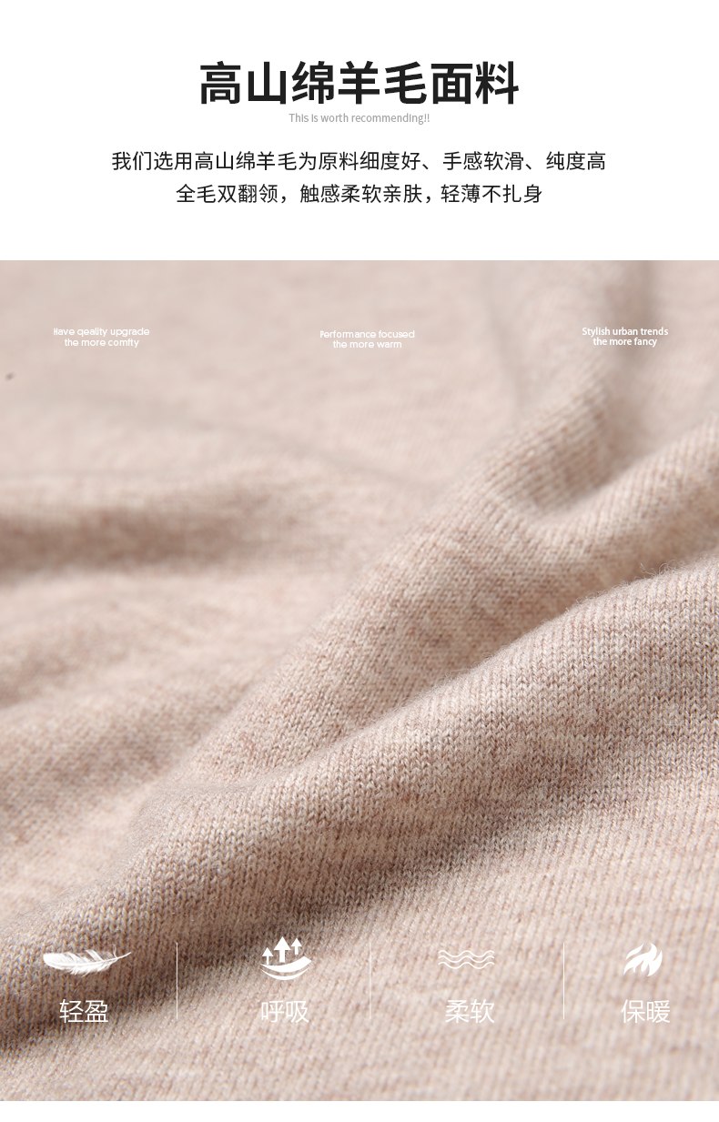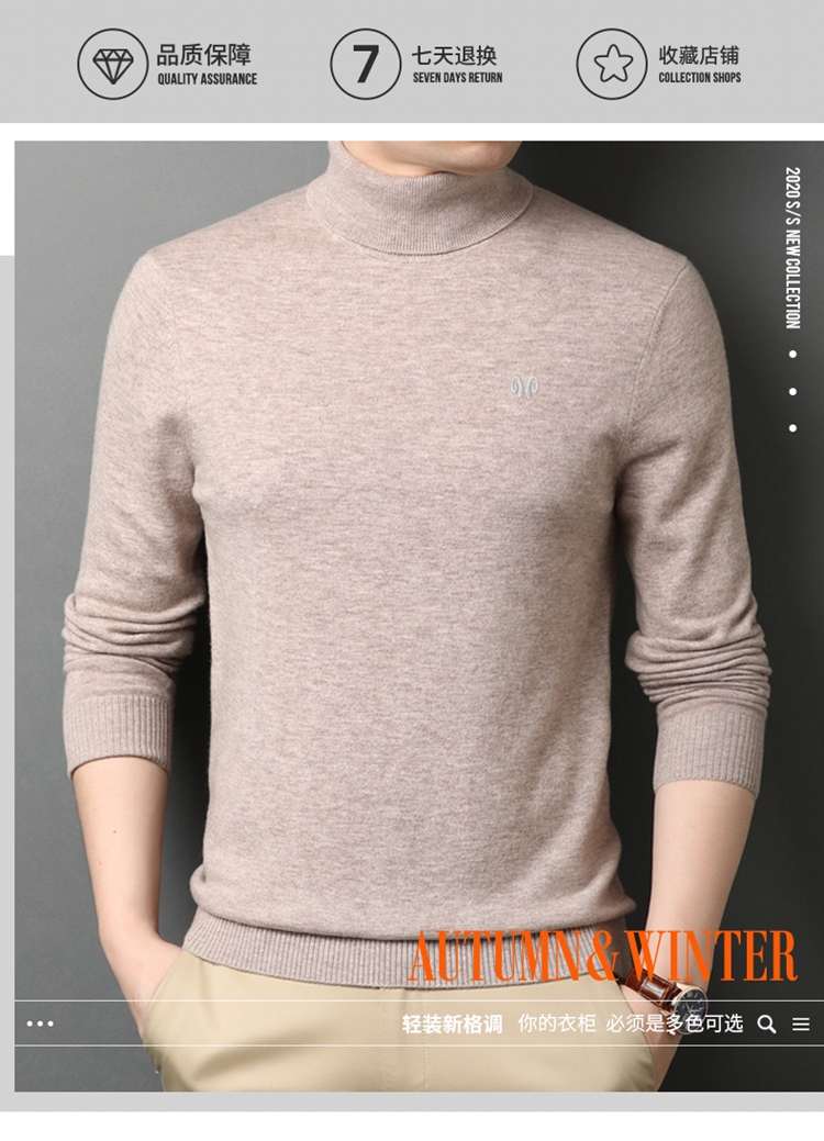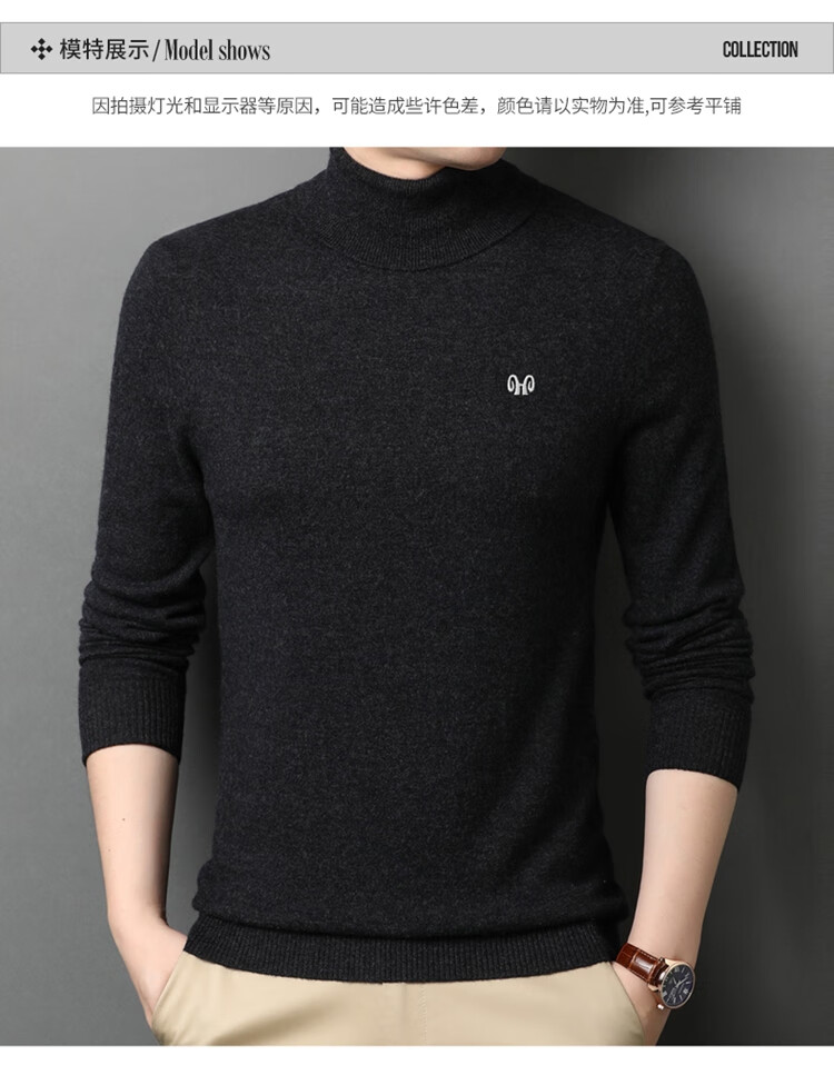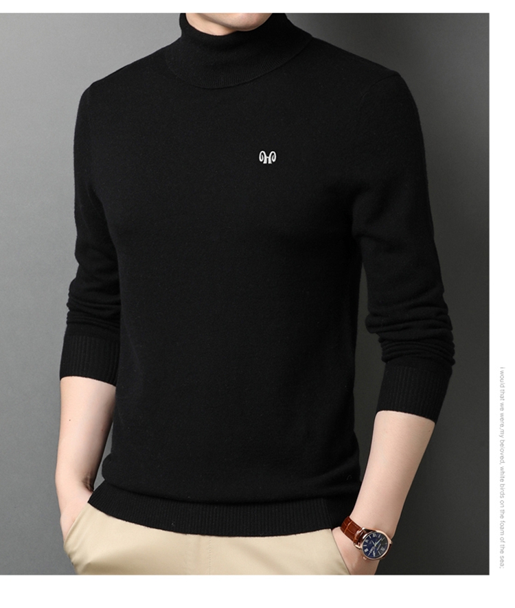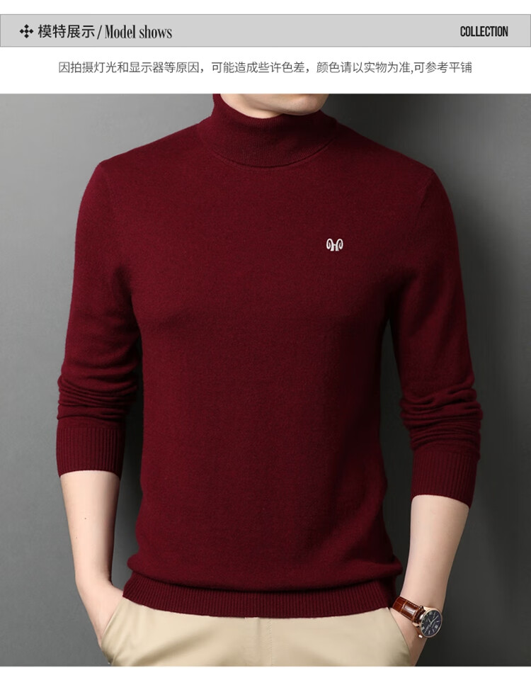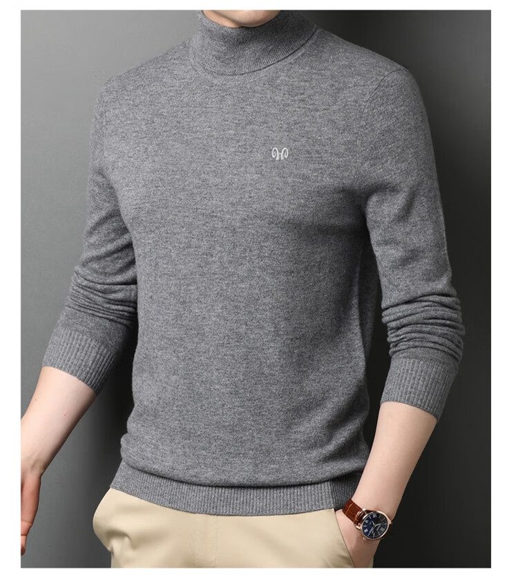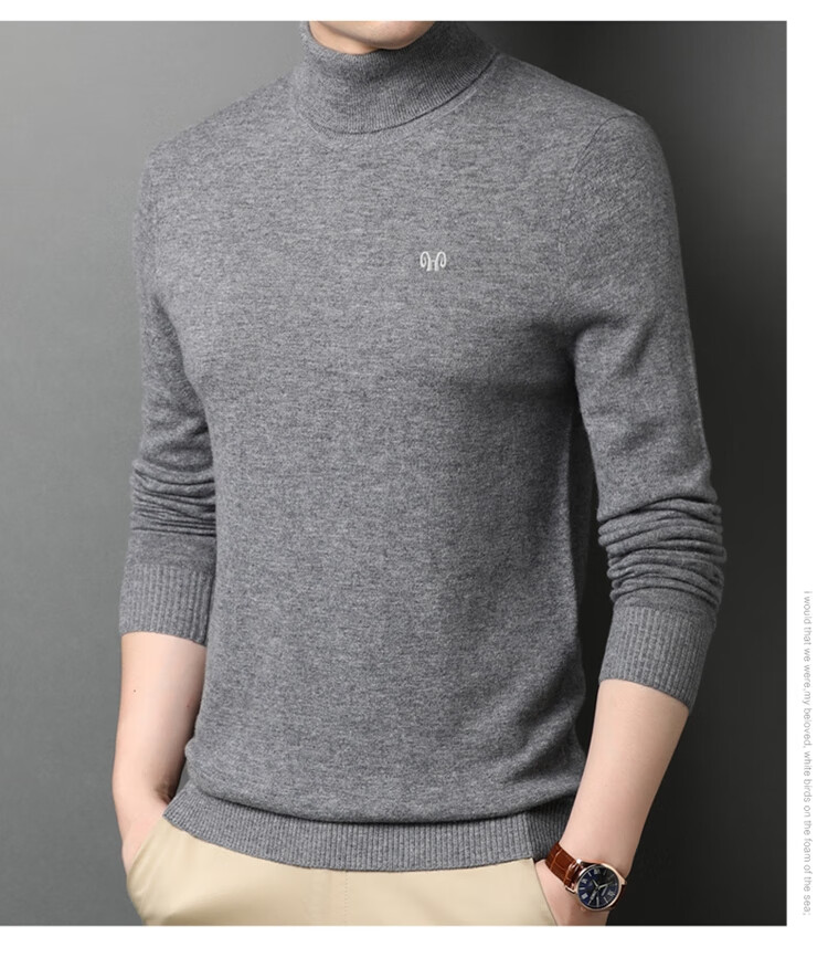 Hengyuanxiang wool sweater men's 100% pure wool autumn and winter young and middle-aged men's turtleneck sweater solid color casual bottoming sweater