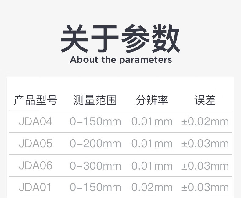 Three-quantity high-precision caliper with meter 0-150-200-300mm industrial representative stainless steel vernier caliper JDA14 0-300mm0.01 closed upgrade