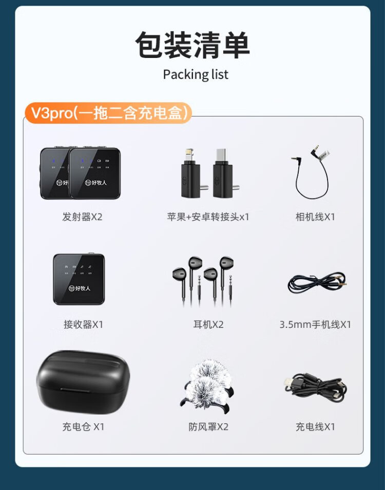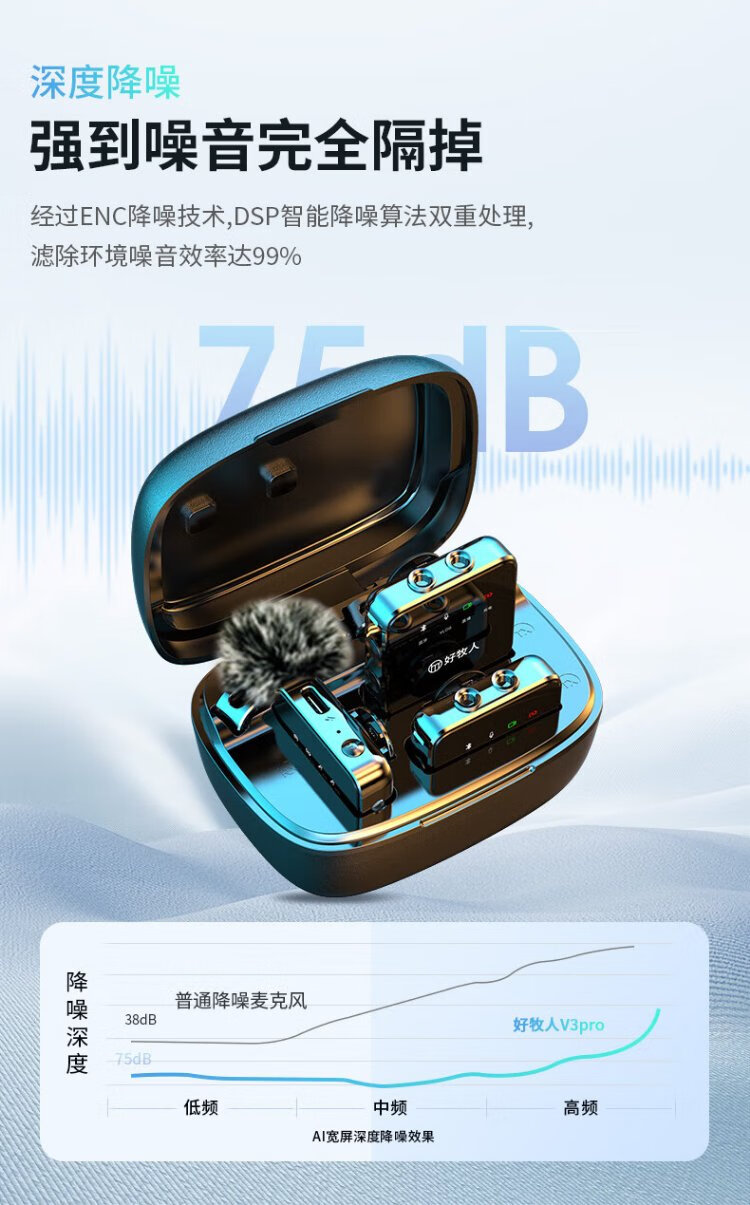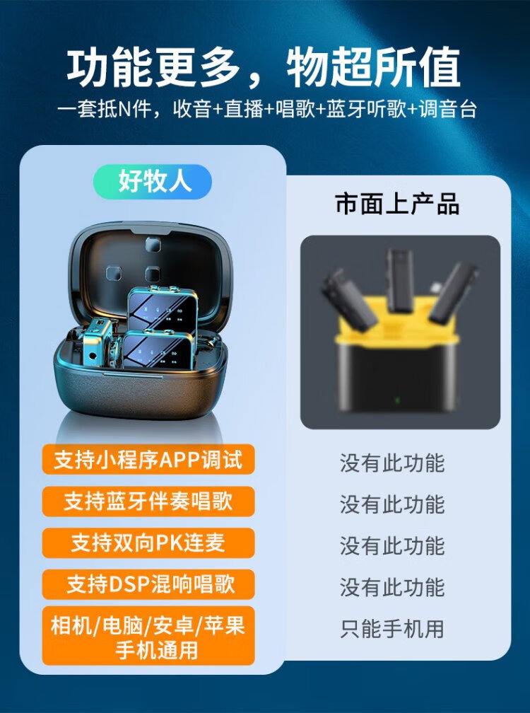 Good Shepherd Wireless Lavalier Microphone Live Broadcast Radio Mobile Phone Special Recording Equipment Sound Card Noise Reduction Douyin Anchor K Song Shooting Video Little Bee Computer Camera Microphone One to Two