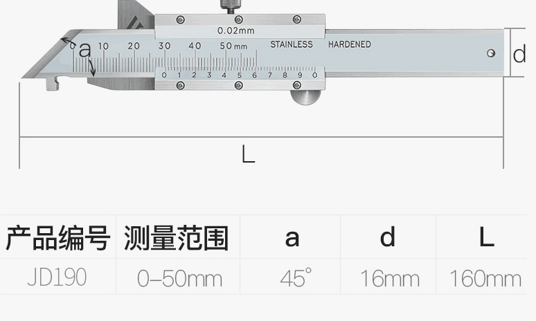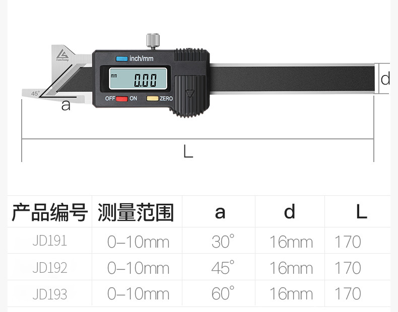 Three-quantity stainless steel high-precision 45-degree chamfer ruler digital display vernier caliper chamfer gauge measuring 0-10mm JD192 digital display 45 degrees