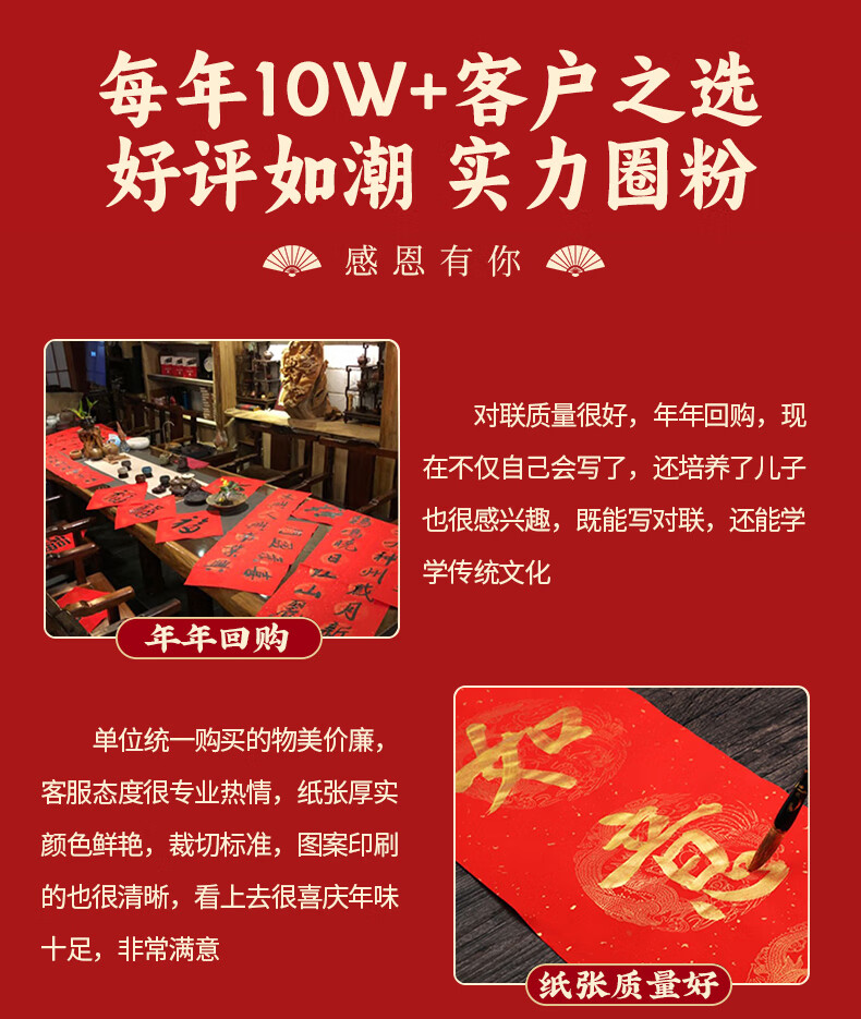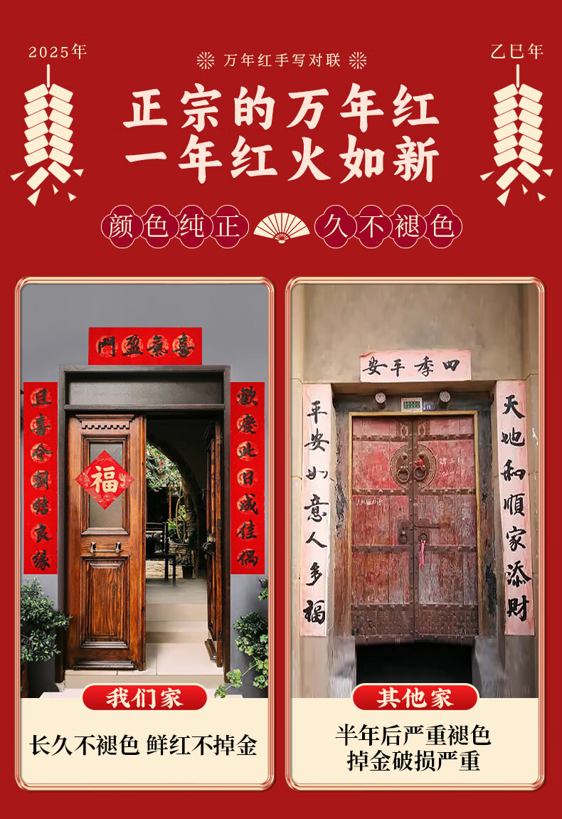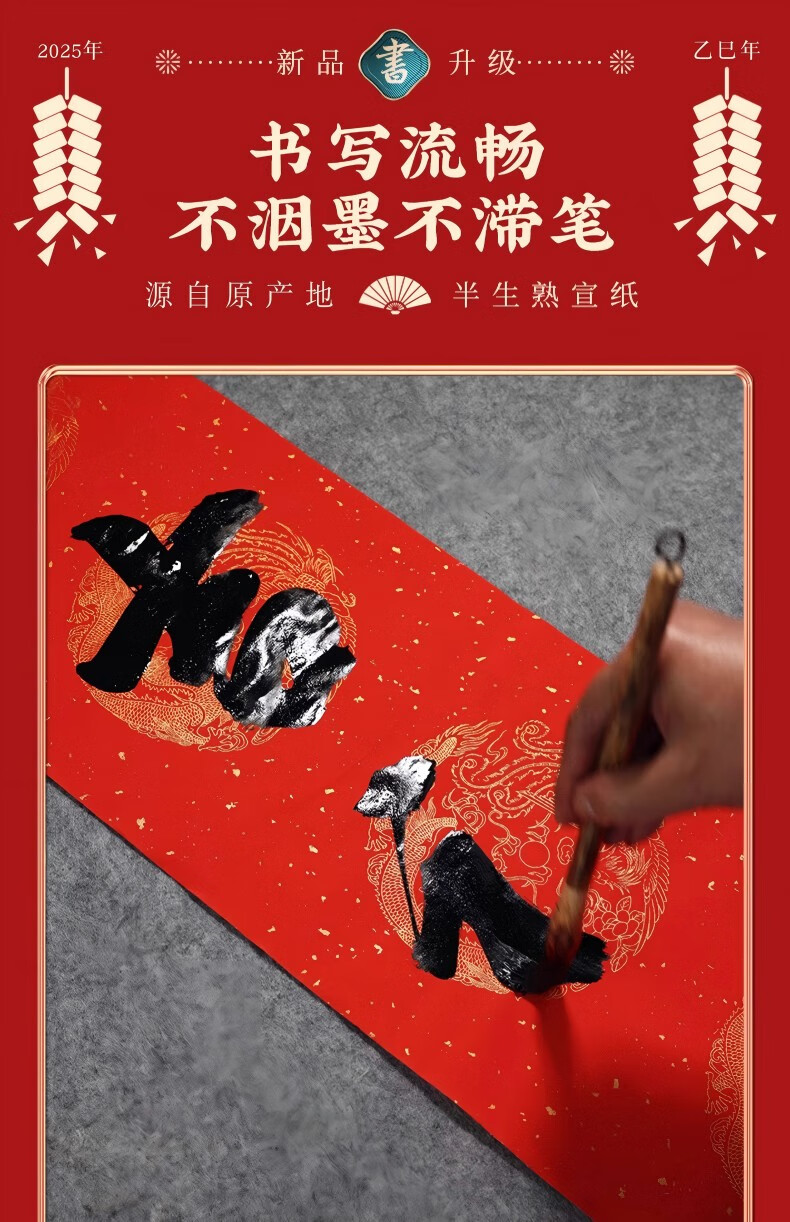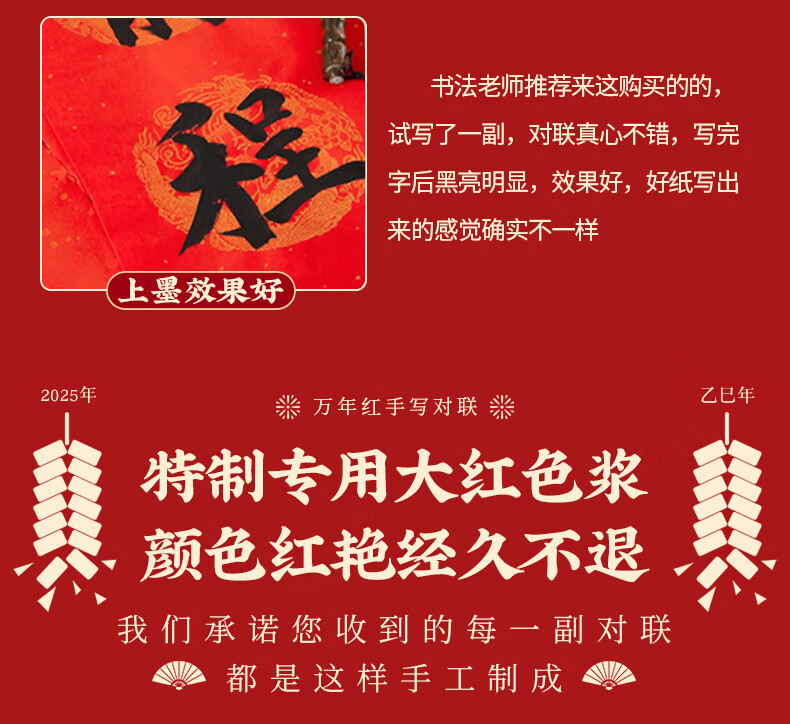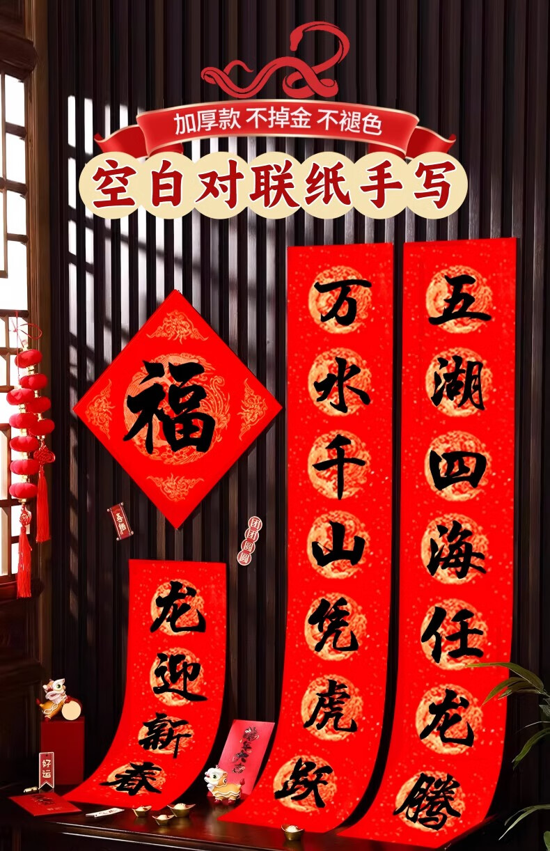 Southern Scholarly Thickened Ten Thousand Years Red Couplet Paper Blank Spring Couplet Paper Handwritten Couplet Special Red Paper 2026 Year of the Horse Rice Paper Hot Stamping Blessing Paper Dou Fang Rural Gate 23*138cm