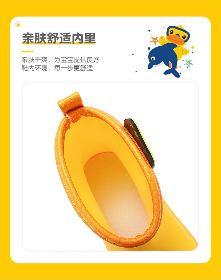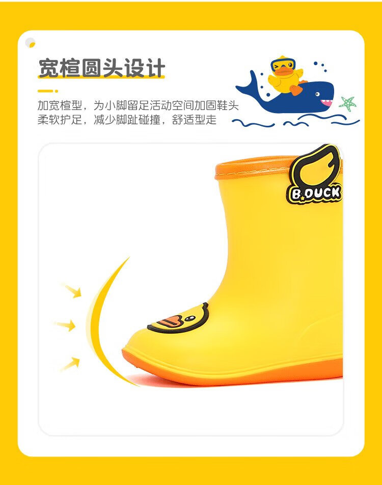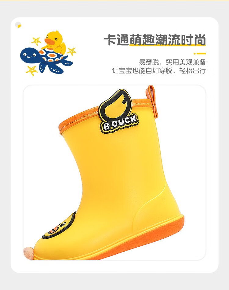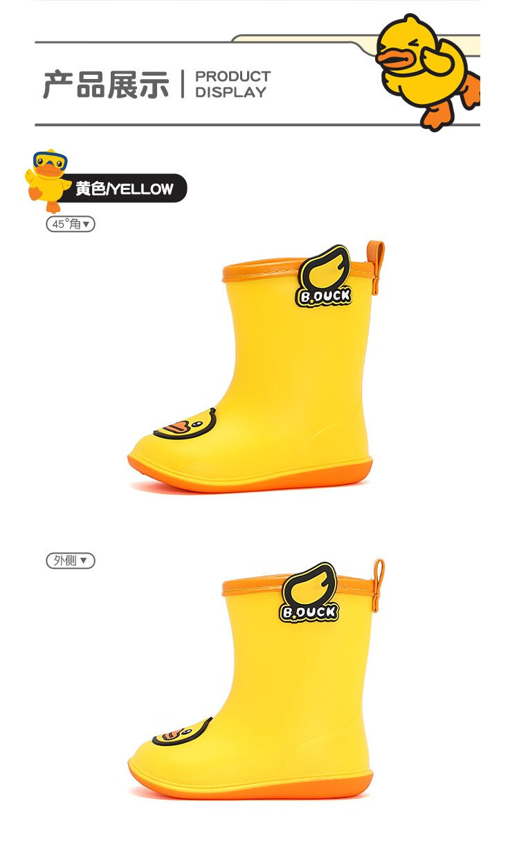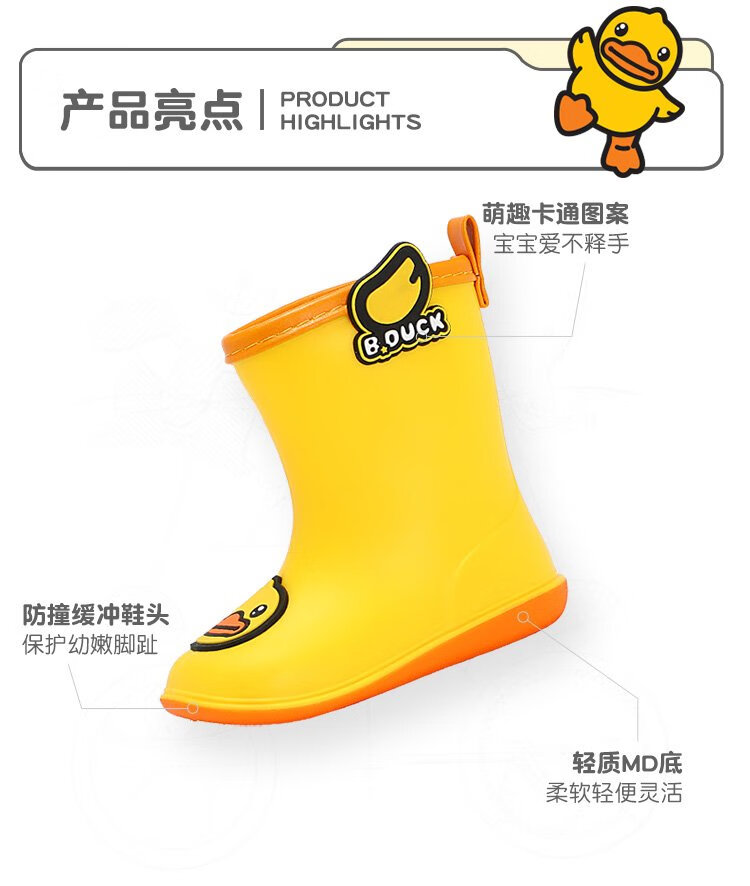 B.Duck little yellow duck children's shoes children's rain boots fashionable waterproof rain boots boys and girls baby water shoes primary school students 5953 yellow 24