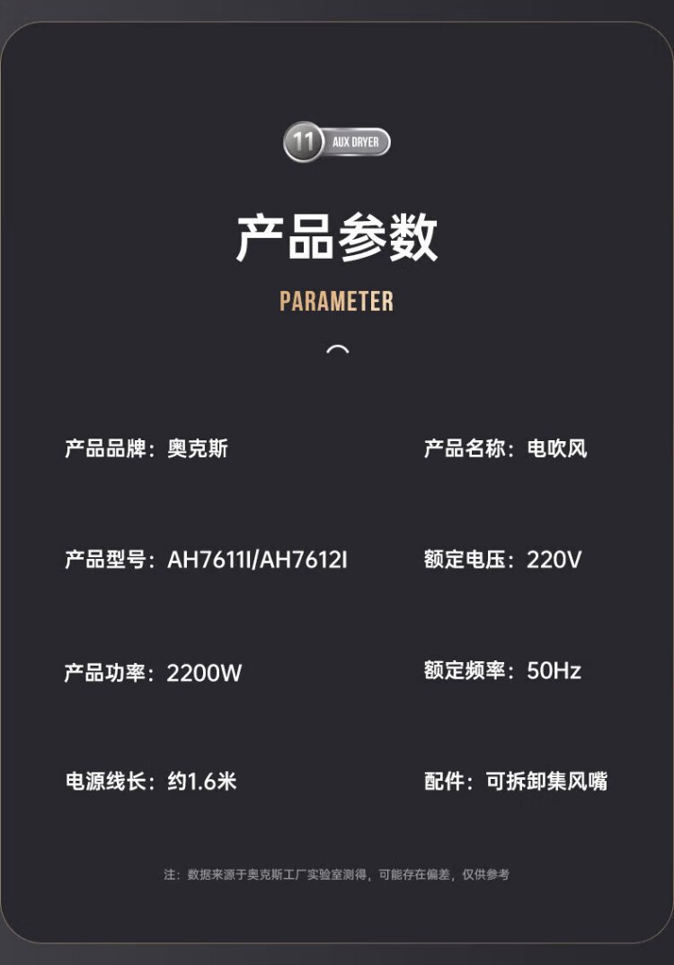 AUX hair dryer household high-power 2200W hair dryer blue light negative ion constant temperature quick-drying high wind barber shop special hair salon grade electric dryer