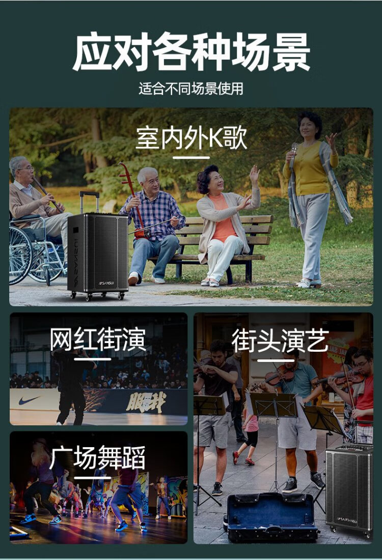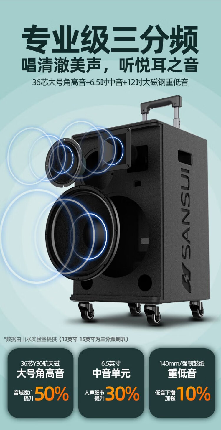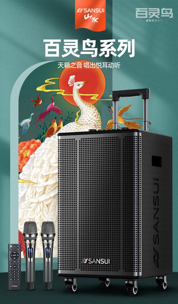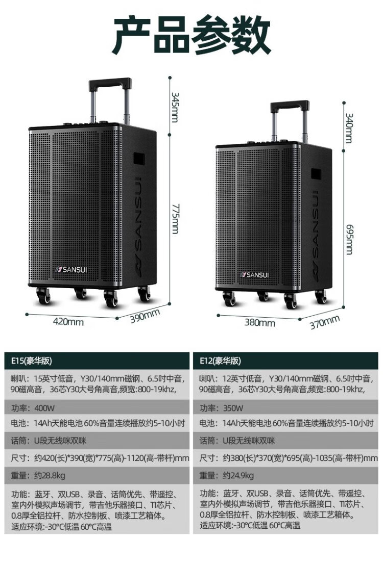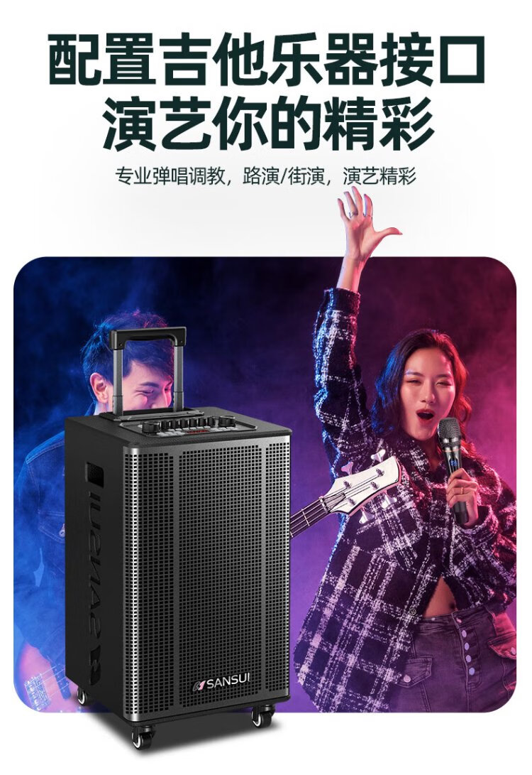 SANSUI Square Dance Audio Trolley Speaker Professional Equipment Outdoor K-Song Performance Special Portable Intelligent Audio Subwoofer Wireless Microphone E15 Electric Acoustic Guitar Folk Instrument Speaker