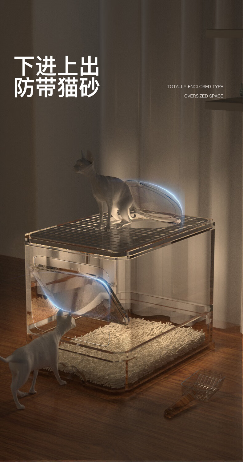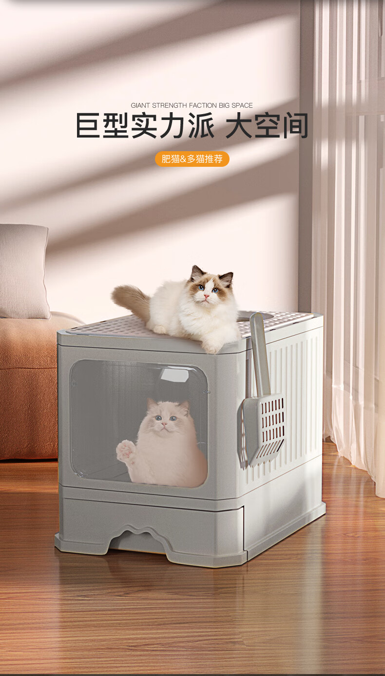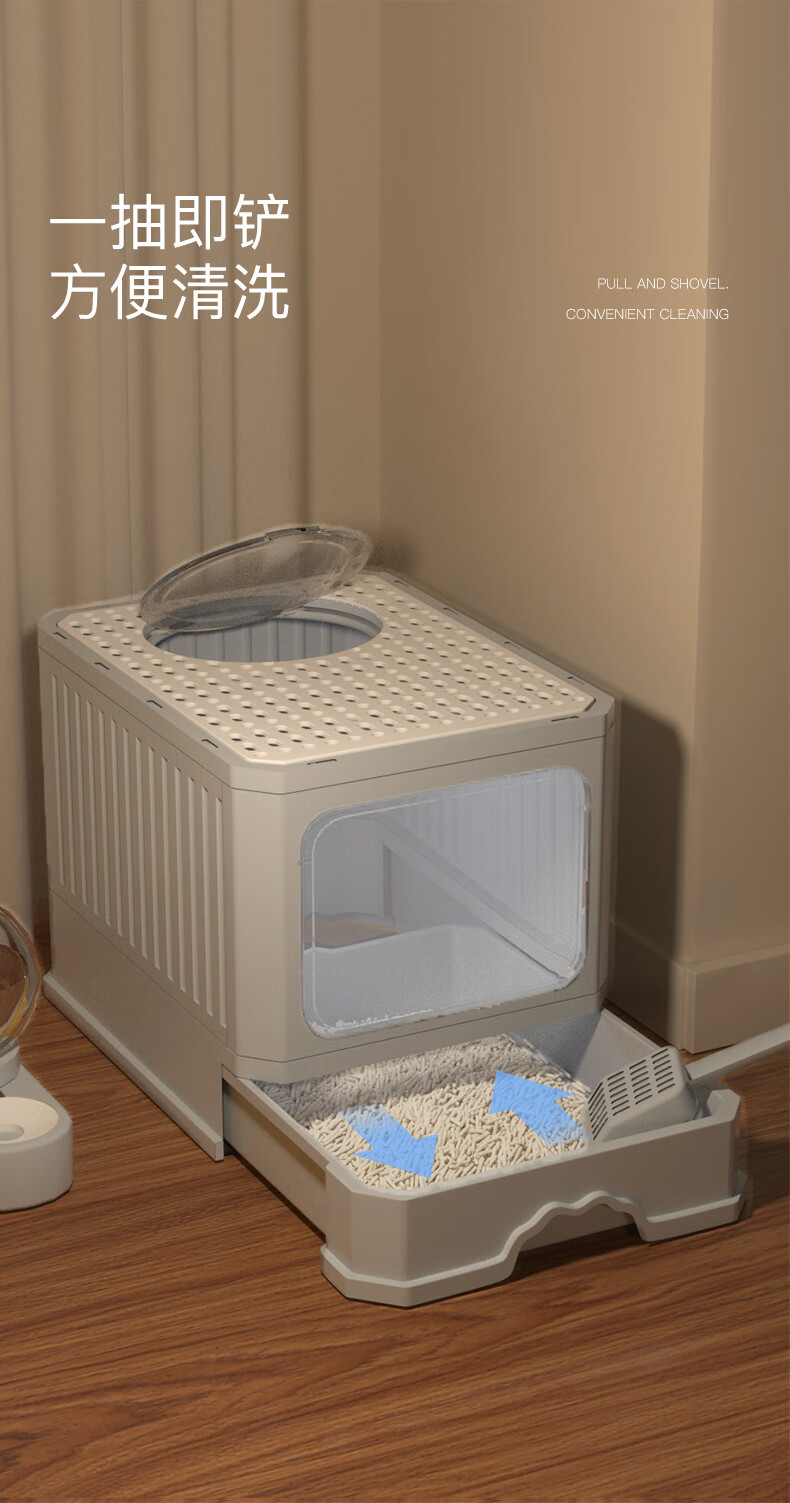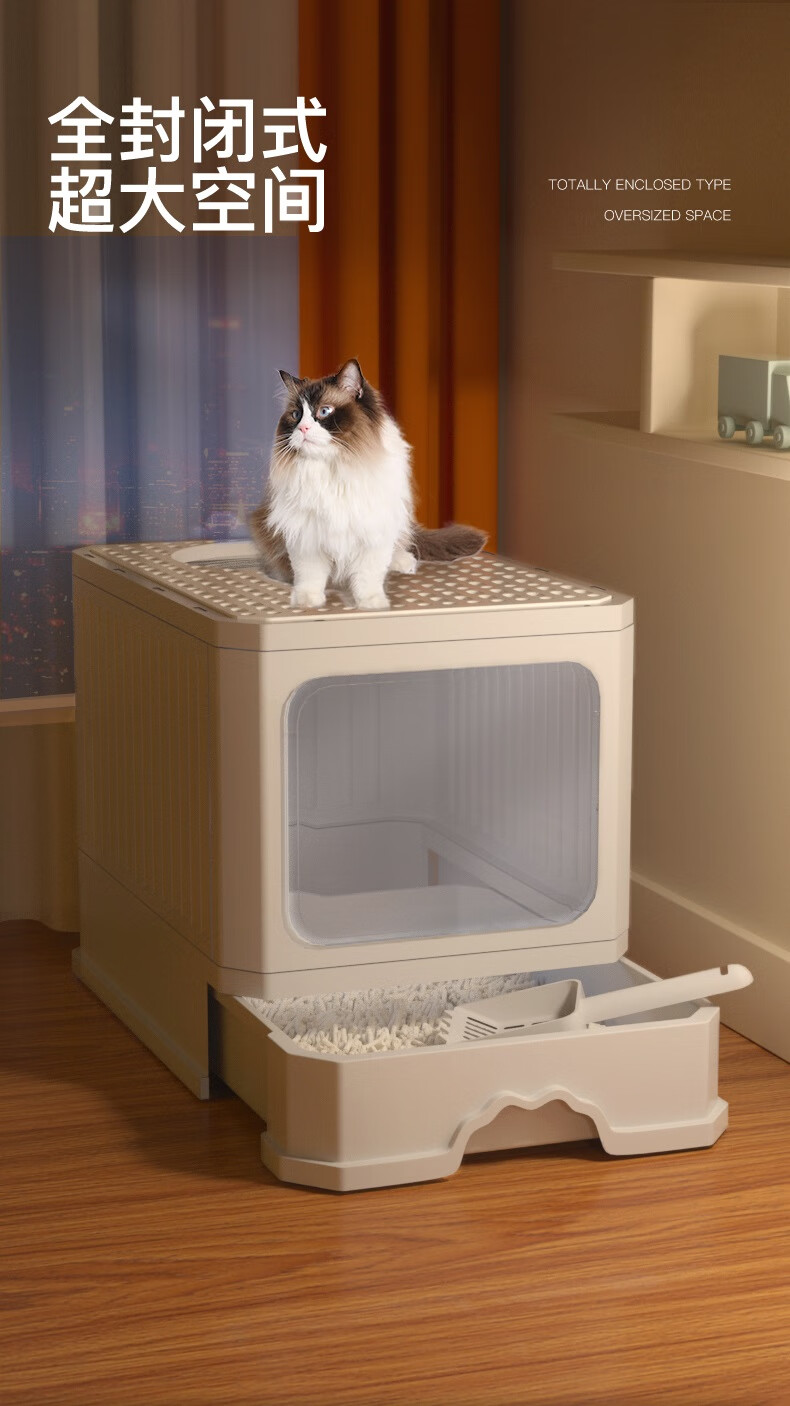 HELLOJOY cat litter box fully enclosed drawer-type splash-proof cat toilet large cat poop box cat litter box with cat litter scoop