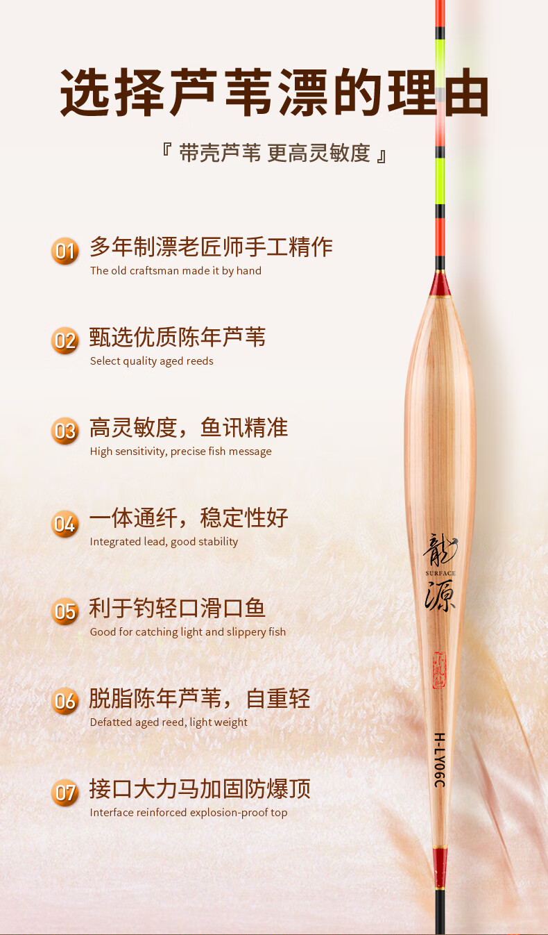 Xiaofengxian Reed Float Longyuan H-LY Fish Float Highly Sensitive Light Sliding Mouth Bold Eye-catching Float Myopia Black Pit Carp Fish Float