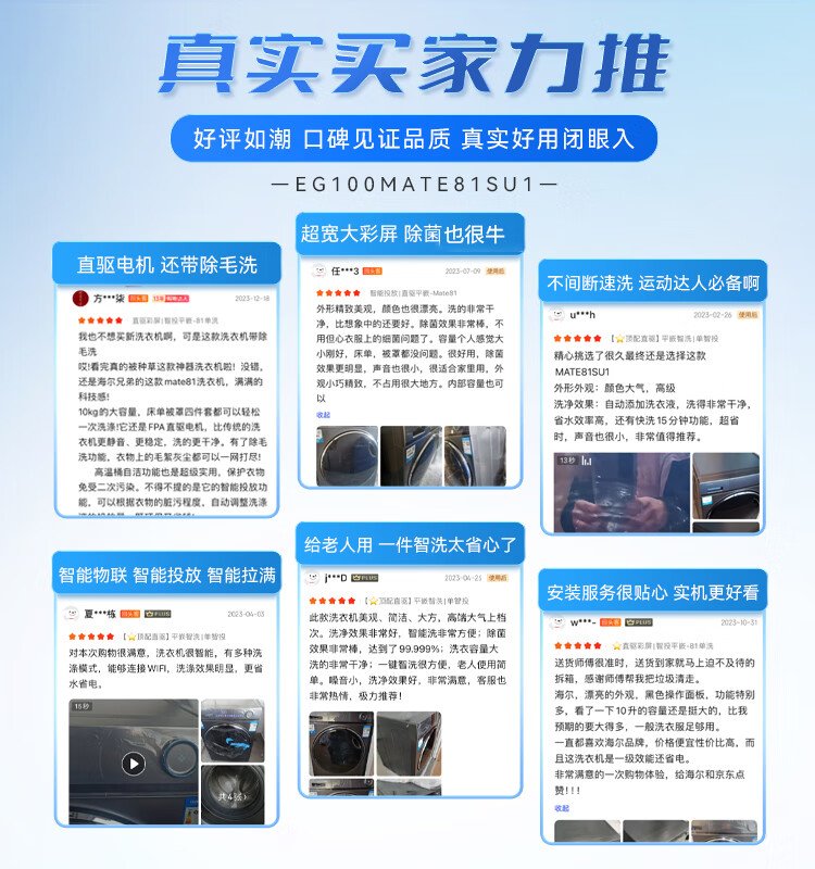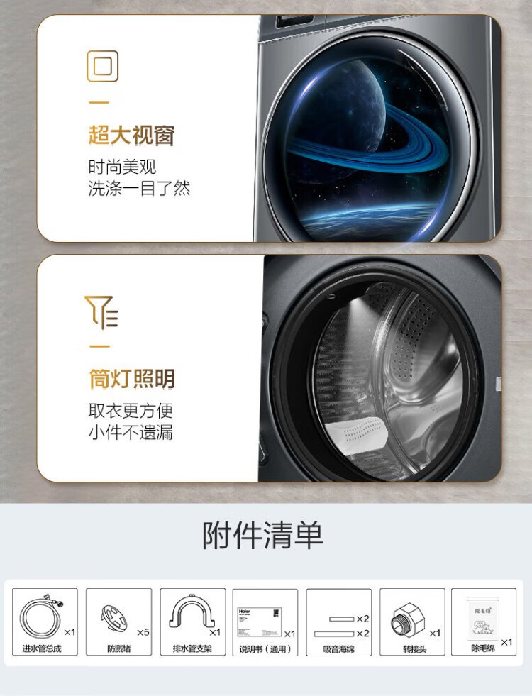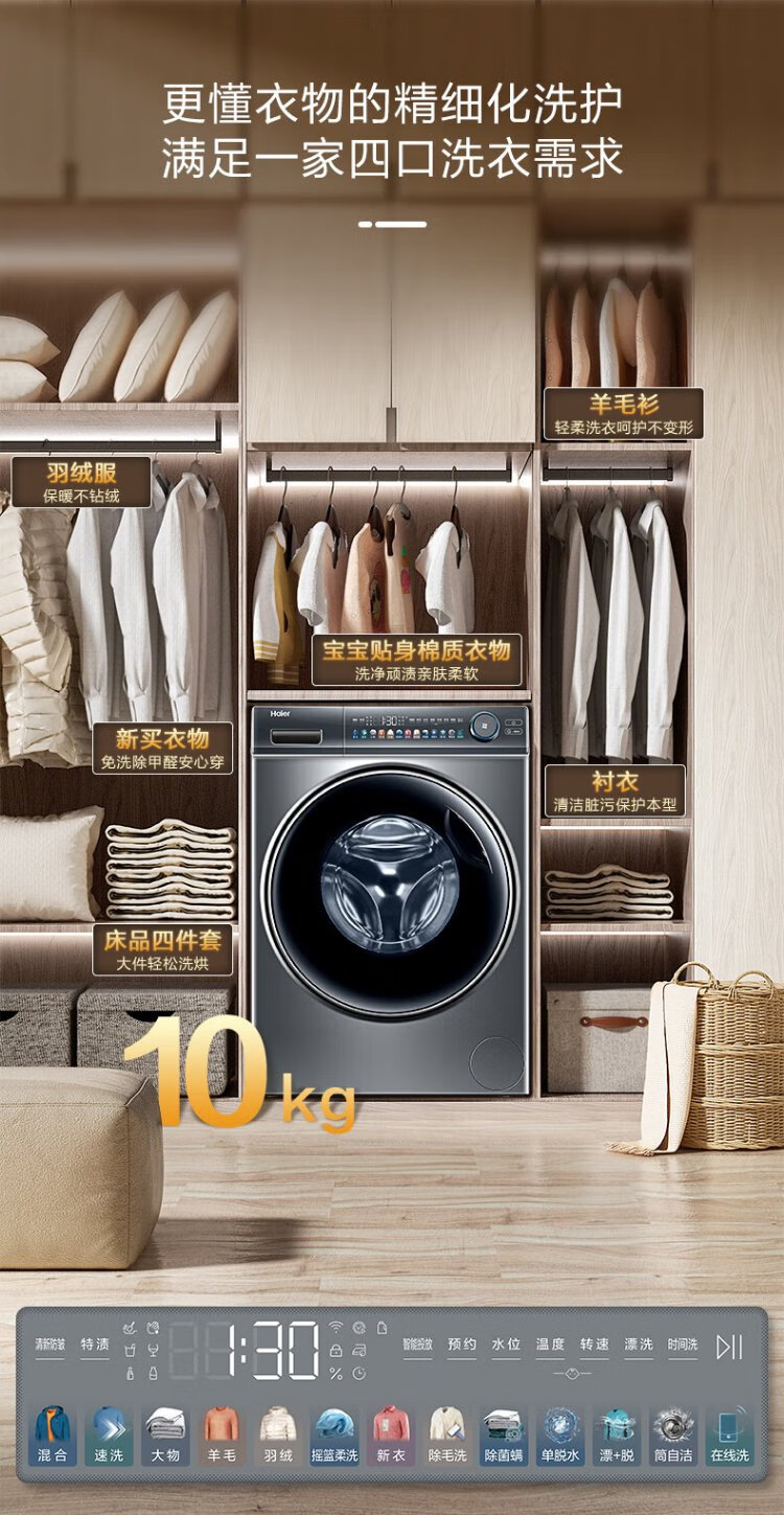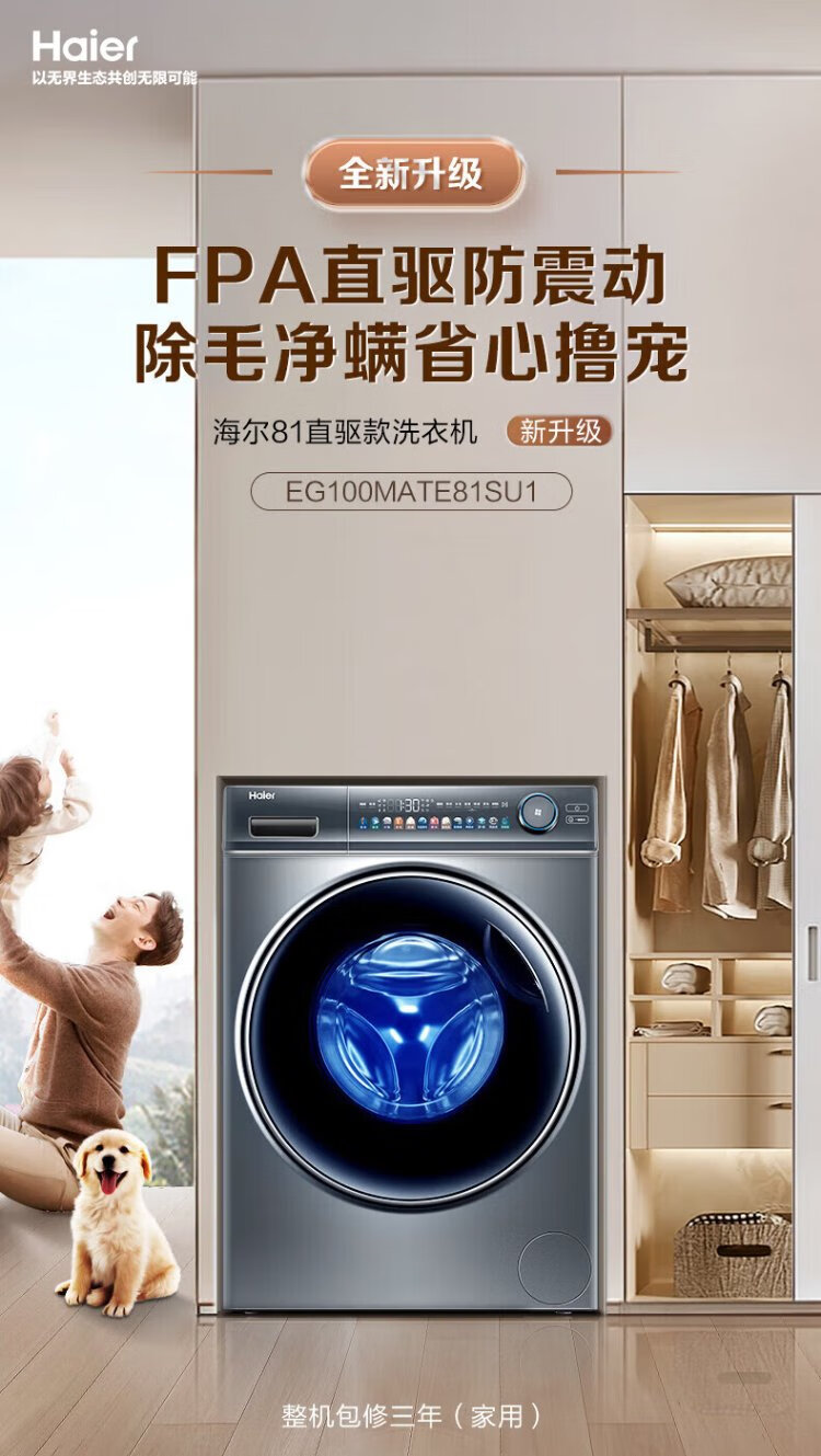 Haier drum washing machine fully automatic 10kg large capacity direct drive EG100MATE81SU1 hair removal special stain washing first class energy efficiency household trade-in