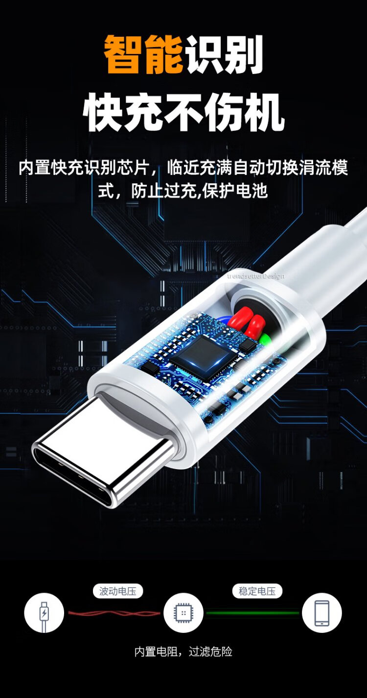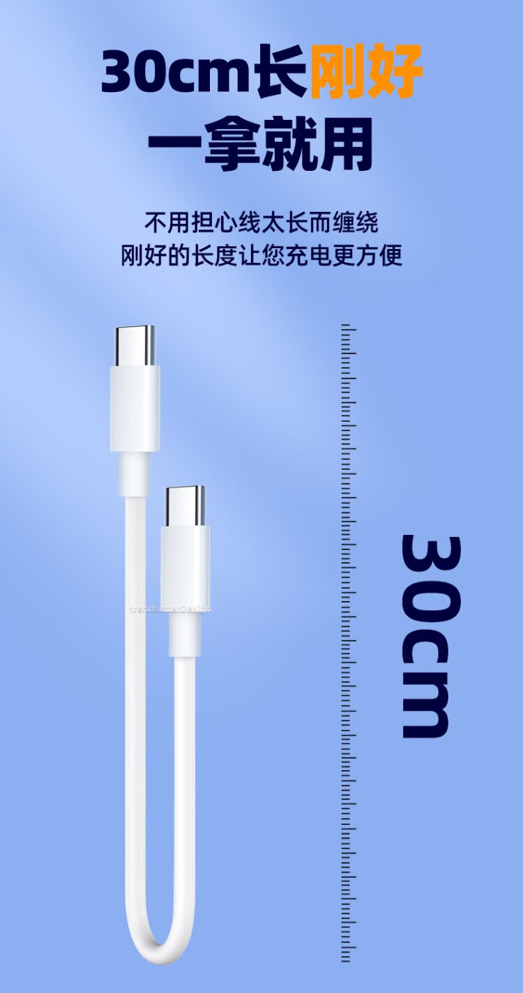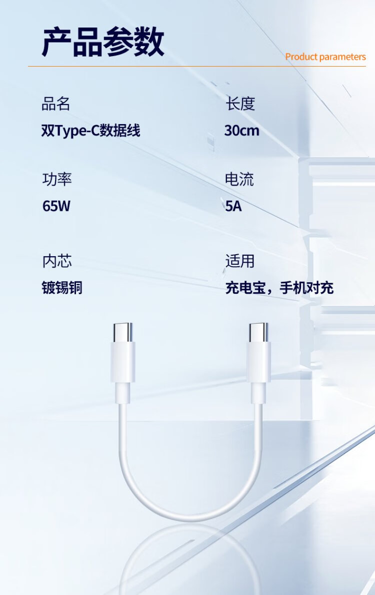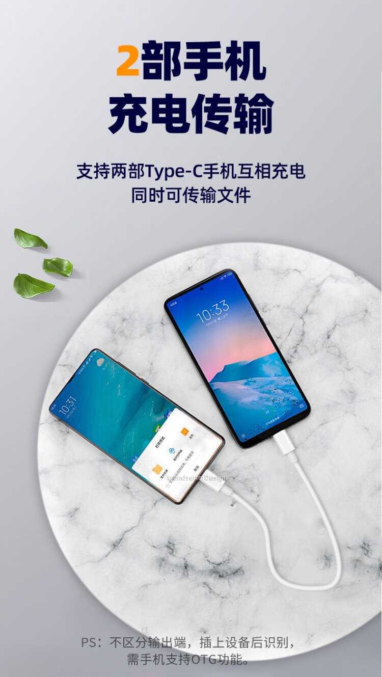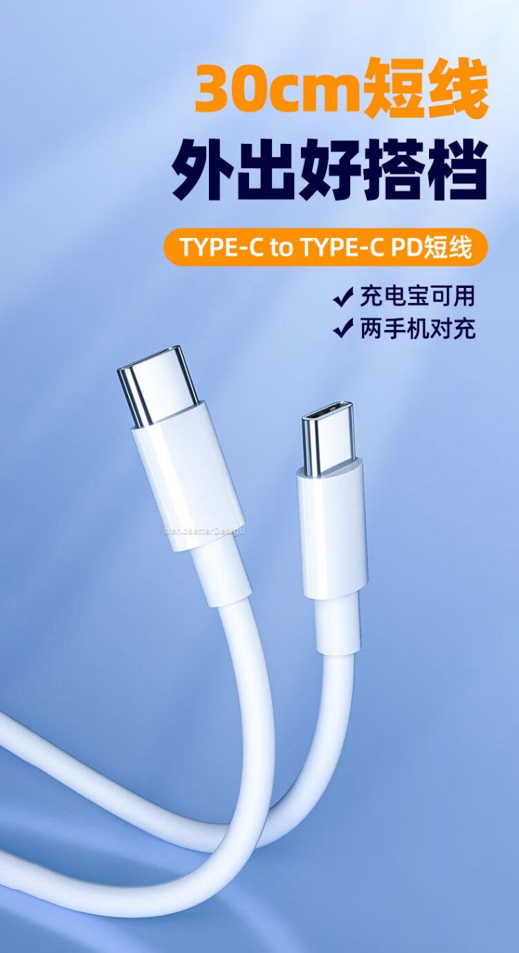 Trendsetter dual type-c data cable short-line power bank line PD fast charging charging line 65W suitable for Xiaomi Samsung Lenovo Huawei mobile phone tablet data transmission mutual charging line pair charging line