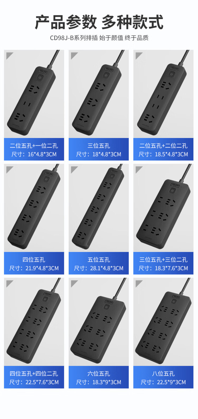 DELIXI national standard socket/socket board/socket strip/socket strip/pull line board/socket board/connection board 3-position combination master switch, total length 1 meter, black