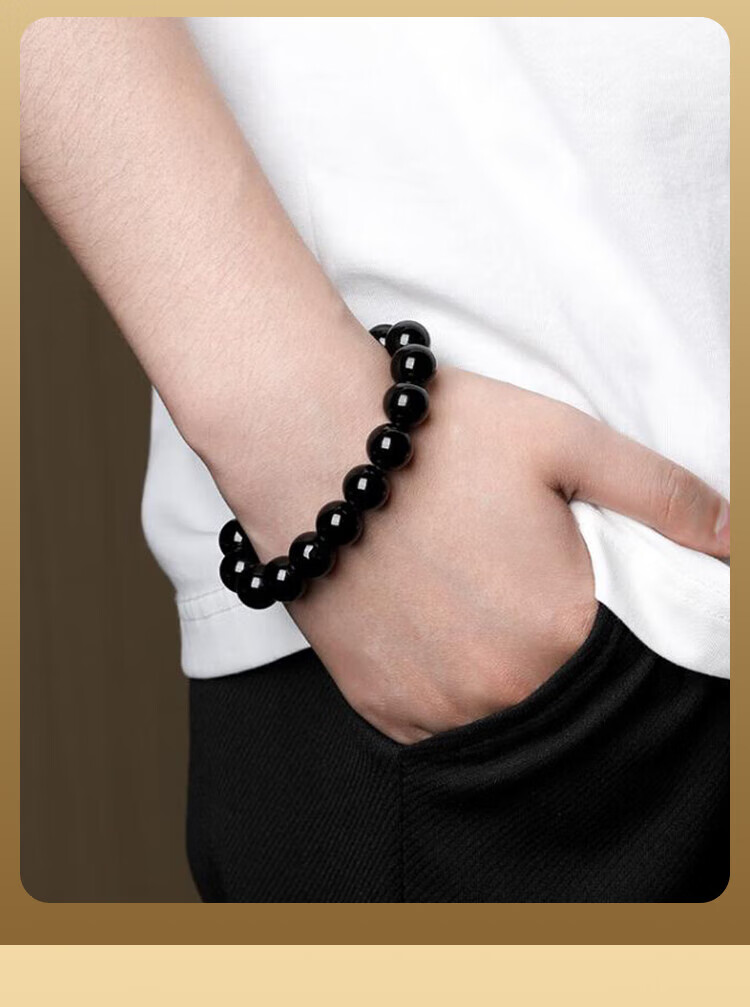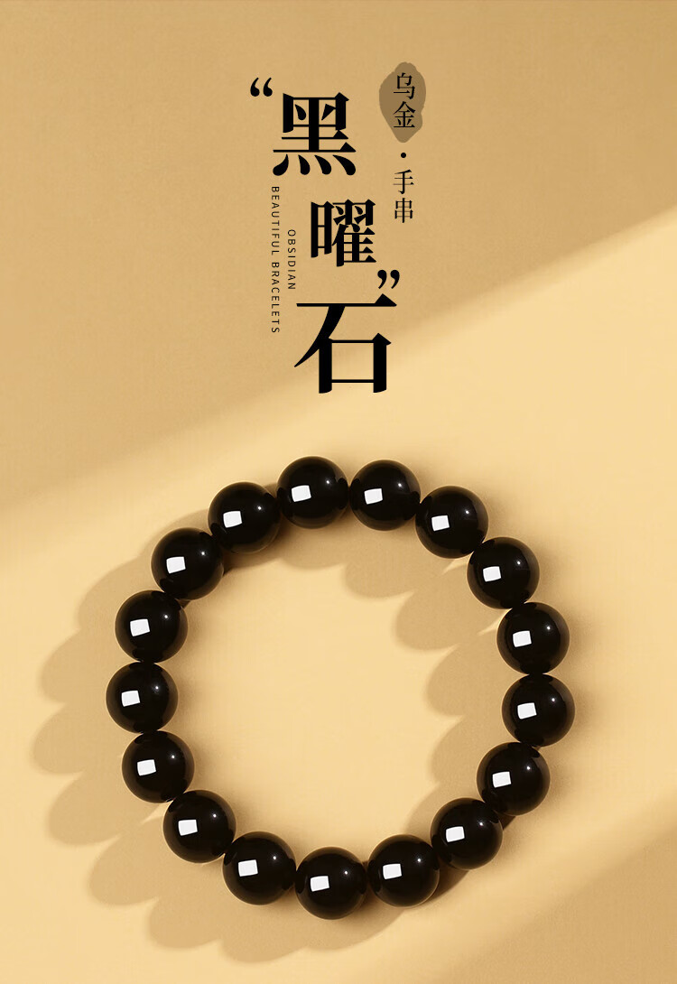 Shi Chuan Bai Shi Natural Obsidian Bracelet for Men and Women Transfer Beads Crystal Buddha Beads Couple Bracelet 2025 Year of the Snake Animal Year Gift