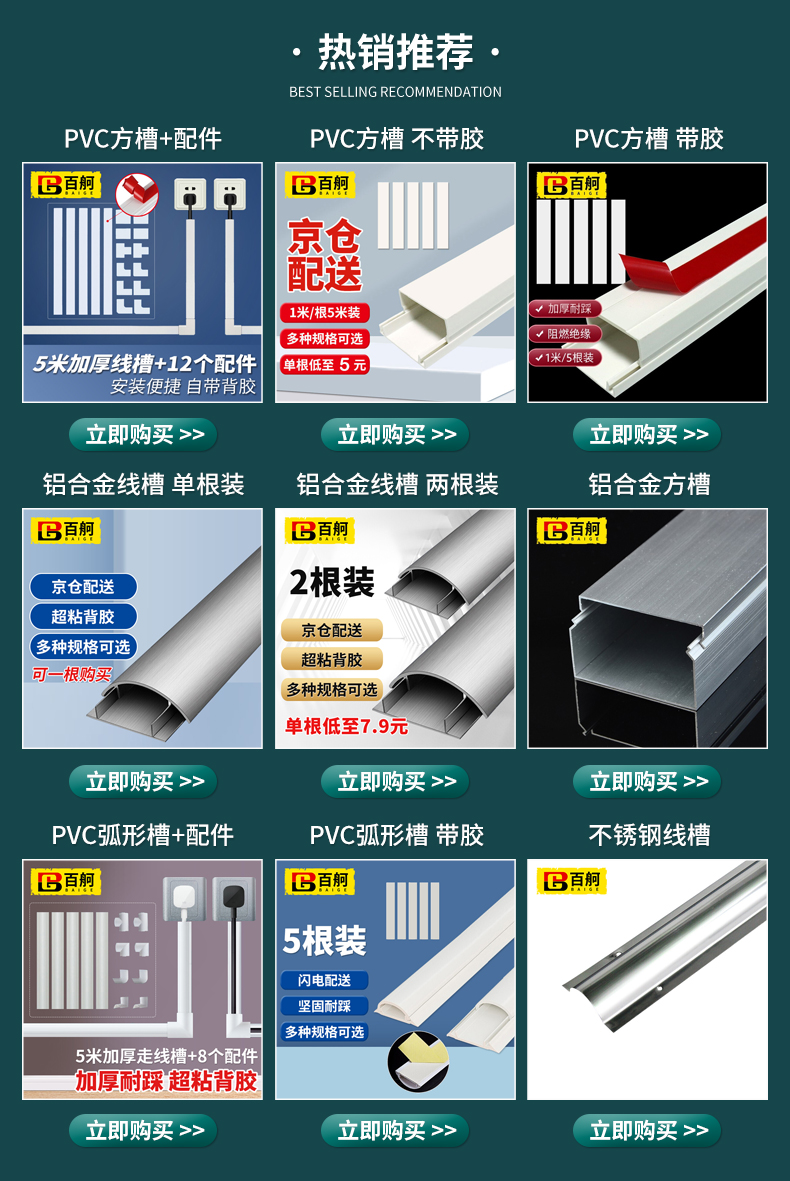 Baige PVC cable trough, surface-mounted cable trough, open wire cable trough, self-adhesive network cable management trough, cable routing artifact, square cable trough 20, 10mm thickened 5 meters, 12 accessories included