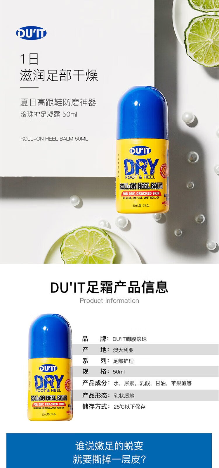 DU IT Australian Foot Cream Roller Ball 50ml First Aid Foot Mask Moisturizing and Replenishing, Calluses Rejuvenation Imported