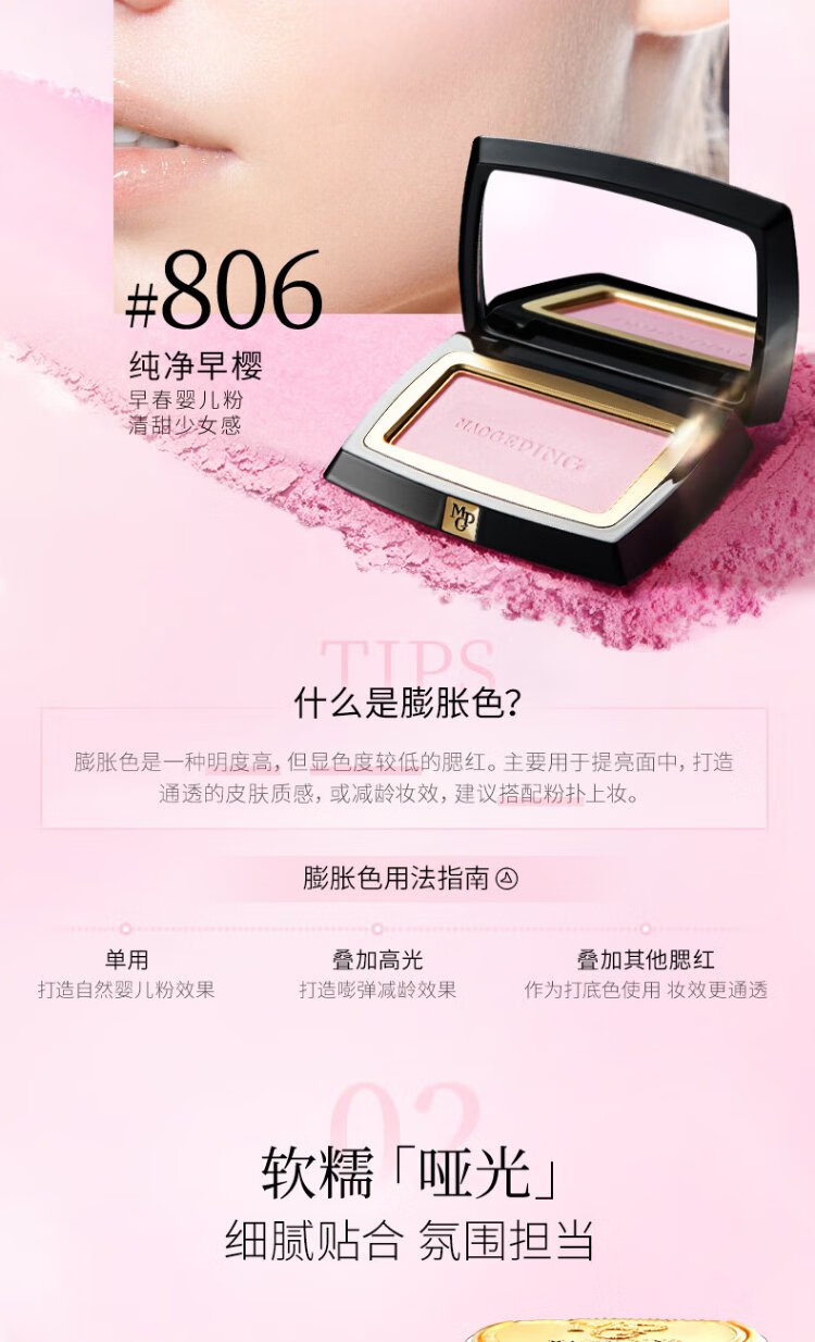 Mao Geping Rouge Magic Blush 806 Pure Early Sakura 3.5g Rouge Contour Highlight Brightening Birthday Gift for Girlfriend