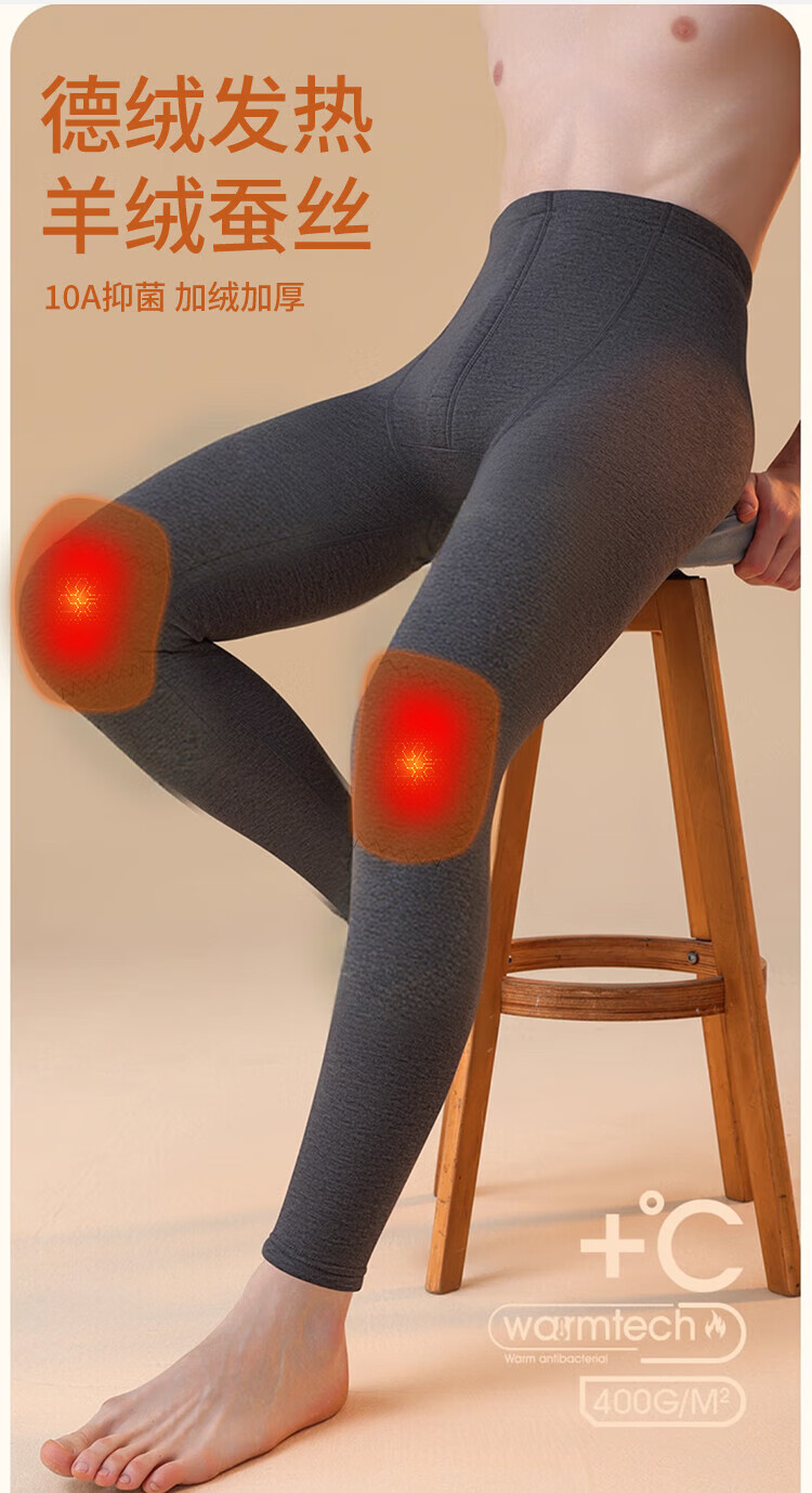 Antarctic thermal pants men's double-layer knee pads thickening leggings thermal bottoms single piece cotton pants black L