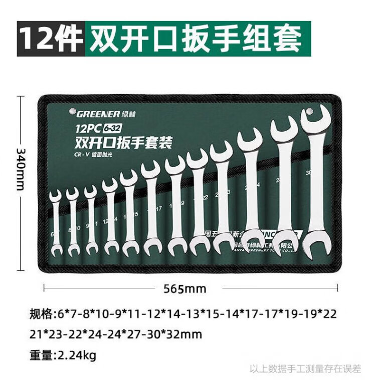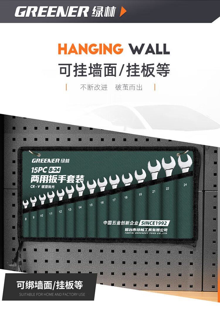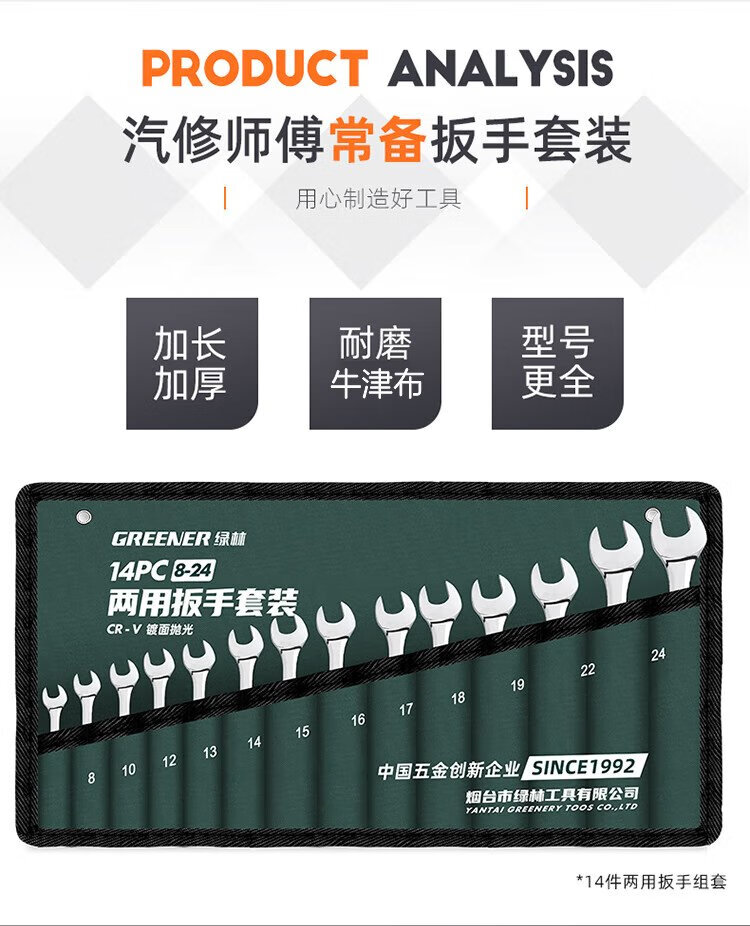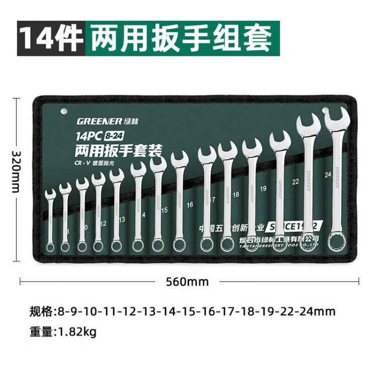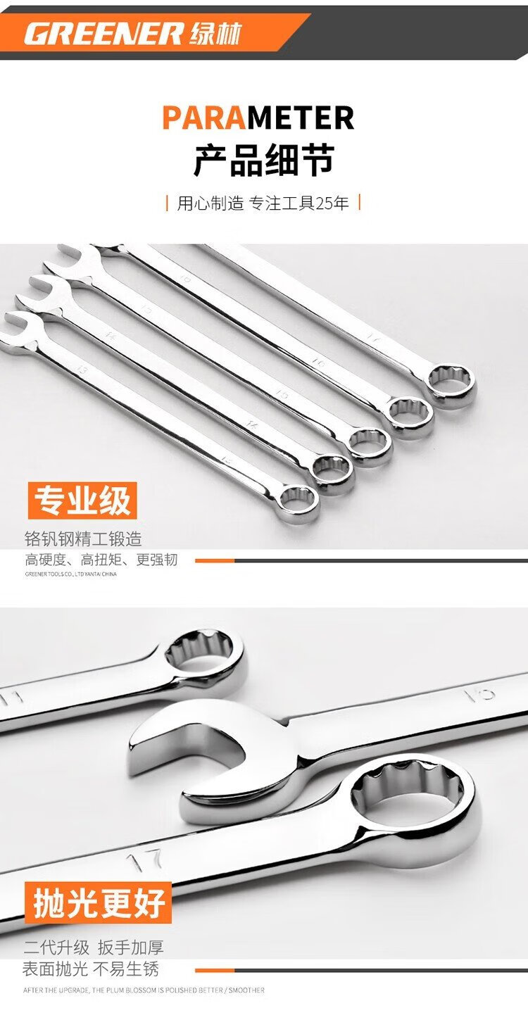 GREENER wrench set tool opening dual-purpose car repair 12-piece set household 6mm-32mm fixed dead wrench car repair