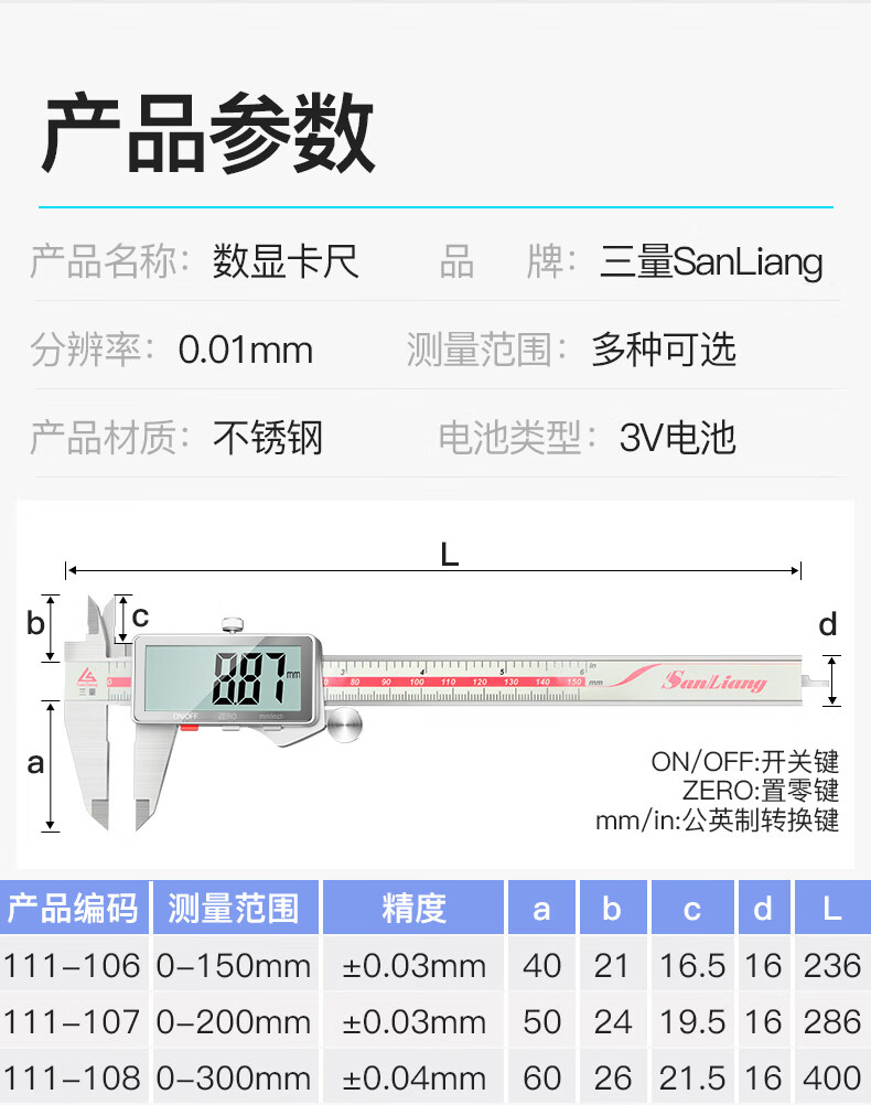 Three-quantity household small entertainment electronic vernier caliper digital display high-precision high-depth industrial grade oil dipstick JDM01 digital display caliper 0-150mm