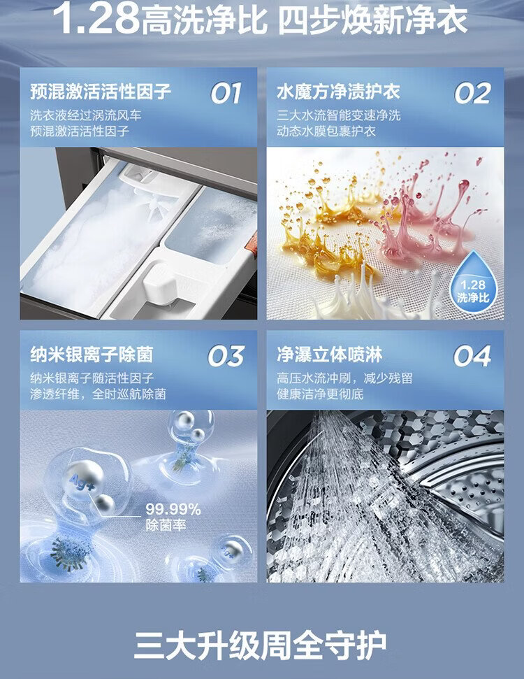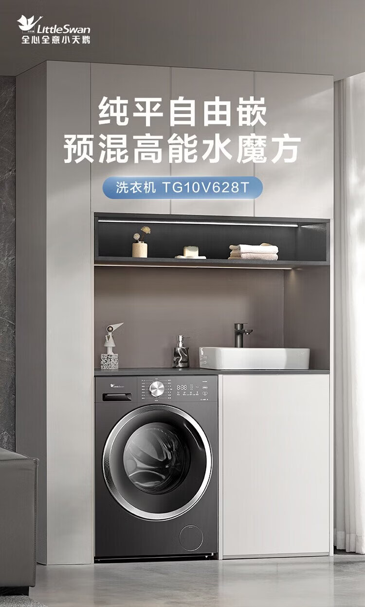 Little Swan Water Cube washing machine drum 10kg household large capacity flat screen free embedded frequency conversion 1.28 ultra-high cleaning ratio sterilization and mite removal TG10V628T