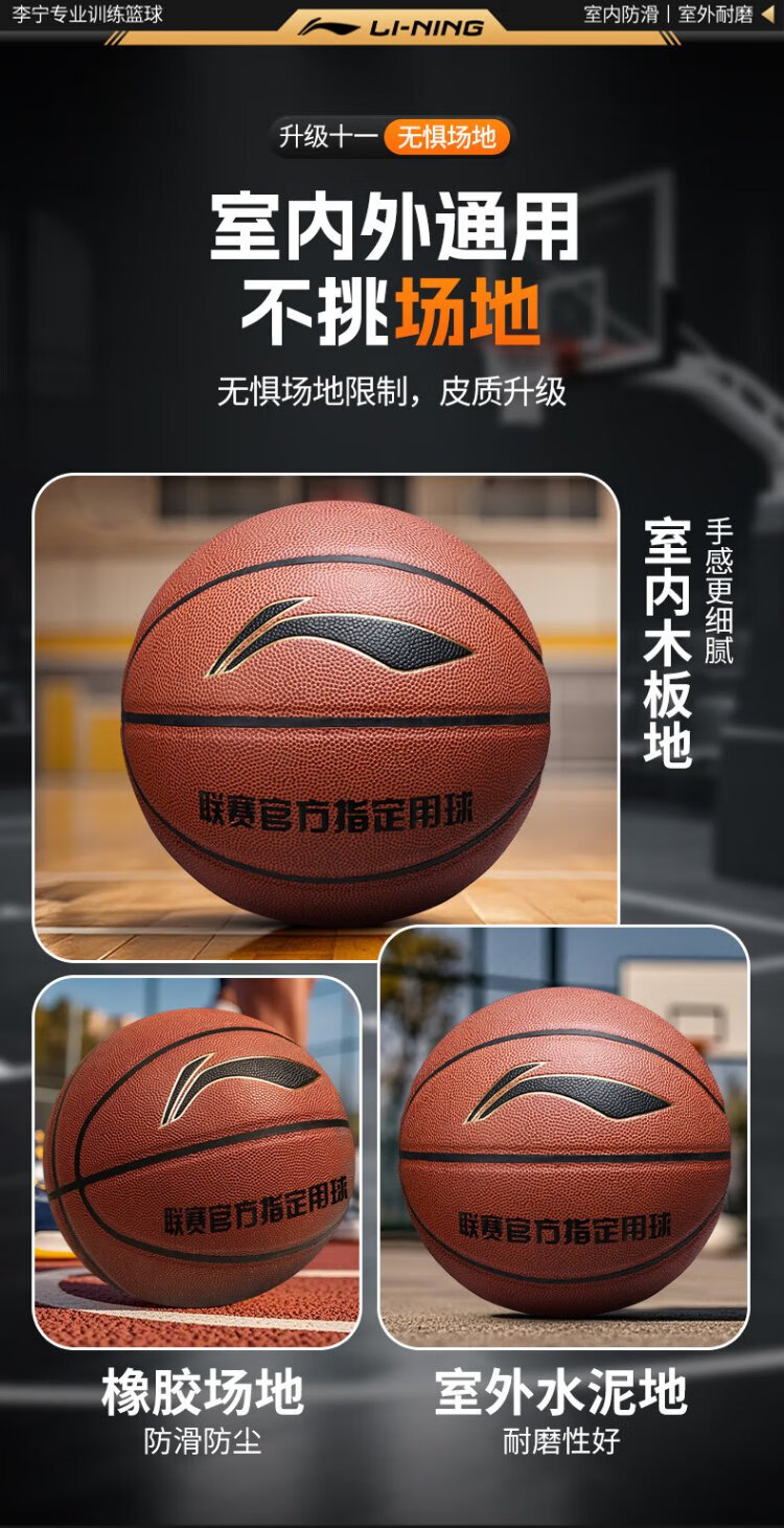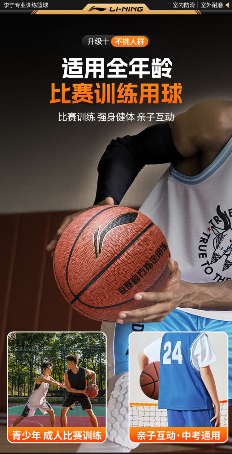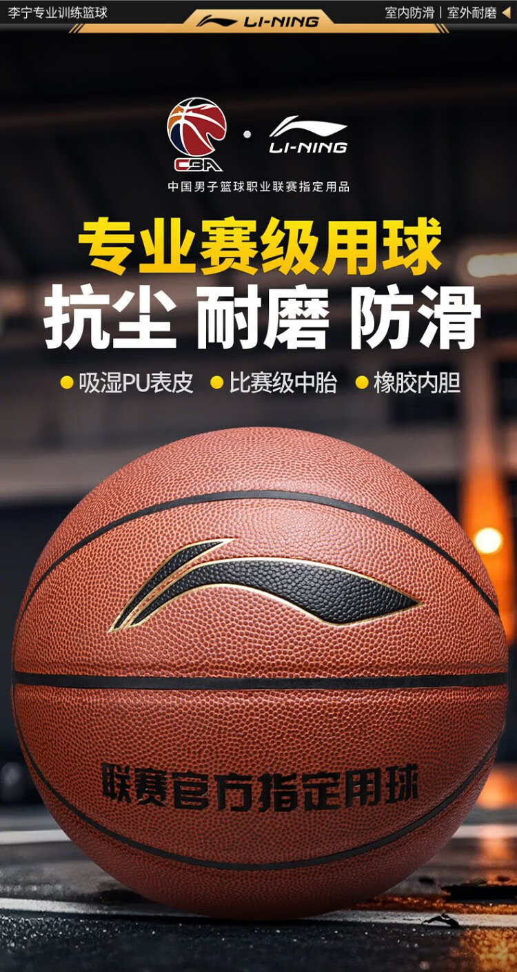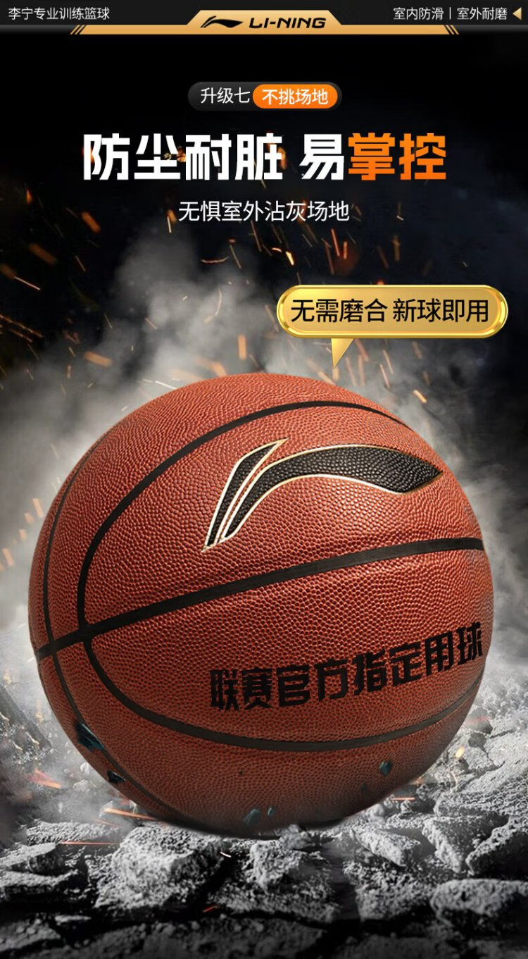 Li Ning (LI-NING) basketball adult No. 7 junior high school, primary school students and adolescents special indoor and outdoor competition training gift basketball