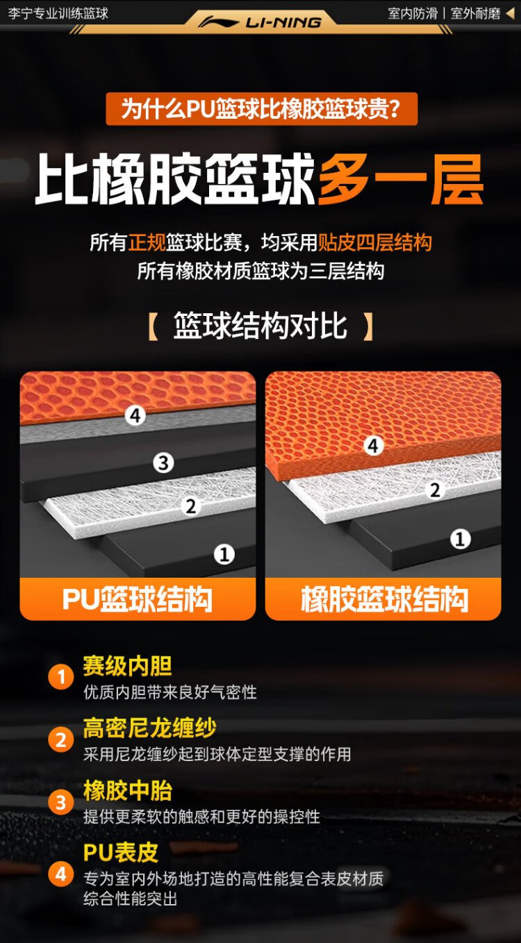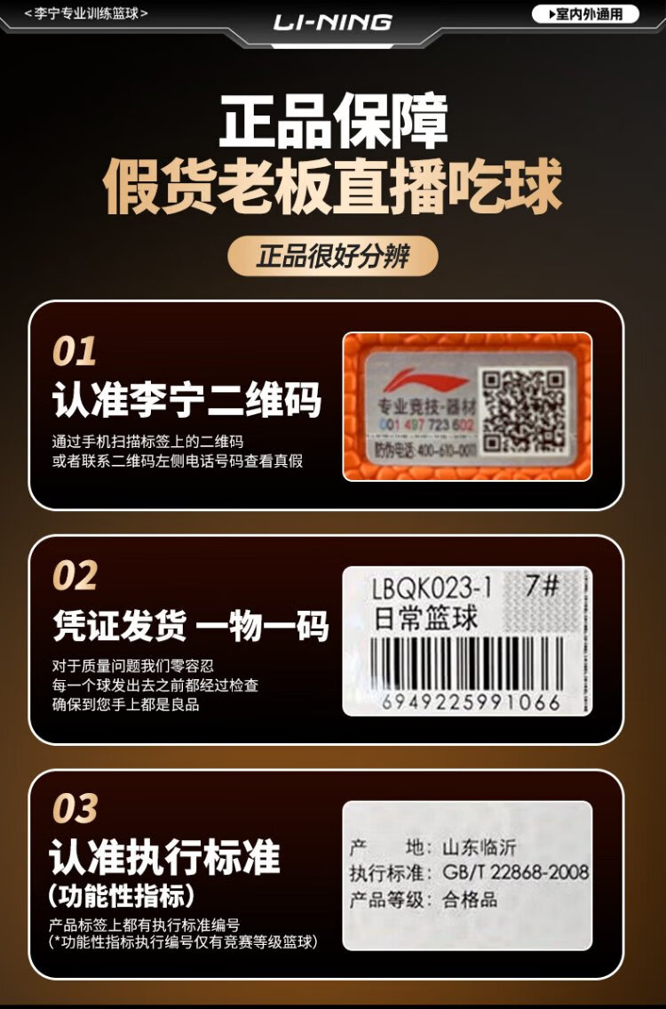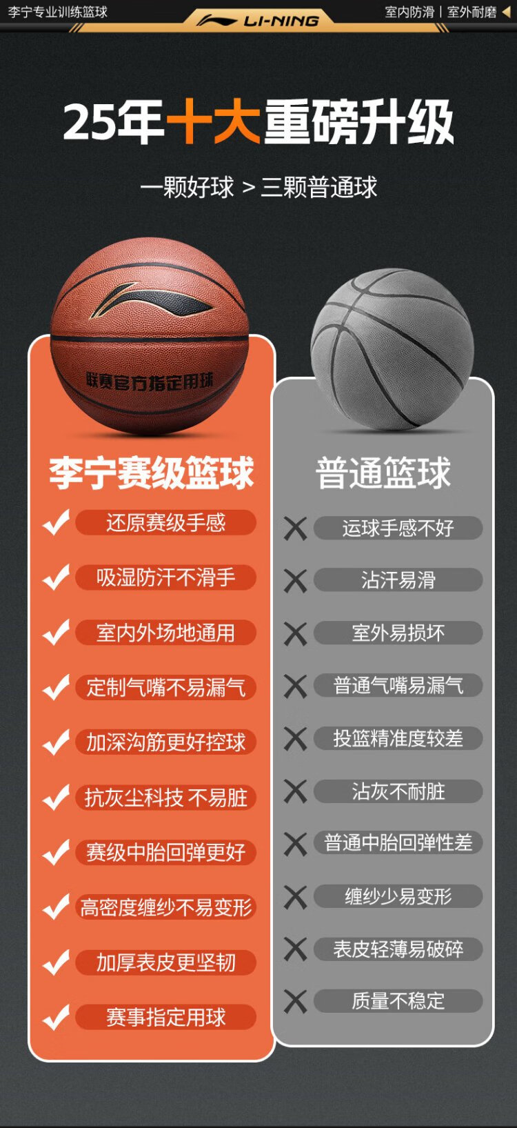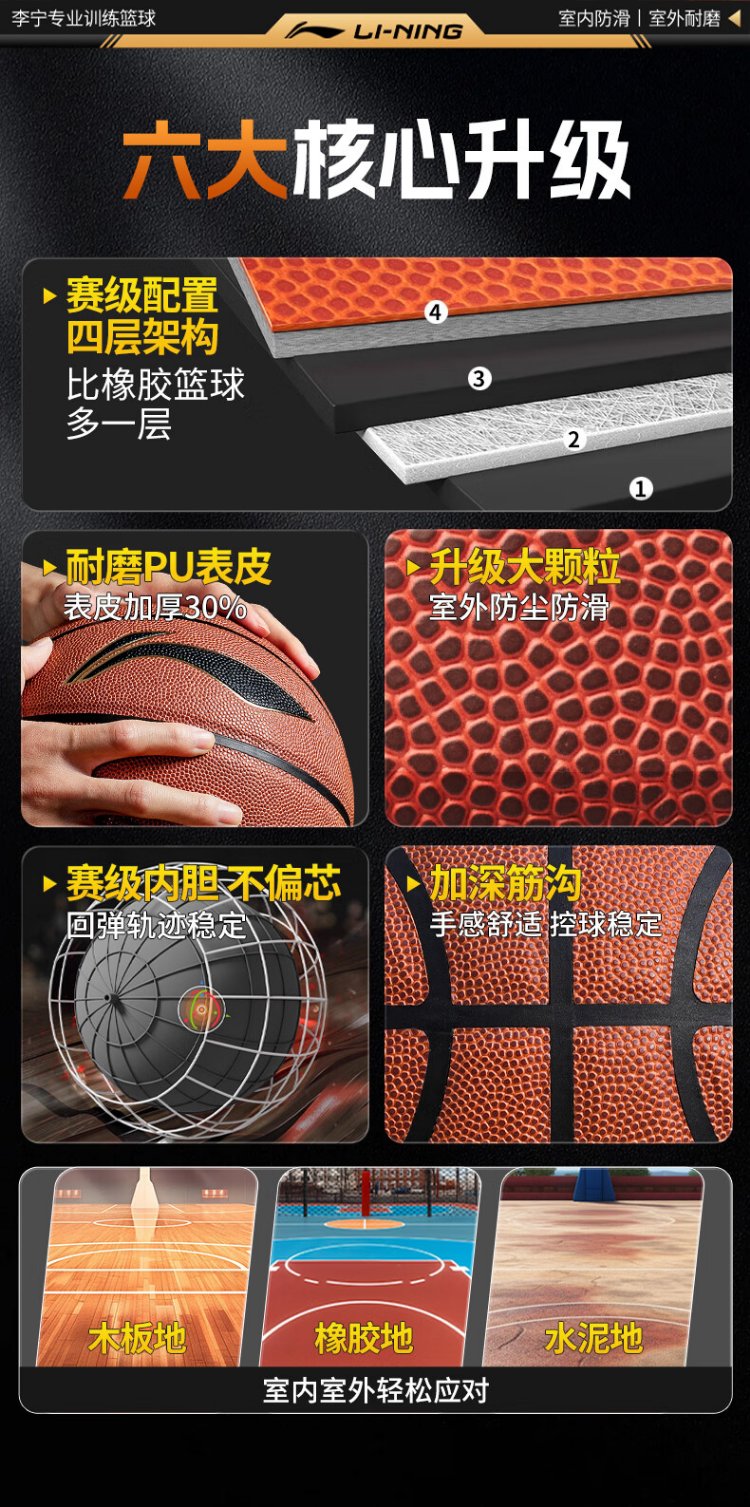 Li Ning (LI-NING) basketball adult No. 7 junior high school, primary school students and adolescents special indoor and outdoor competition training gift basketball