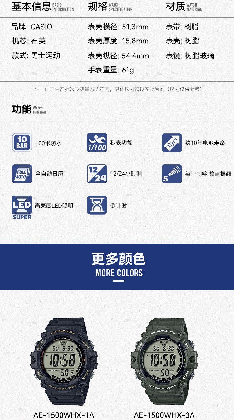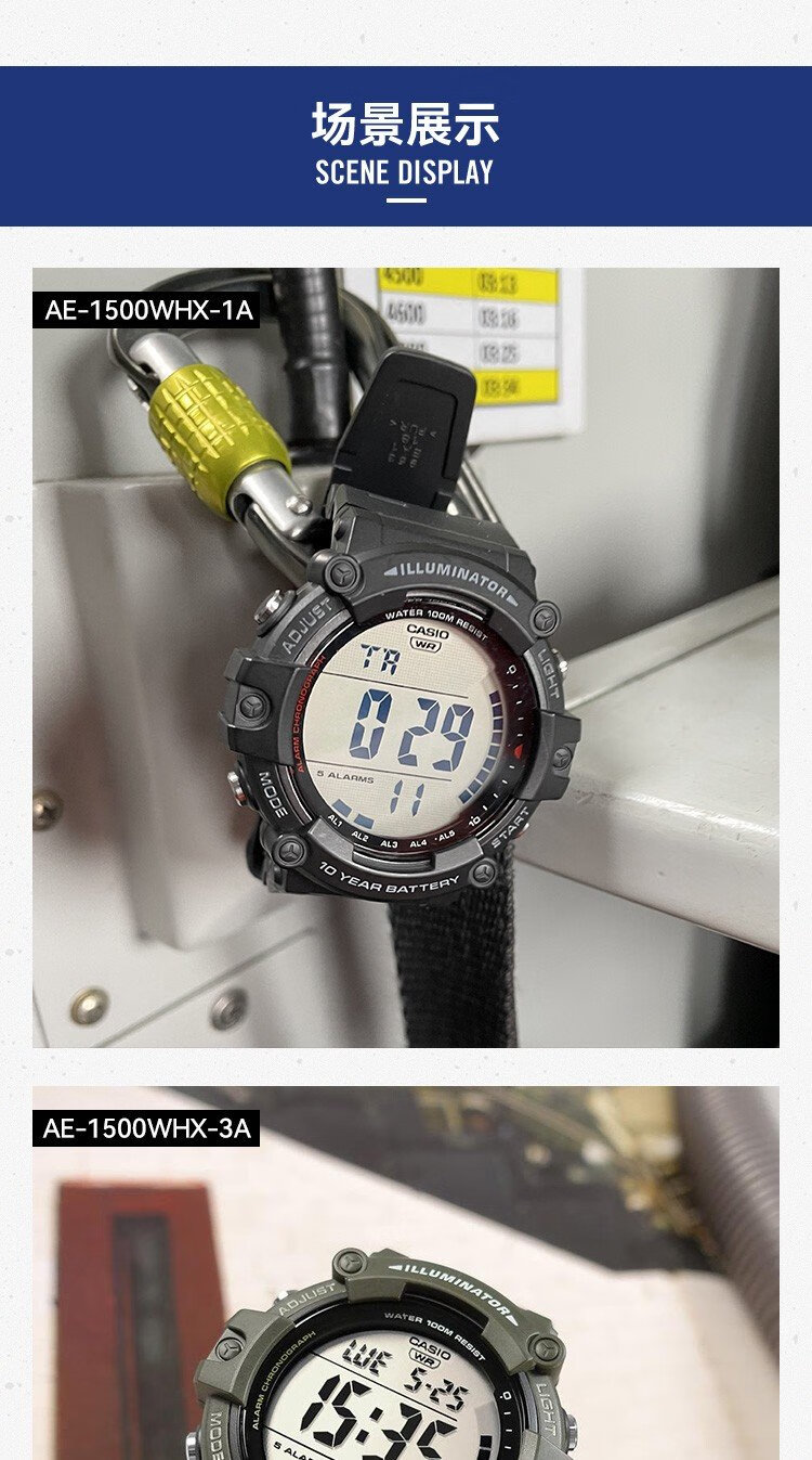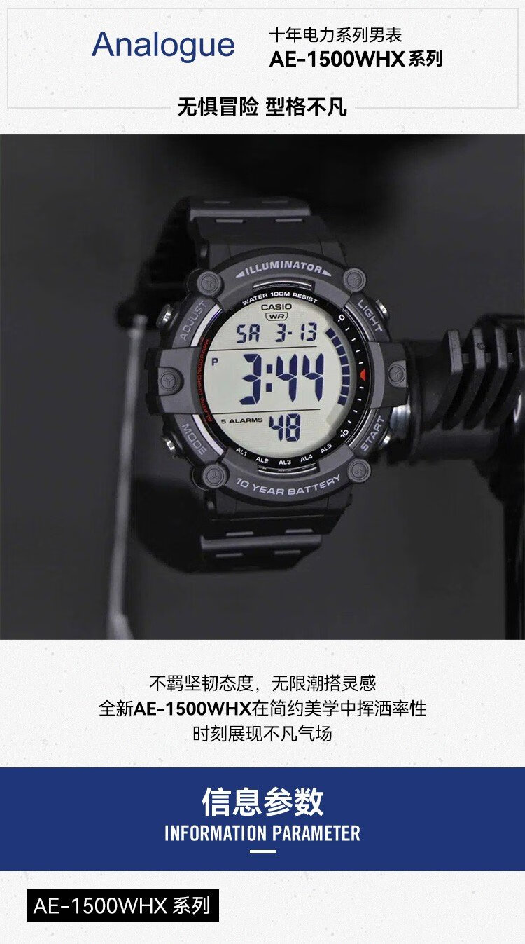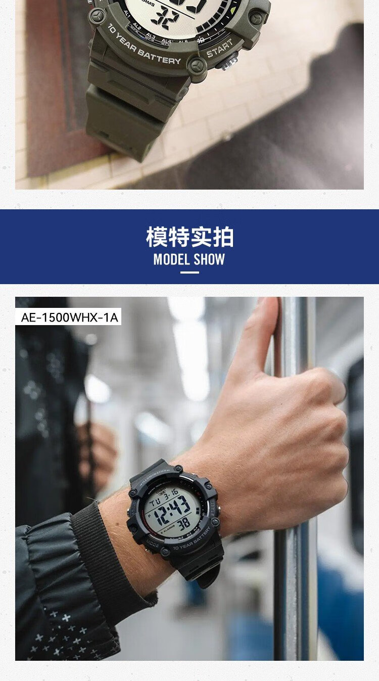 CASIO fashion sports waterproof student outdoor anti-fall sports electronic watch men's watch AE-1500WHX-1AVDF black