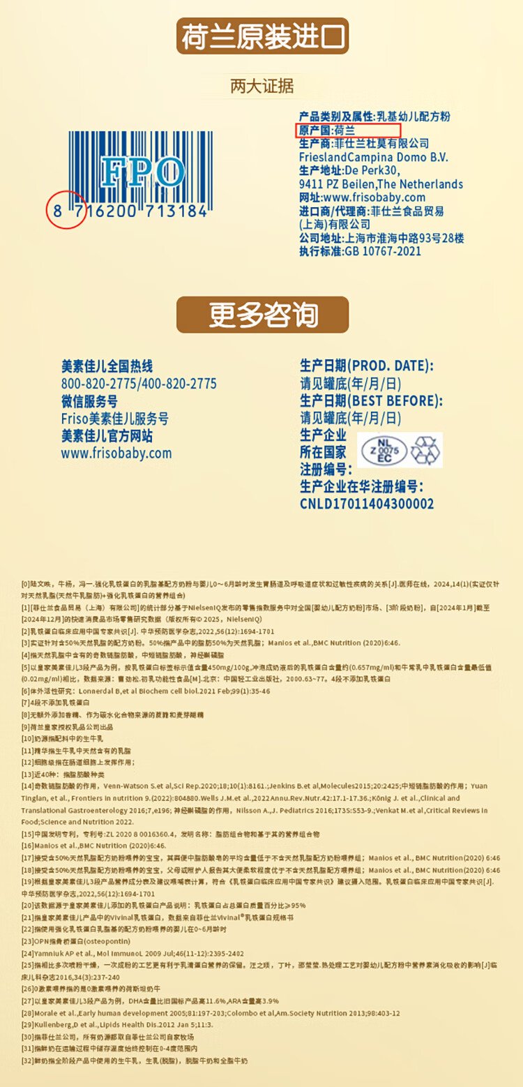 Friso Royal Infant Formula Milk Powder Stage 3 (for children aged 1-3 years old) 400g Lactoferrin (new national standard)