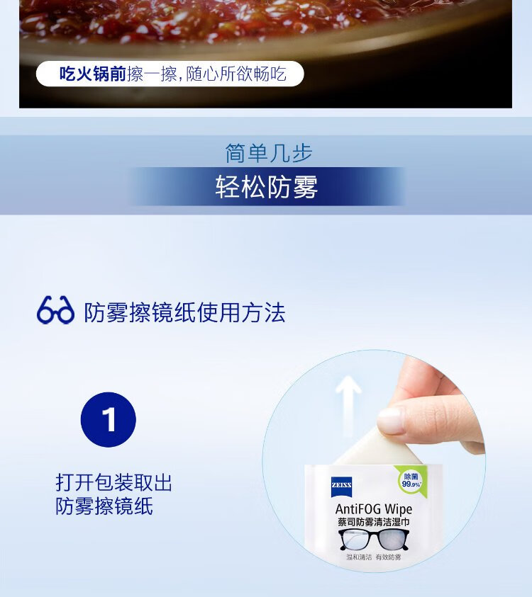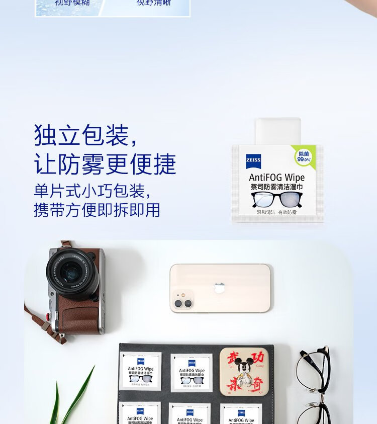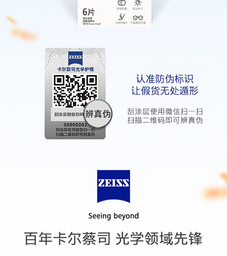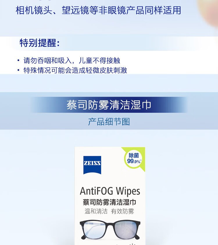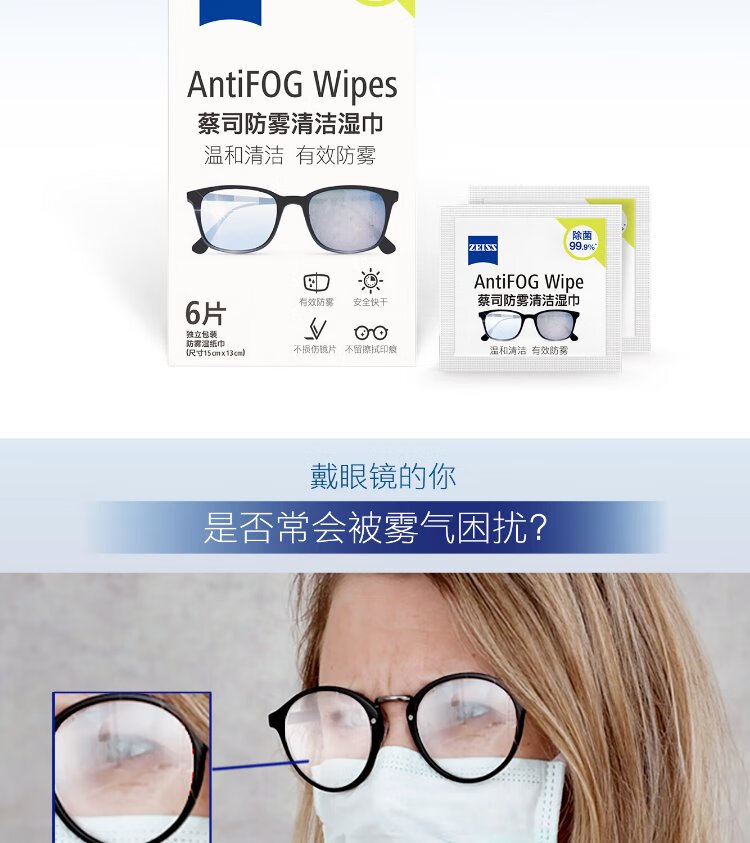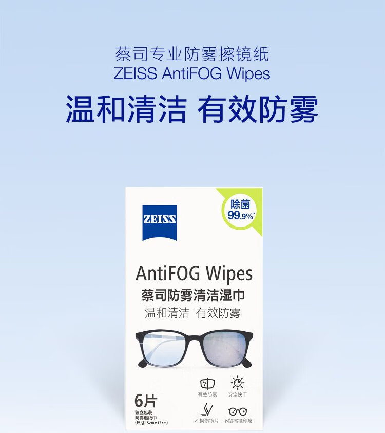 Zeiss Zeiss (ZEISS) glasses anti-fog cleaning wipes, lens lens goggles, myopia glasses, anti-fog, anti-fog wipes, 6 pieces