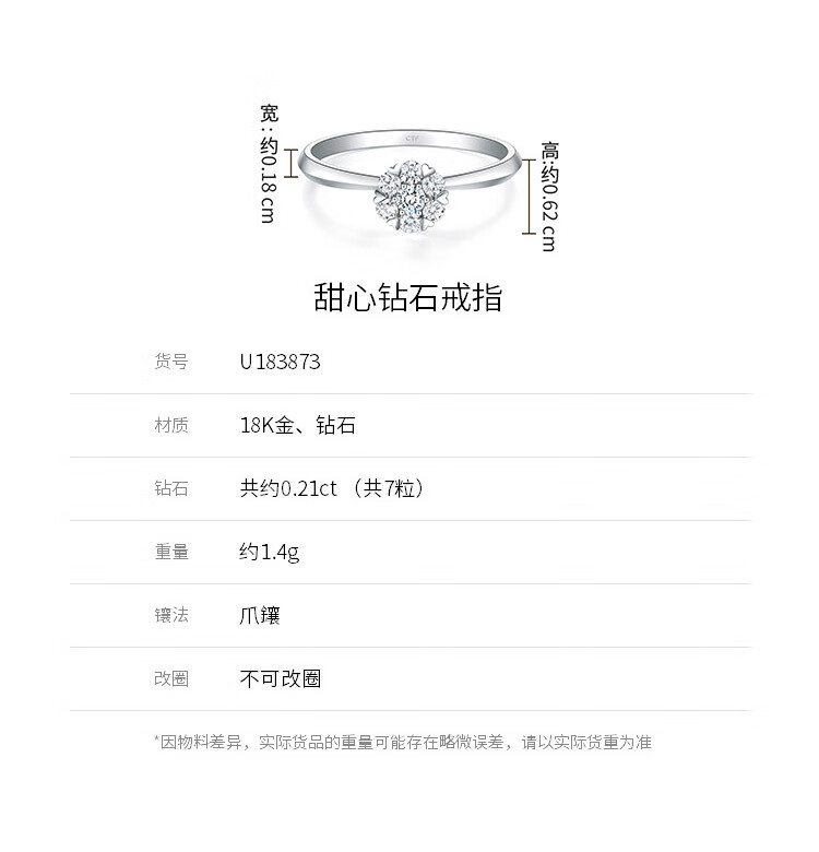 Chow Tai Fook Love Sweetheart Diamond Ring 18K Gold Diamond Ring U183873 No. 9