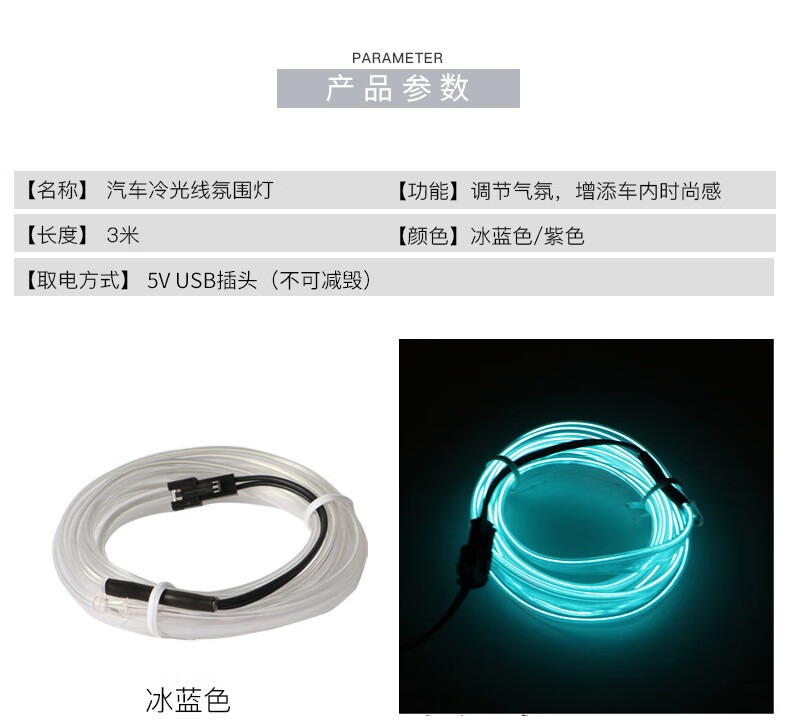 Forty Thousand Kilometers Car Ambient Light Interior LED Light Strip USB Atmosphere Cold Light Car Modification Wiring-Free Light Strip SWY6527