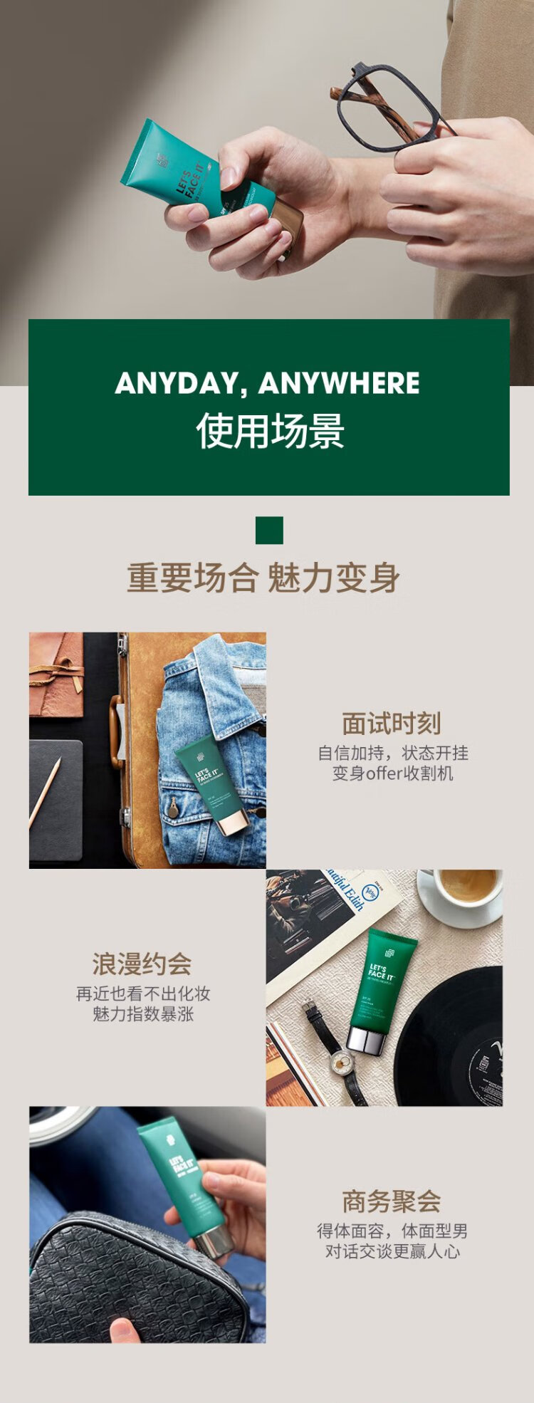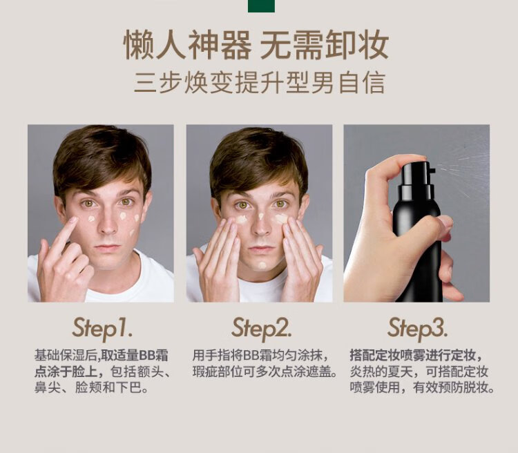 SHAKEUP COSMETICS Men's BB Cream Wheat Pigment Cream Lazy Moisturizing Concealer Sunscreen SPF30+ Birthday Gift for Boyfriend 50ml
