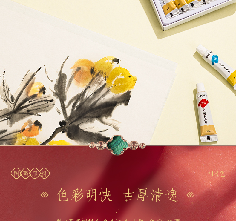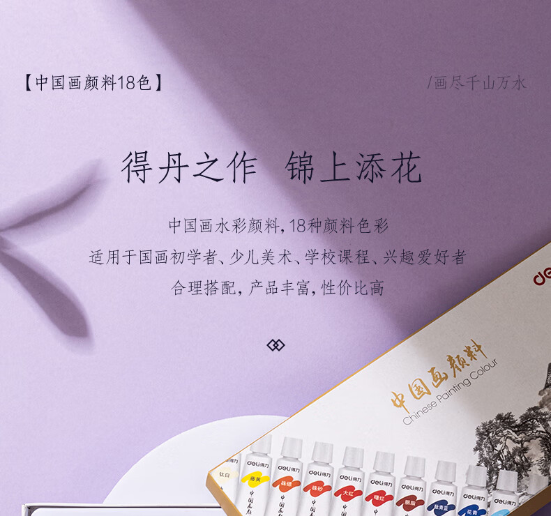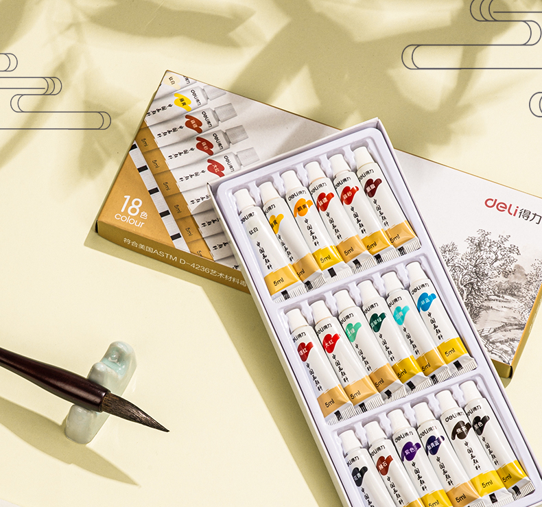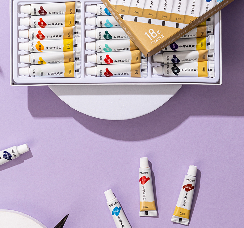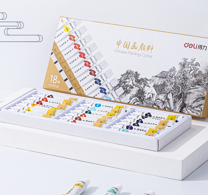 Deli Chinese painting pigment 18 colors 5ml Chinese painting ink painting landscape painting four treasures of study professional art painting colored Chinese painting set 73865-18