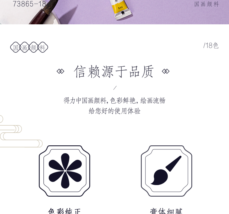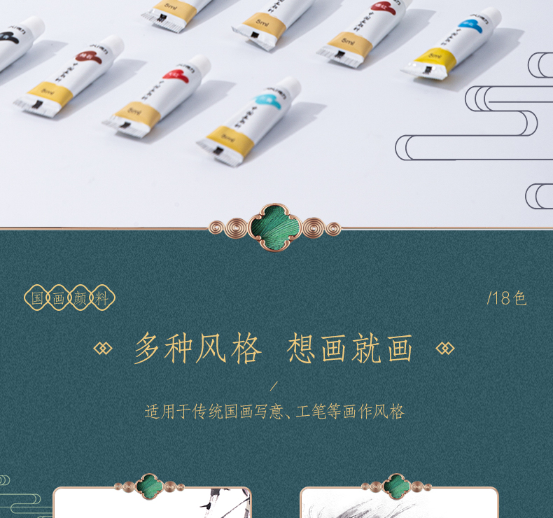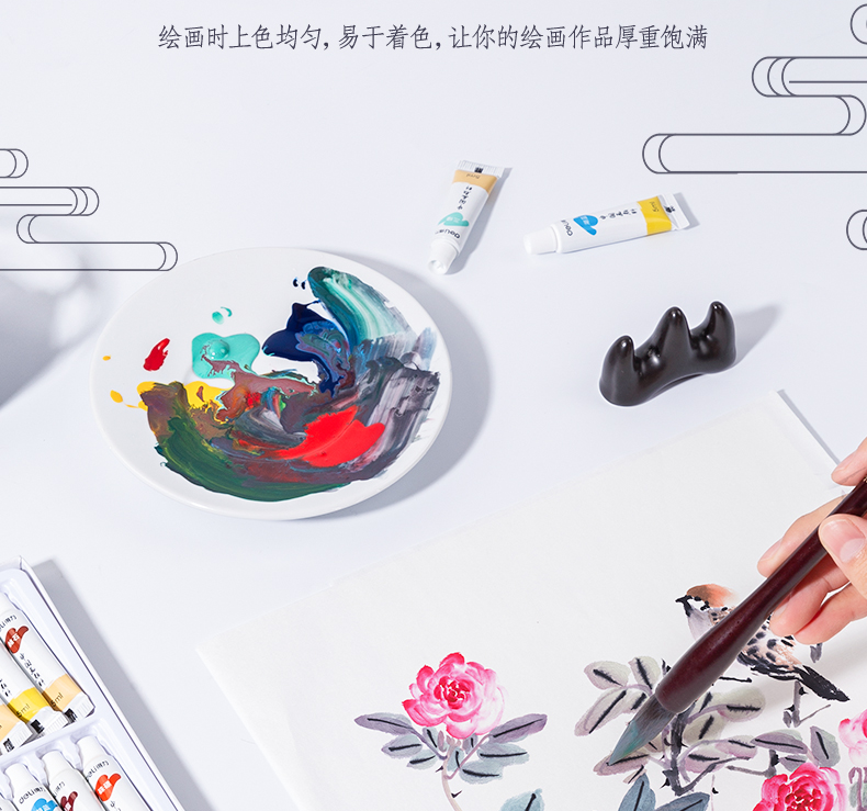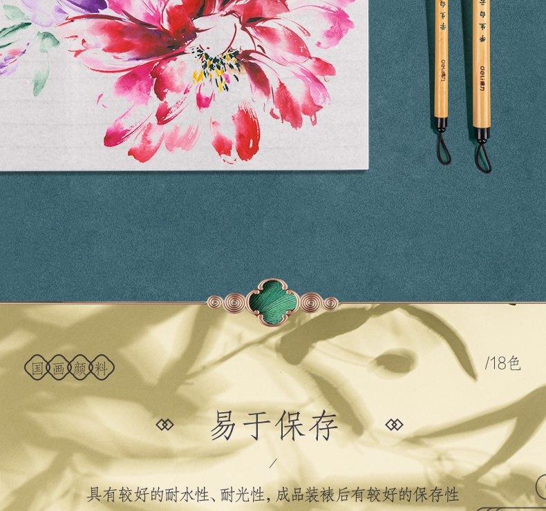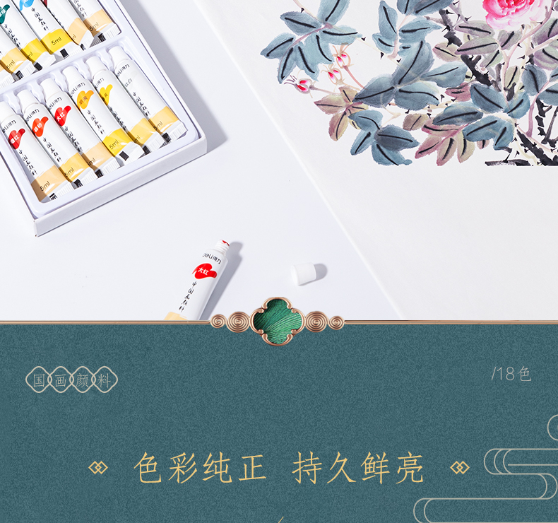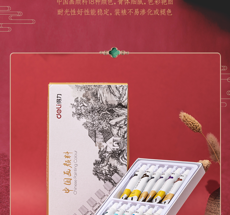 Deli Chinese painting pigment 18 colors 5ml Chinese painting ink painting landscape painting four treasures of study professional art painting colored Chinese painting set 73865-18