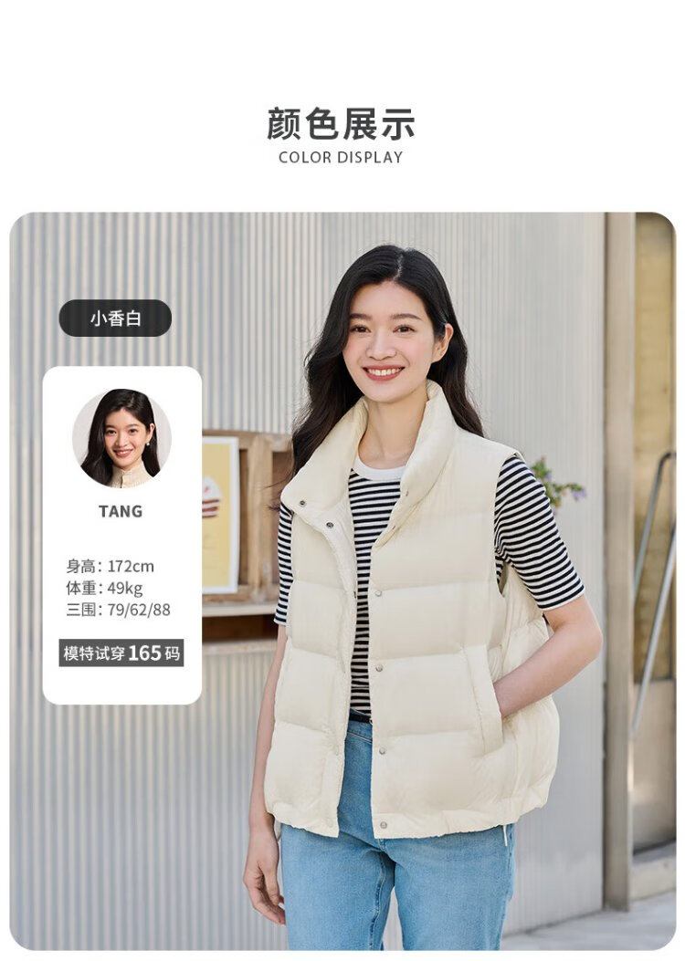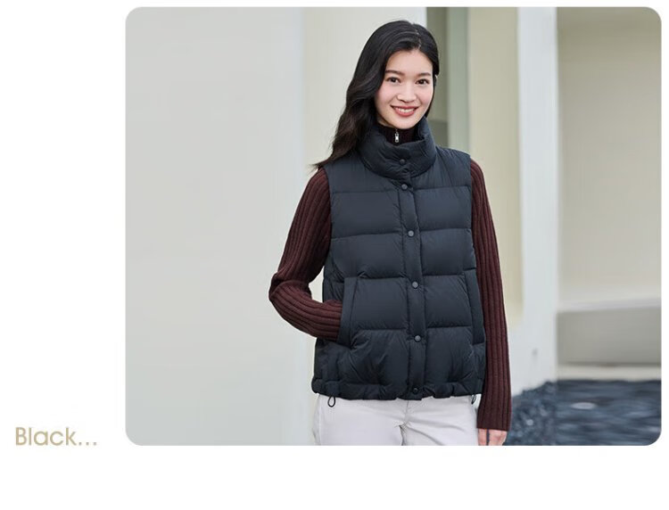 Tambor Down Jacket Vest Women's Stand Collar Loose Outer Short Down Vest Jacket TD236006 Black 175