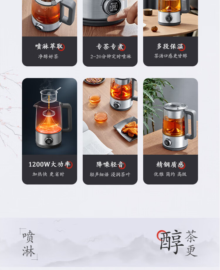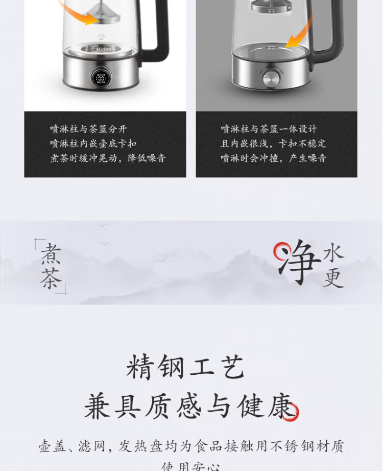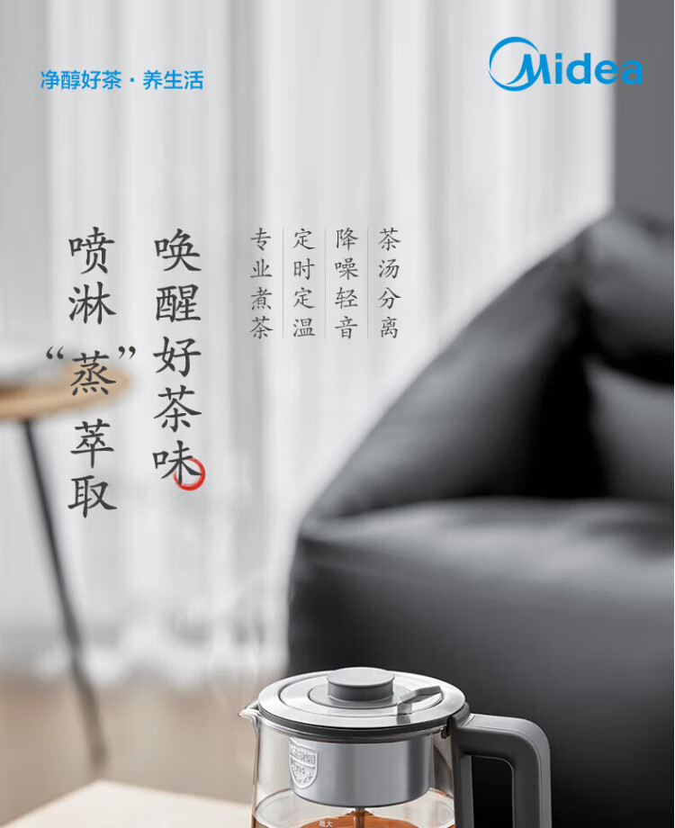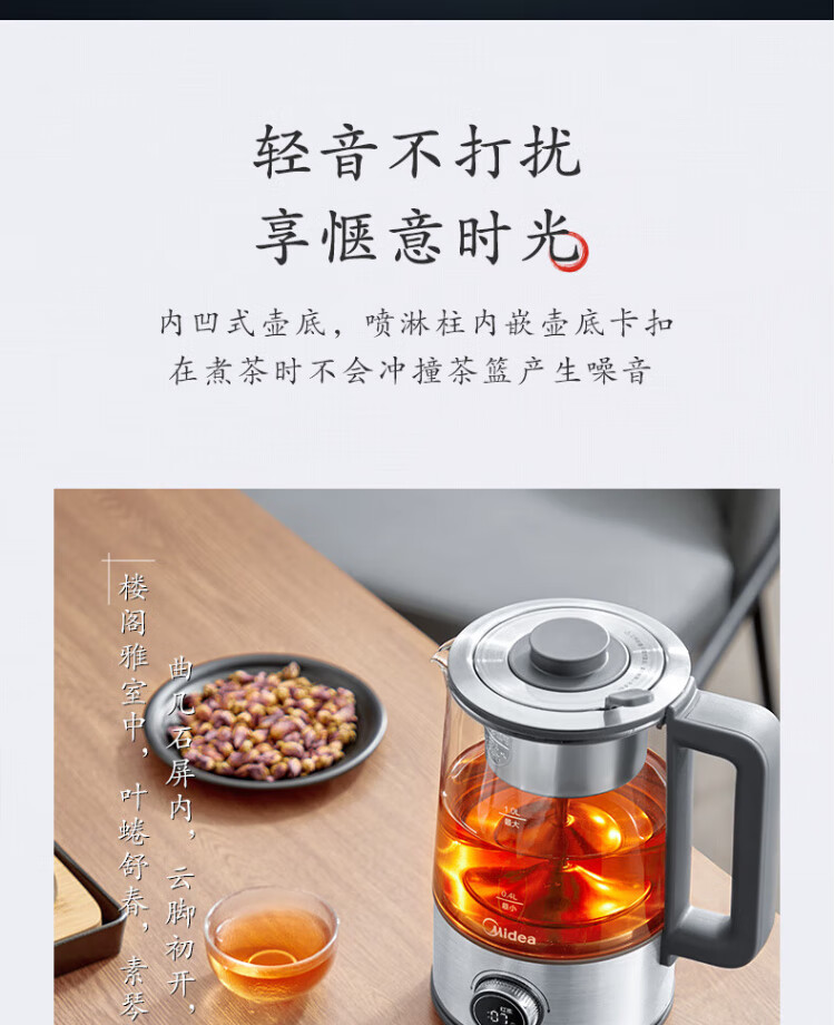 Midea tea maker health kettle 1200W high power flower tea kettle 1L large capacity electric kettle kettle electric kettle insulation tea kettle MK-C10-Pro2